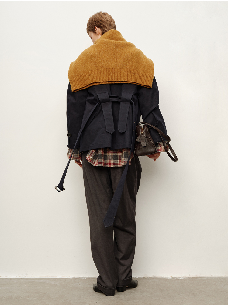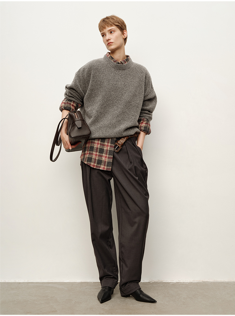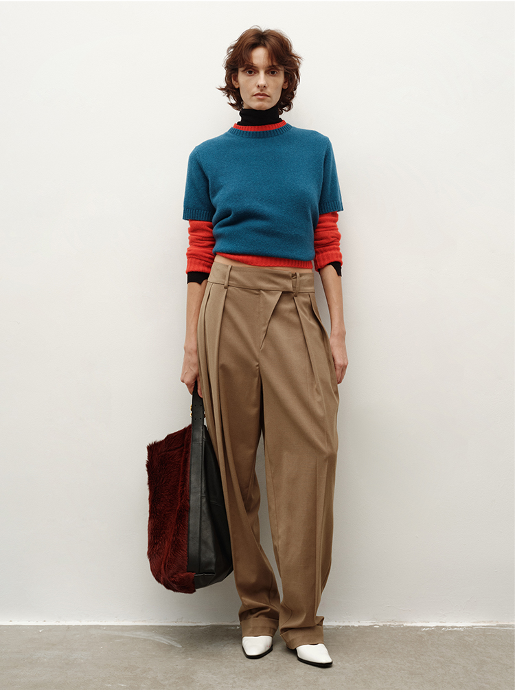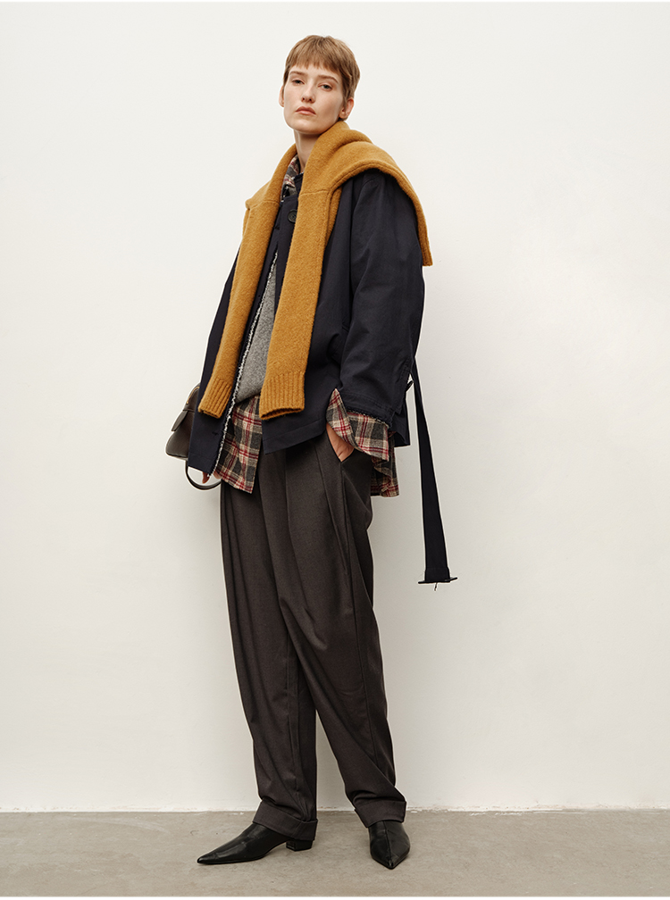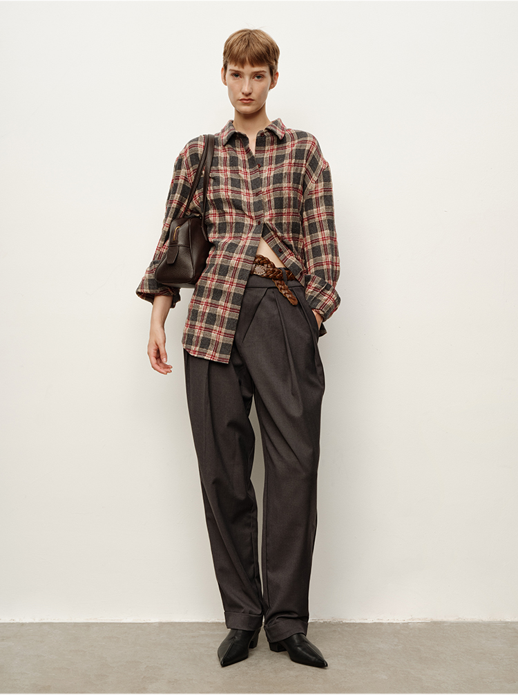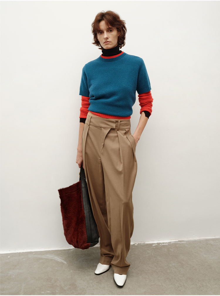 HIDEMI大秀款中高腰双褶立裁超显瘦款时装锥形裤卷边萝卜西裤长裤