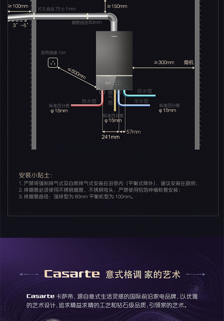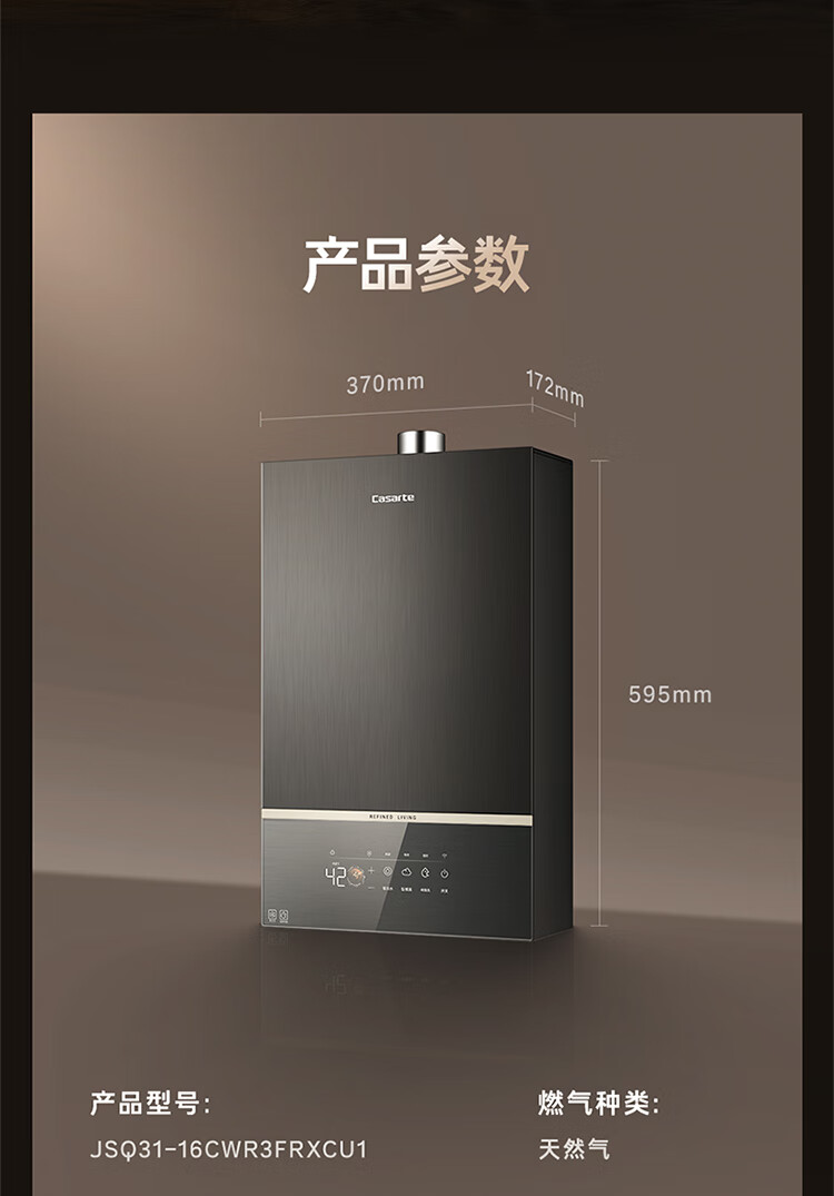 卡萨帝(Casarte)【CWR3】16升燃气热水器天然气 三管零冷水 静音水伺服 下置风机 JSQ31-16CWR3FRXCU1