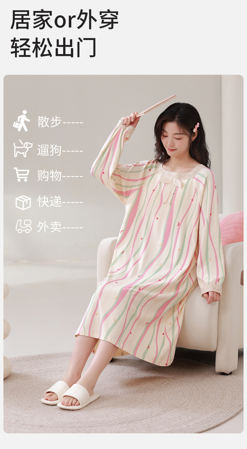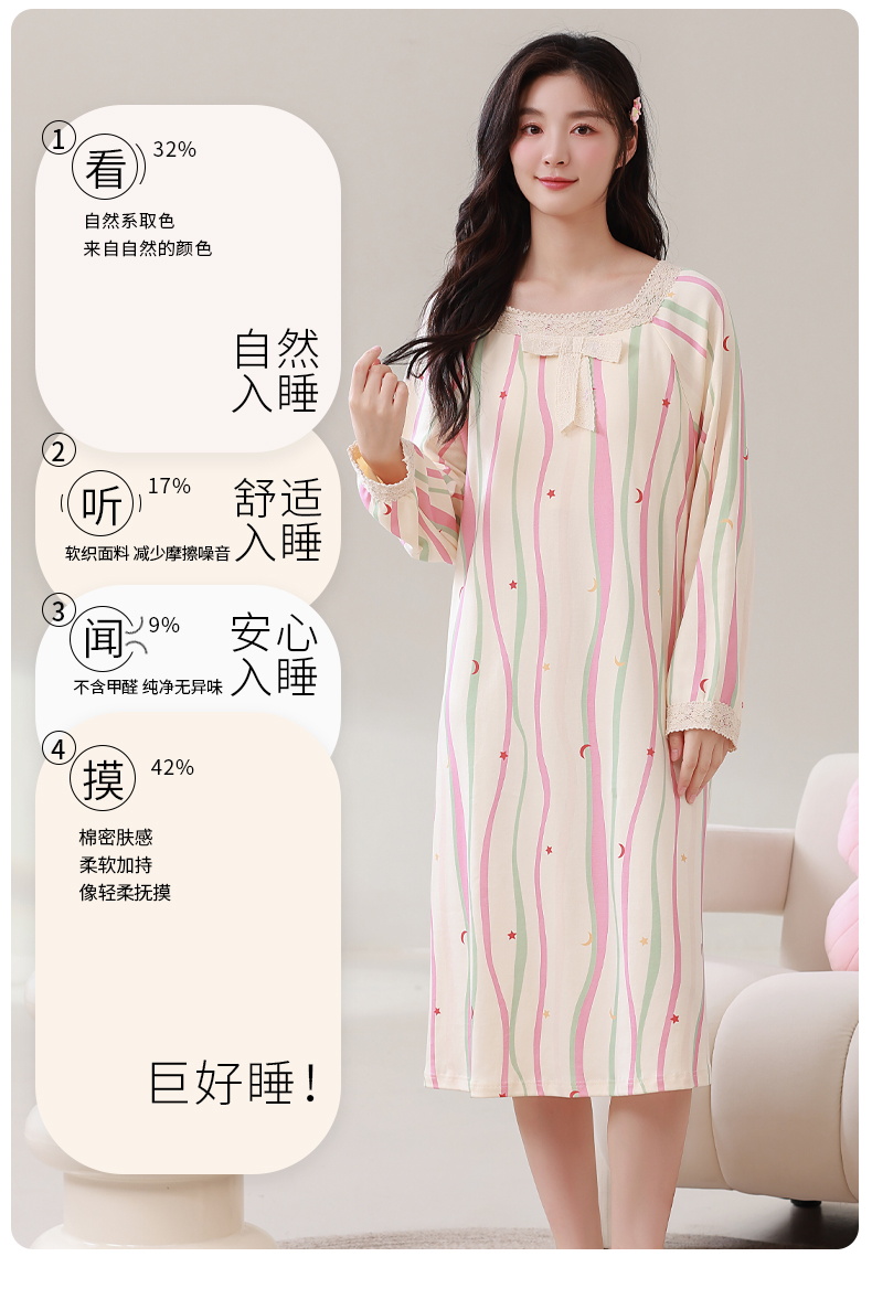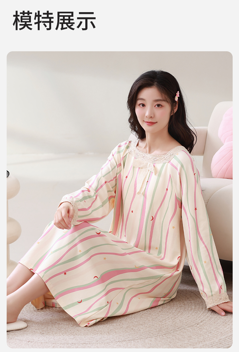 康妮雅女式长袖睡裙
