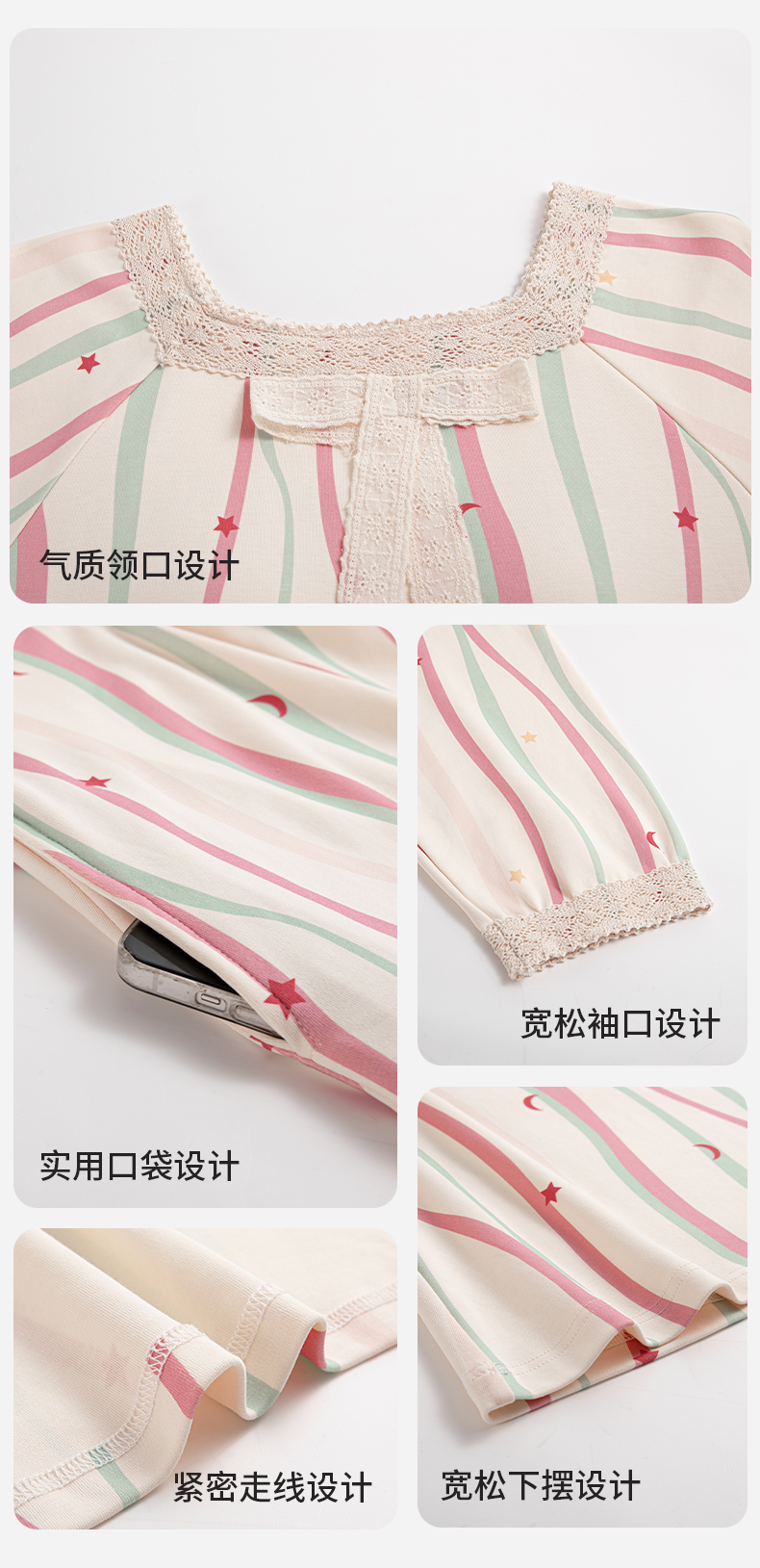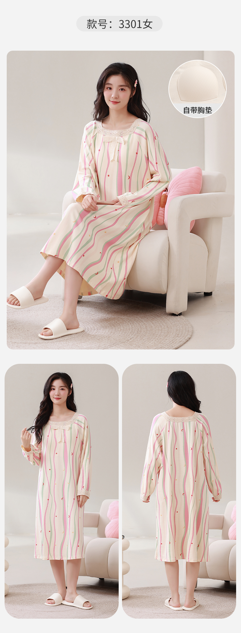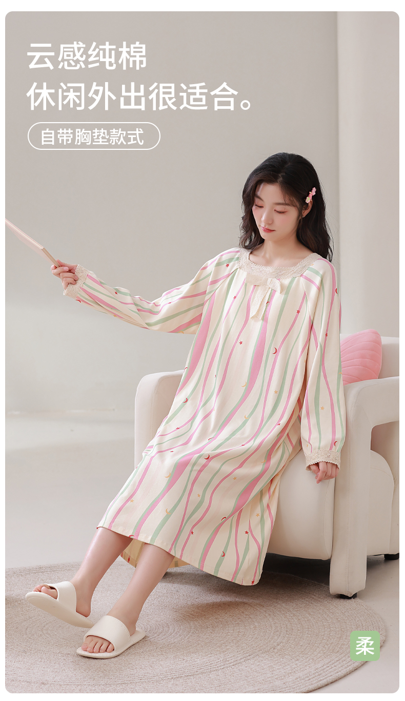 康妮雅女式长袖睡裙