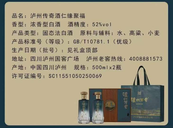 而我们的泸州老窖【泸州传奇·仁缘聚福】瓶身清清楚楚地写着“中国泸州老窖股份有限公司”!