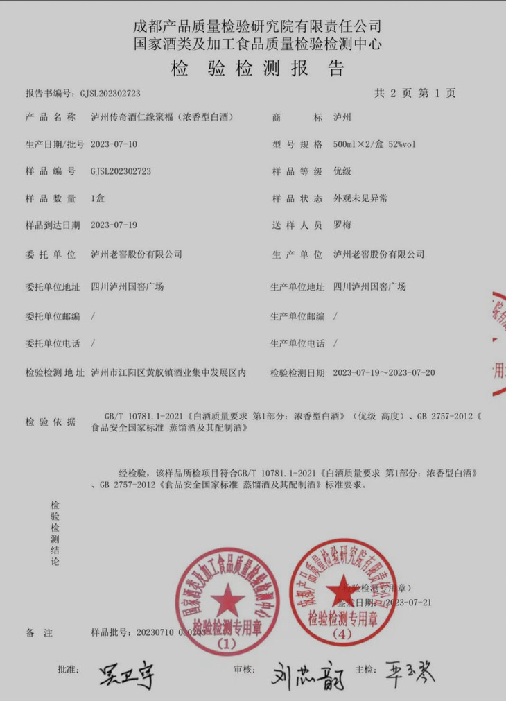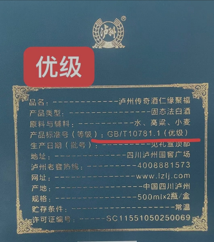 正是凭着这水、土、粮、窖、微生物,这天时、地利、人和,这多年积累,才成就了泸州老窖的“百年老窑飘香,好酒金牌不倒”的美誉。 产品也标注着优级,在生产标准上,优级要高于一级,也就是说,优级酒代表着是该香型中要求Z高的酒品。 而且每一瓶酒也都通过了严格的质量检测,品质有保证。