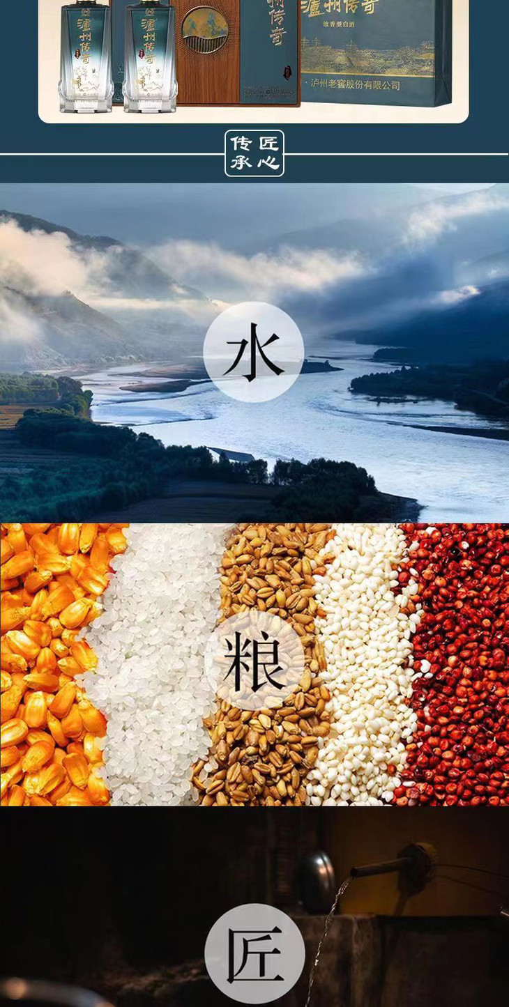 浅酌一口,口感丰满,滋味醇厚,甘美净爽,各味协调,恰到好处的滋味,一品难忘,浓香典范,令人拍案叫绝! 酒美,设计更美,这款泸州老窖【泸州传奇·仁缘聚福】外观主体优雅,传世佳酿配精巧设计, 不管是自饮还是送人都有面,尤其瓶身的泸州传奇字样,彰显品质,无形中代表着饮者的高雅品位。