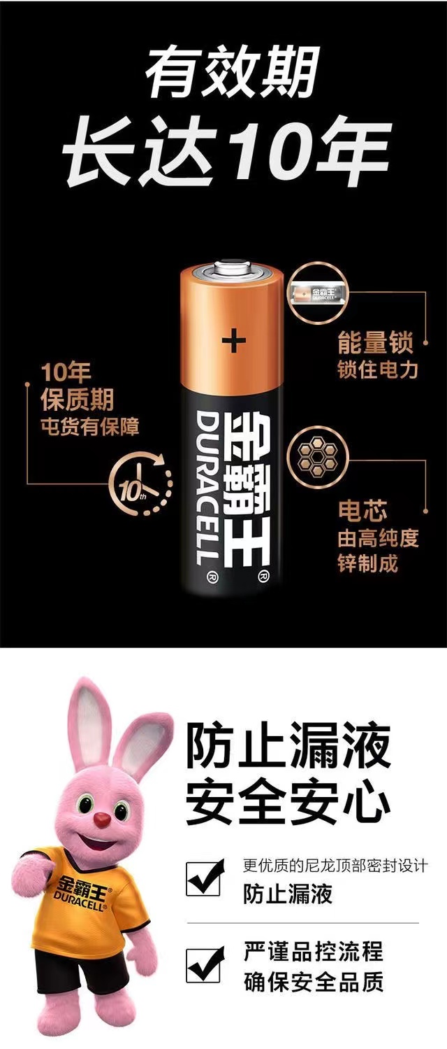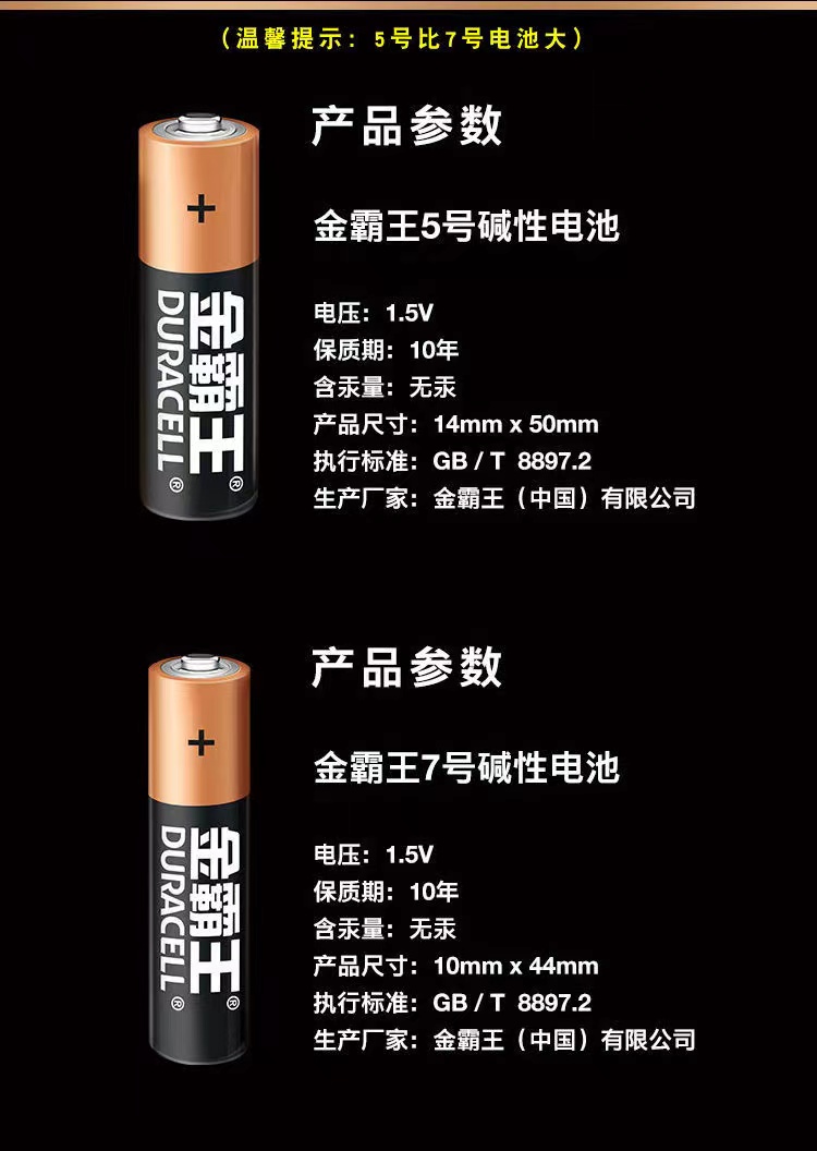 金霸王5号/7号电池碱性电池儿童玩具剃须刀闹钟电视遥控器电池