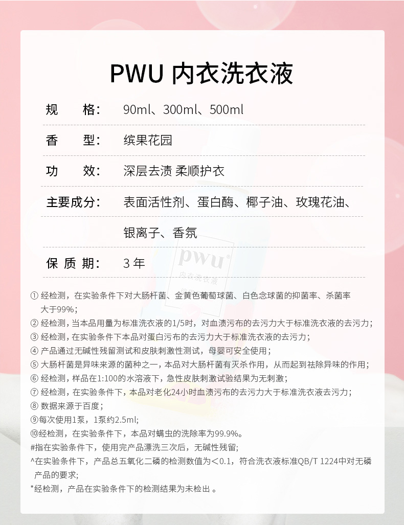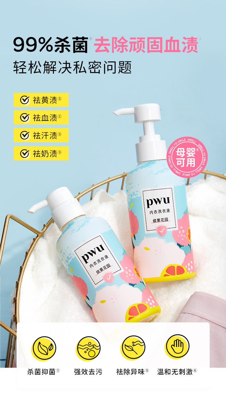 【贴身衣物的专属呵护】PWU内裤内衣清洗液洗衣液女士专用洗内衣液手洗