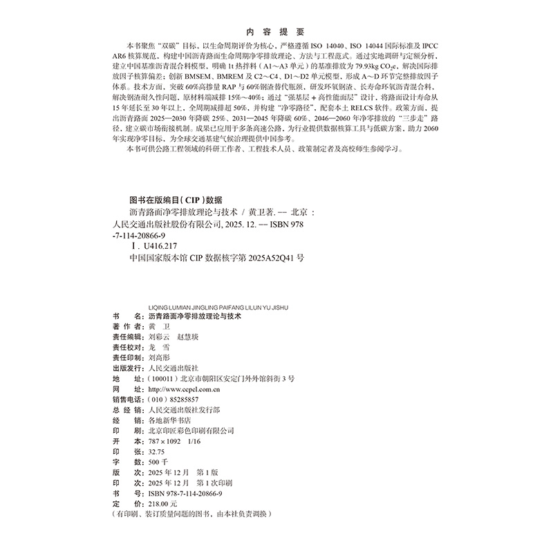 沥青路面净零排放理论与技术 黄卫 著 人民交通出版社