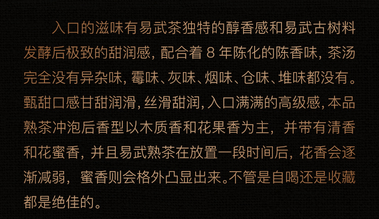 【宫廷易武(熟茶)】2015年易武头春头采核心拼配8年陈化宫廷级易武熟茶山泉水小框离地发酵 357g/饼