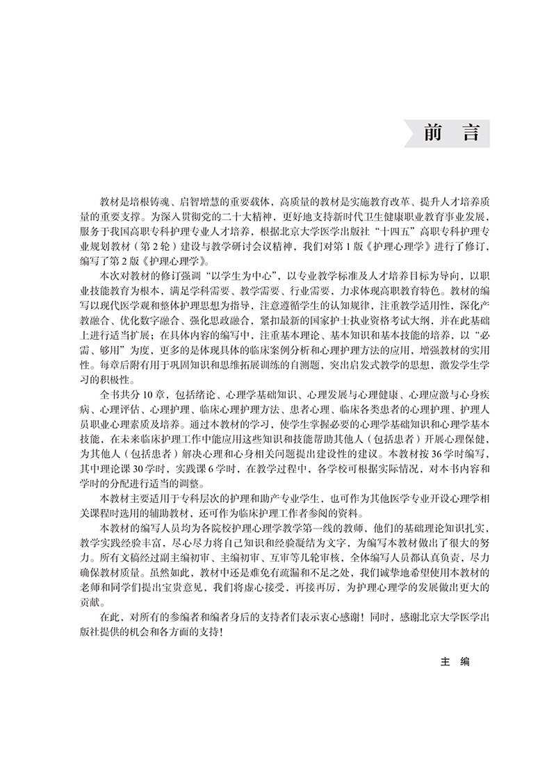 护理心理学第2版 第2轮数字高职护理教材 十四五卫生高等职业教育专科校园合作双元规划教材 供护理助产及相关专业用9787565931383北京大学医学出版社