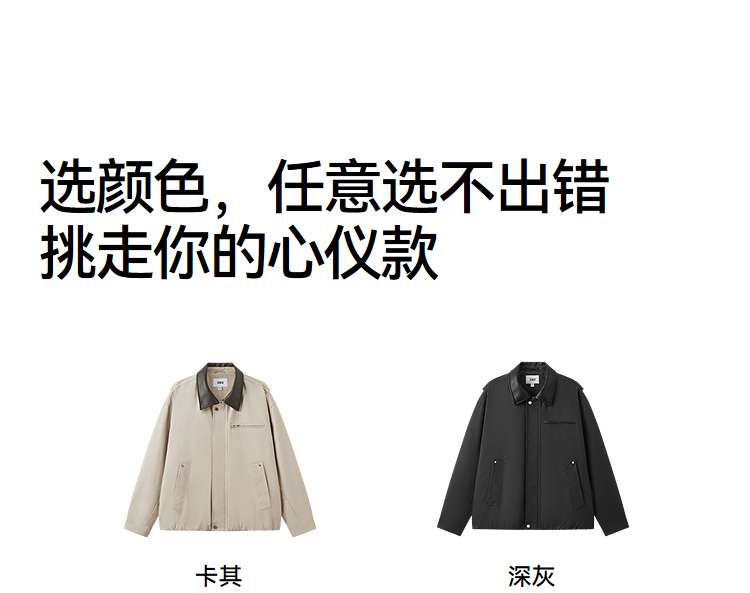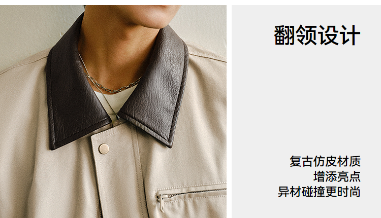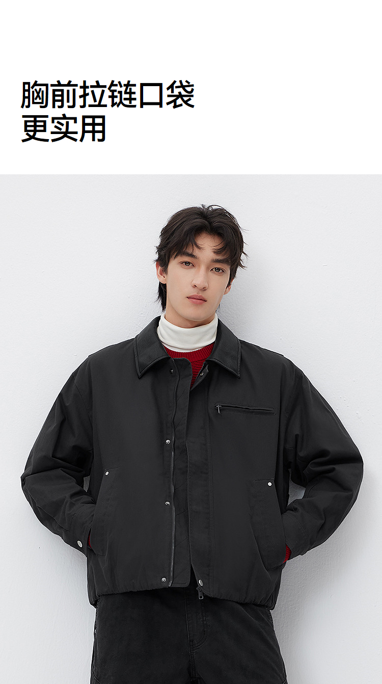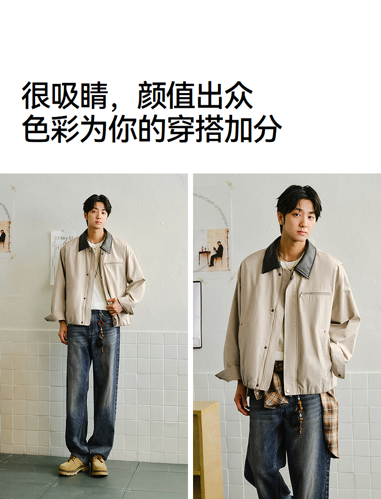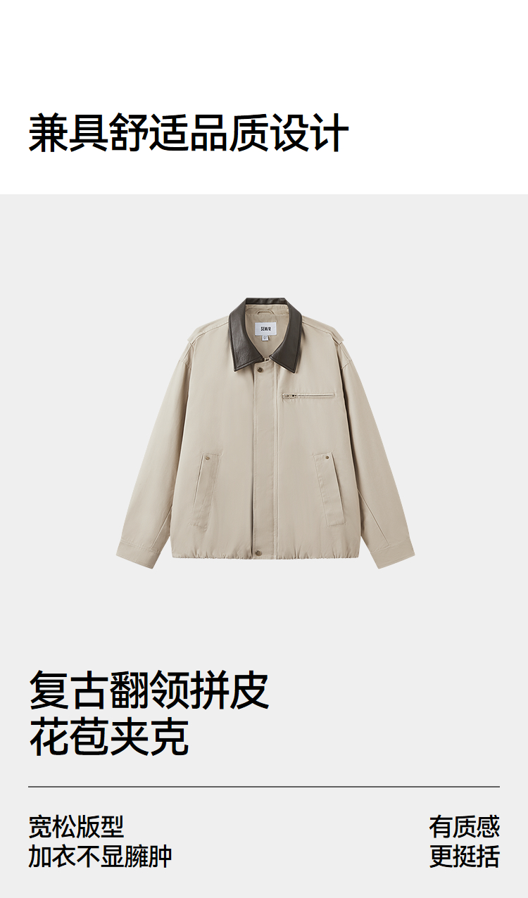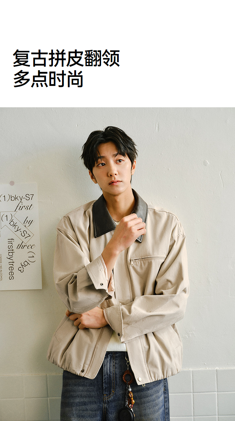 森马夹克男春季花苞翻领夹克2026春季情侣复古领拼皮上衣潮流时尚