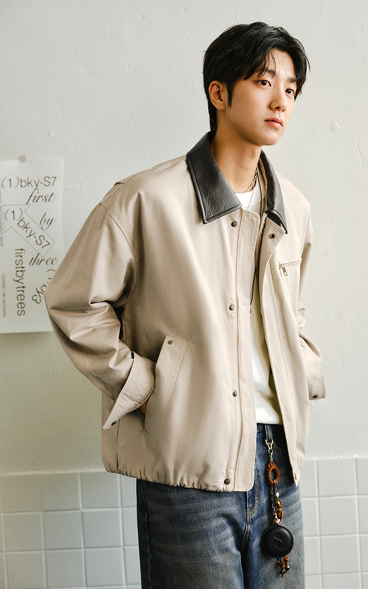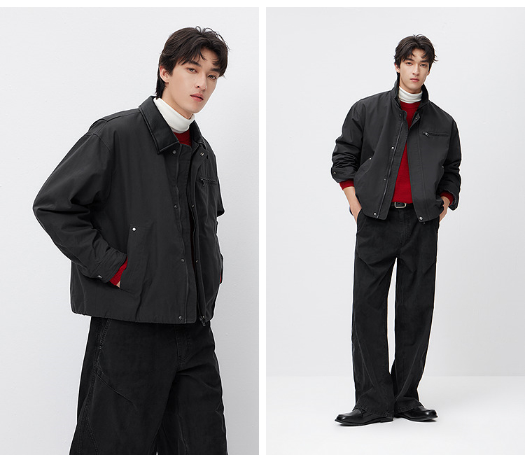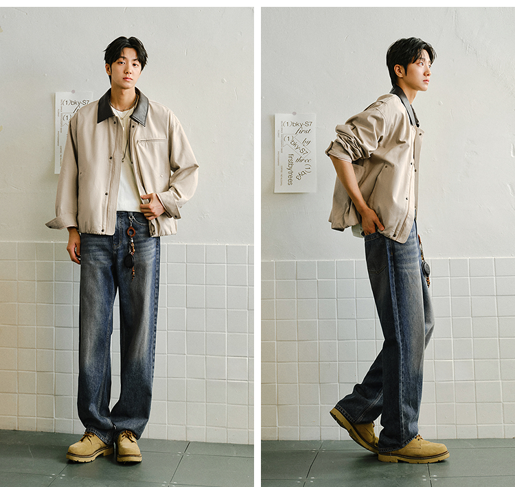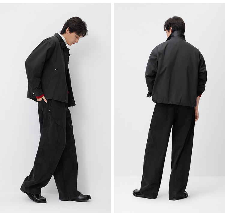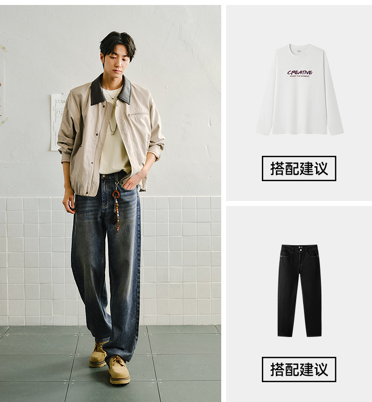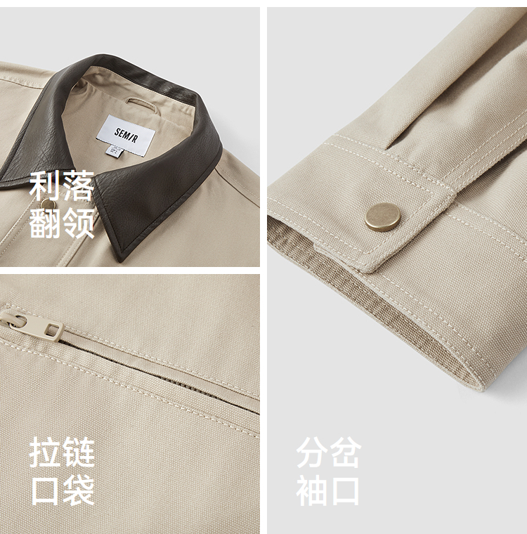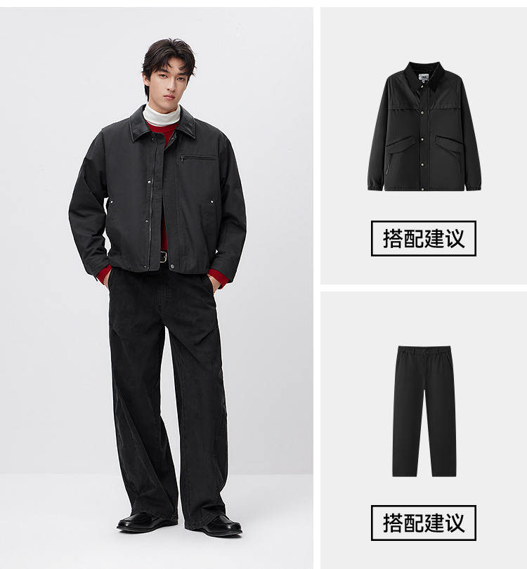 森马夹克男春季花苞翻领夹克2026春季情侣复古领拼皮上衣潮流时尚