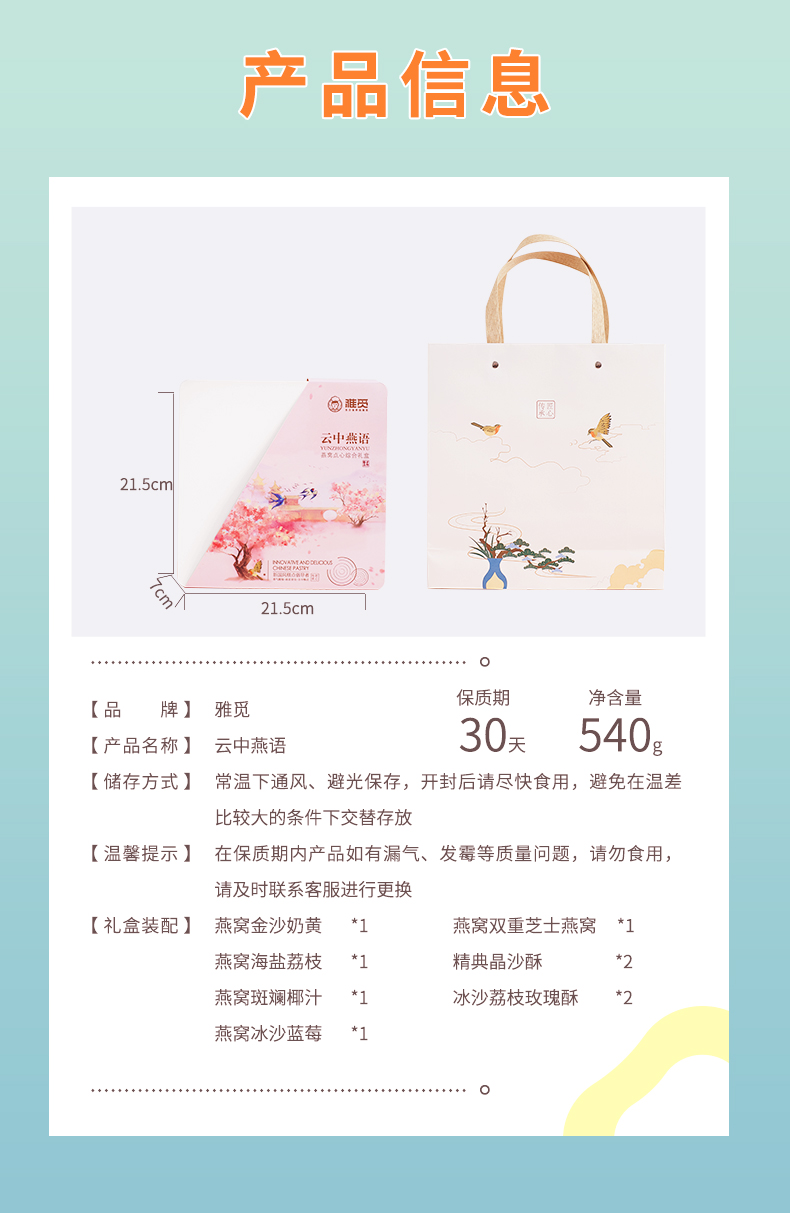 雅觅 云中燕语540g礼盒 传统手工燕窝中式糕点休闲零食伴手礼 送女友送妈妈送女神