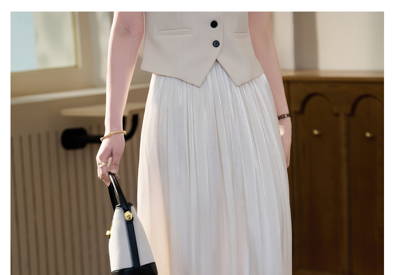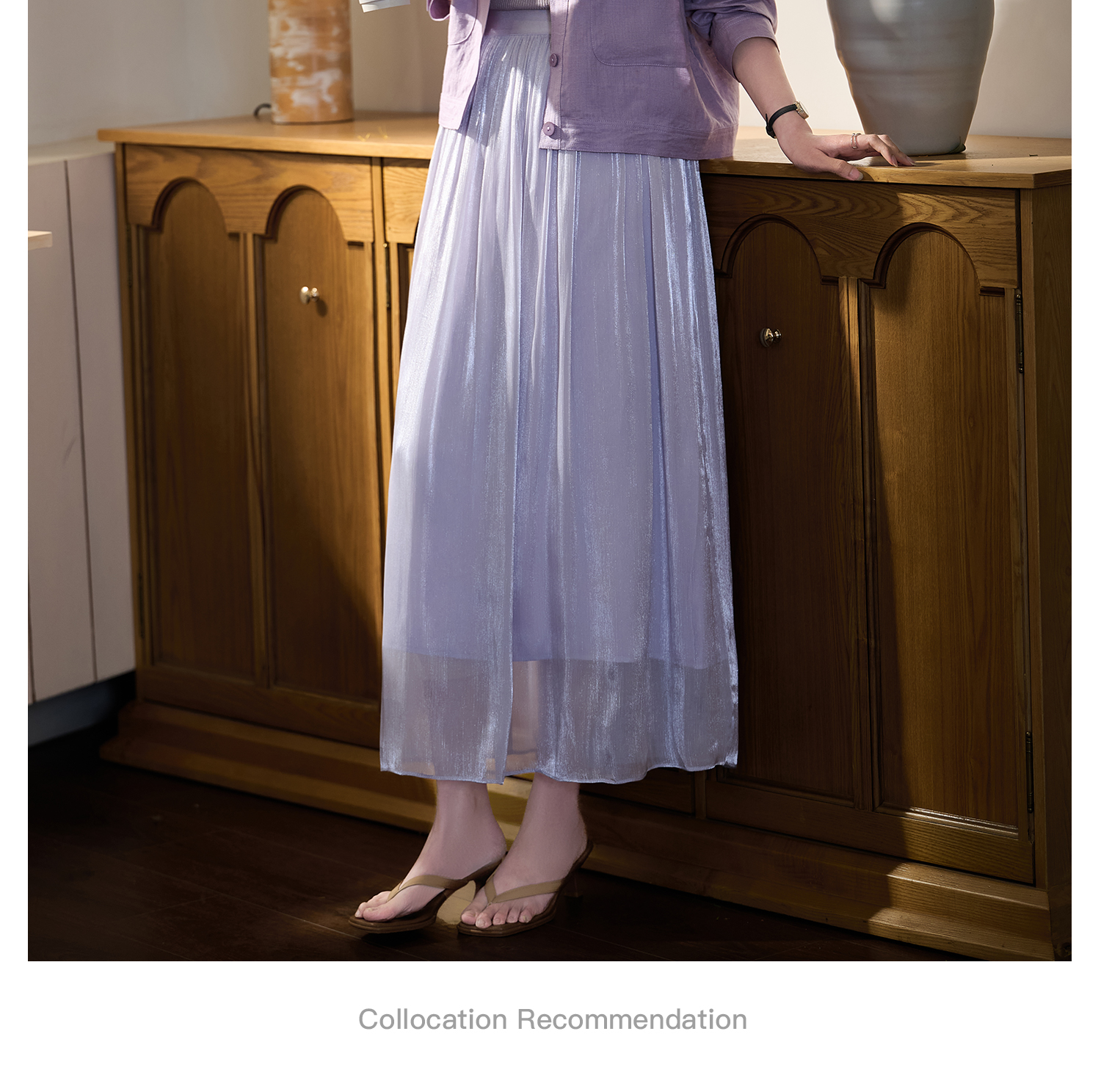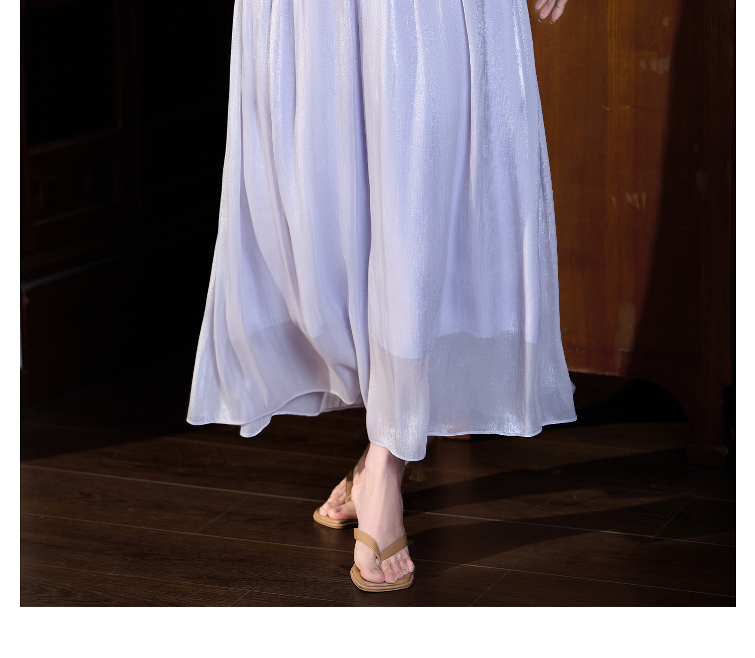 【杏色预售10天】人鱼姬鎏光纱裙 米思阳2026春季新款法式仙气飘逸流光纱裙薄款高腰遮胯沙滩半身裙女1049