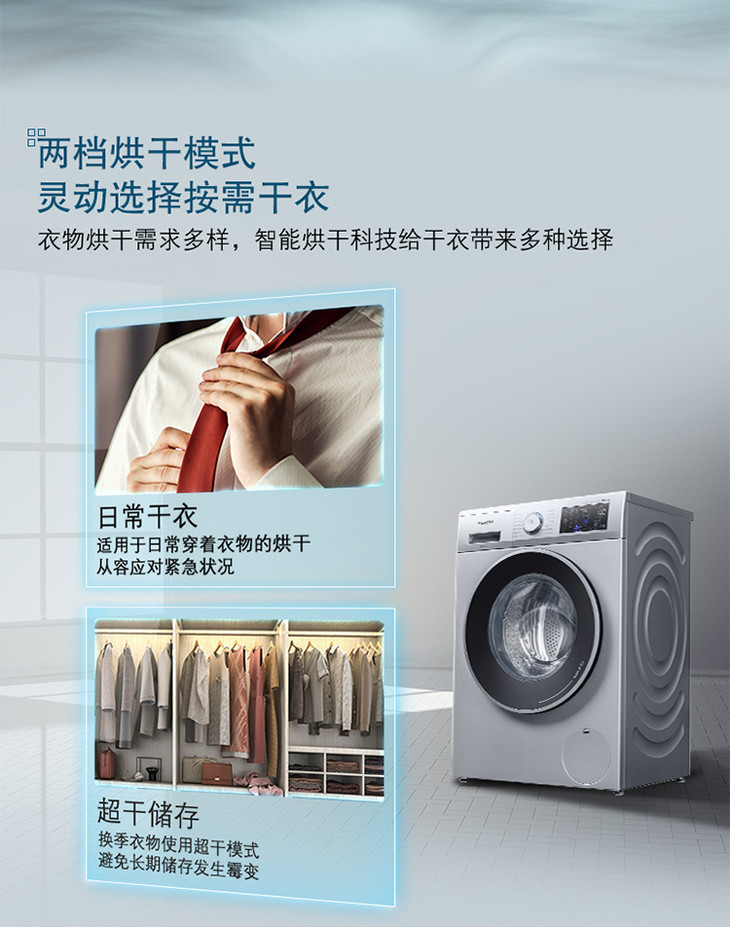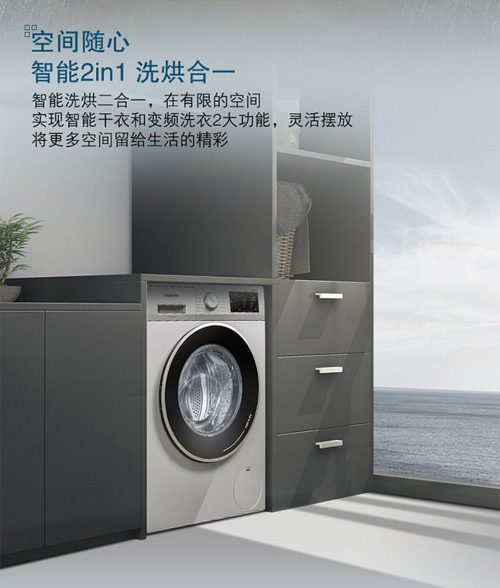 西门子(SIEMENS)(251719)双变频滚筒洗衣机洗干一体机 WJ45UQ080W 10公斤洗7公斤烘 19年新品 智能自清洁