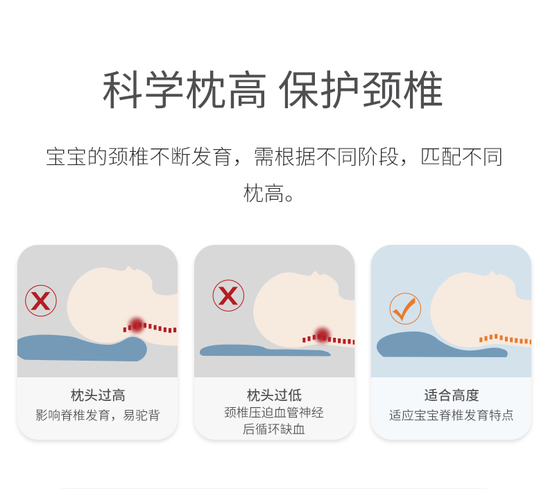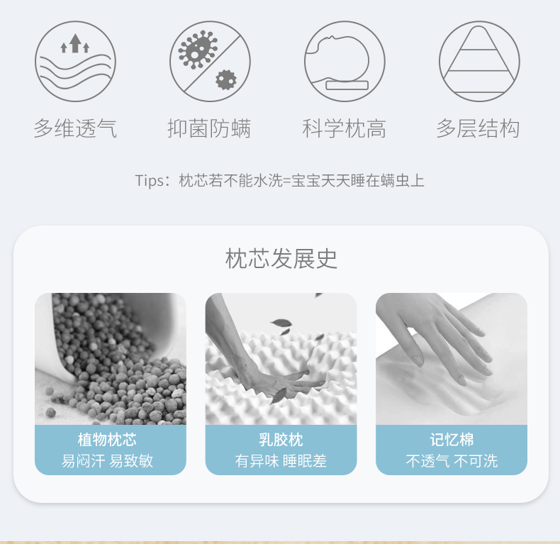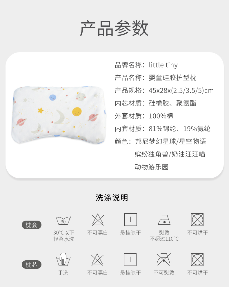 枕头、little tiny婴儿枕头新生儿硅胶枕3个月枕套儿童枕头四季通用