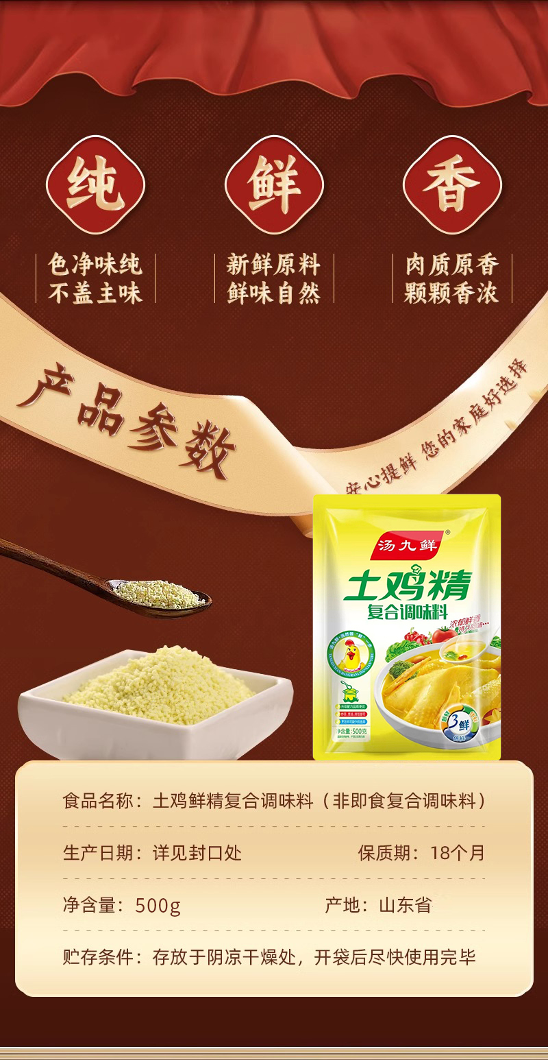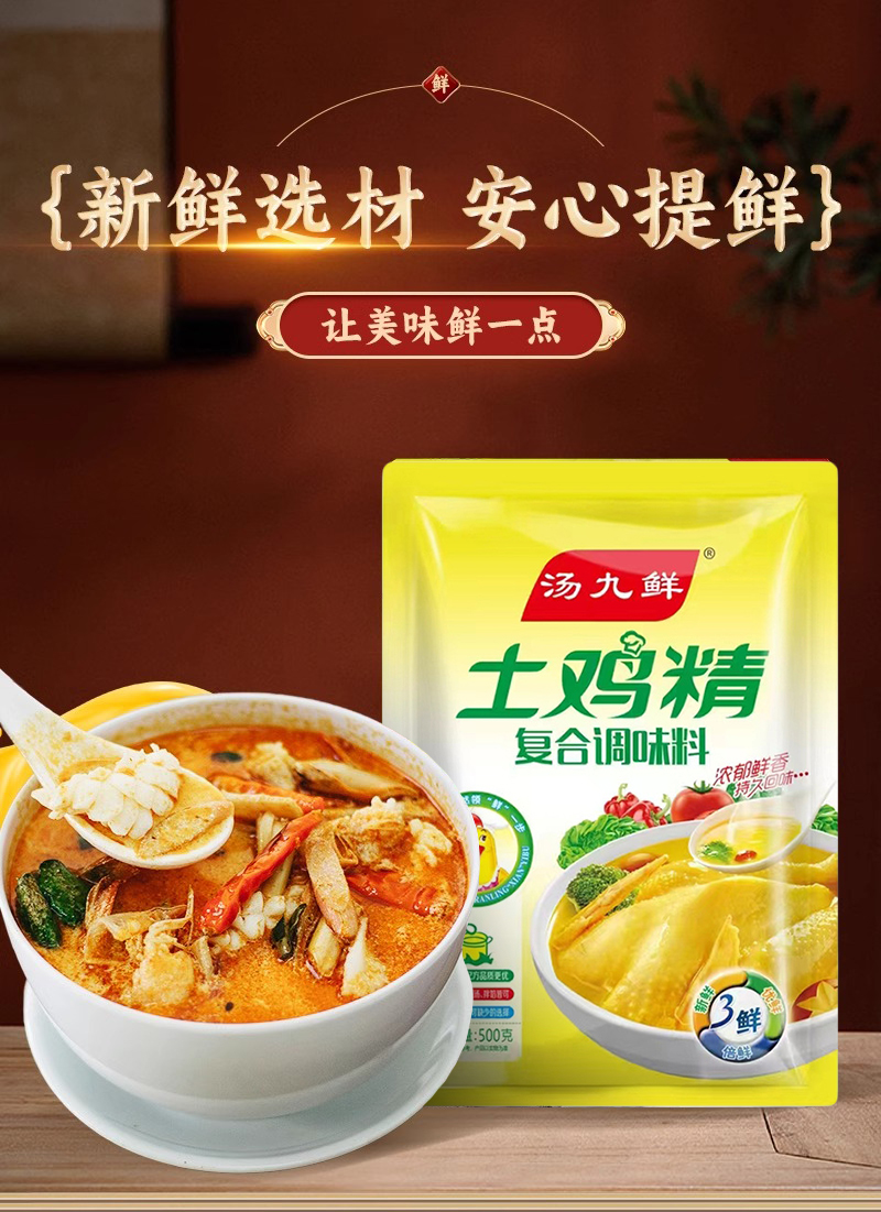 配料:食用盐、食用玉米淀粉、味精、白砂糖、麦芽糊精、咖喱粉、香辛料、鸡肉、食品添加剂(5’-呈味核苷酸二钠、琥珀酸二钠、柠檬黄、纽甜)、食用香精