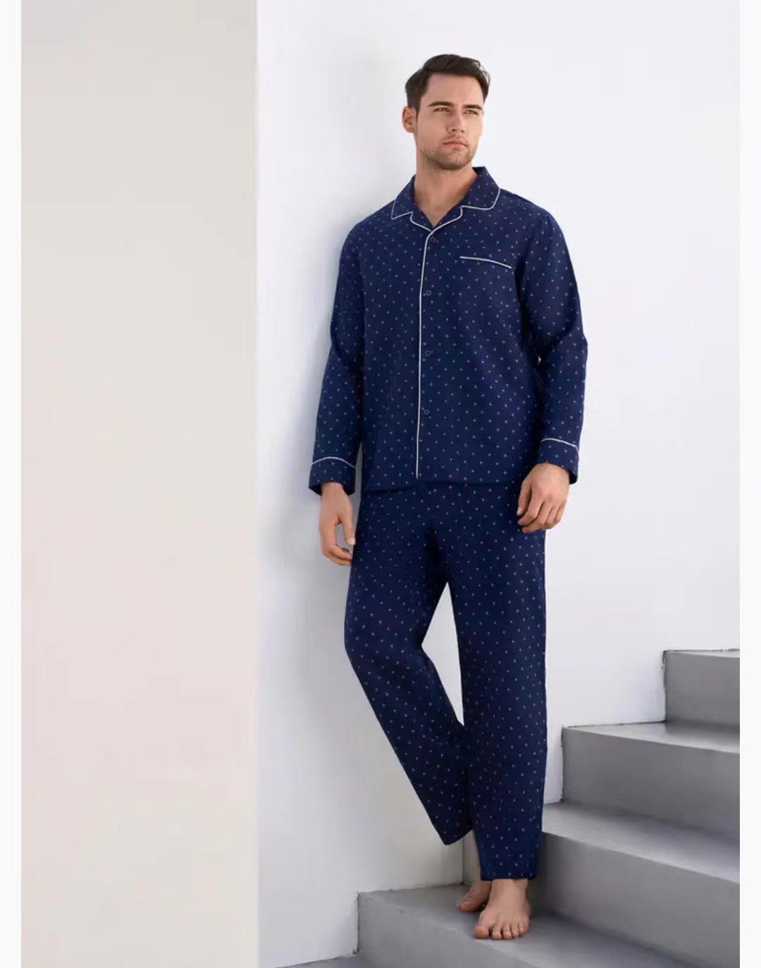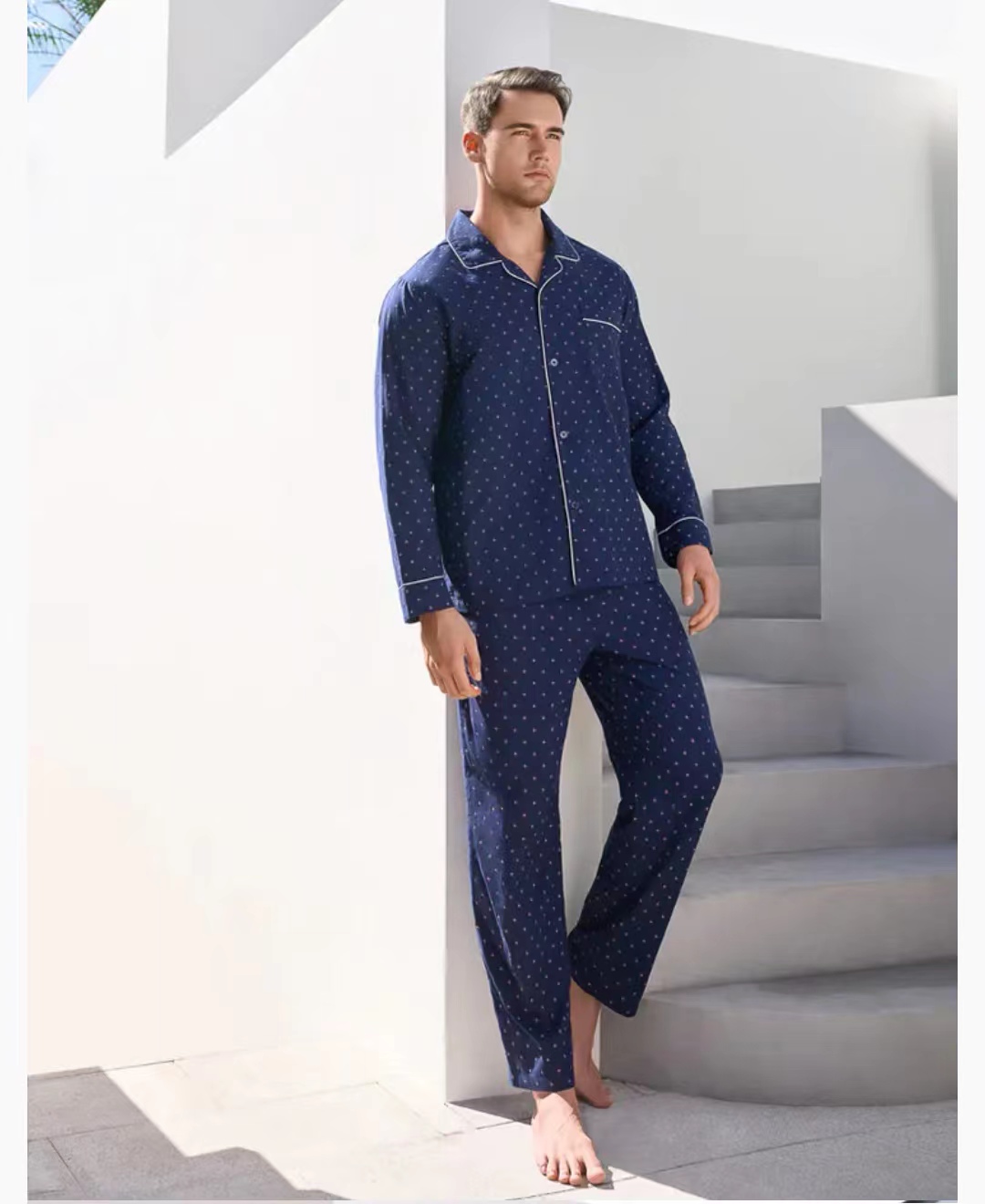 旗下 IVU男士棉质衬衫领开襟长袖家居上衣