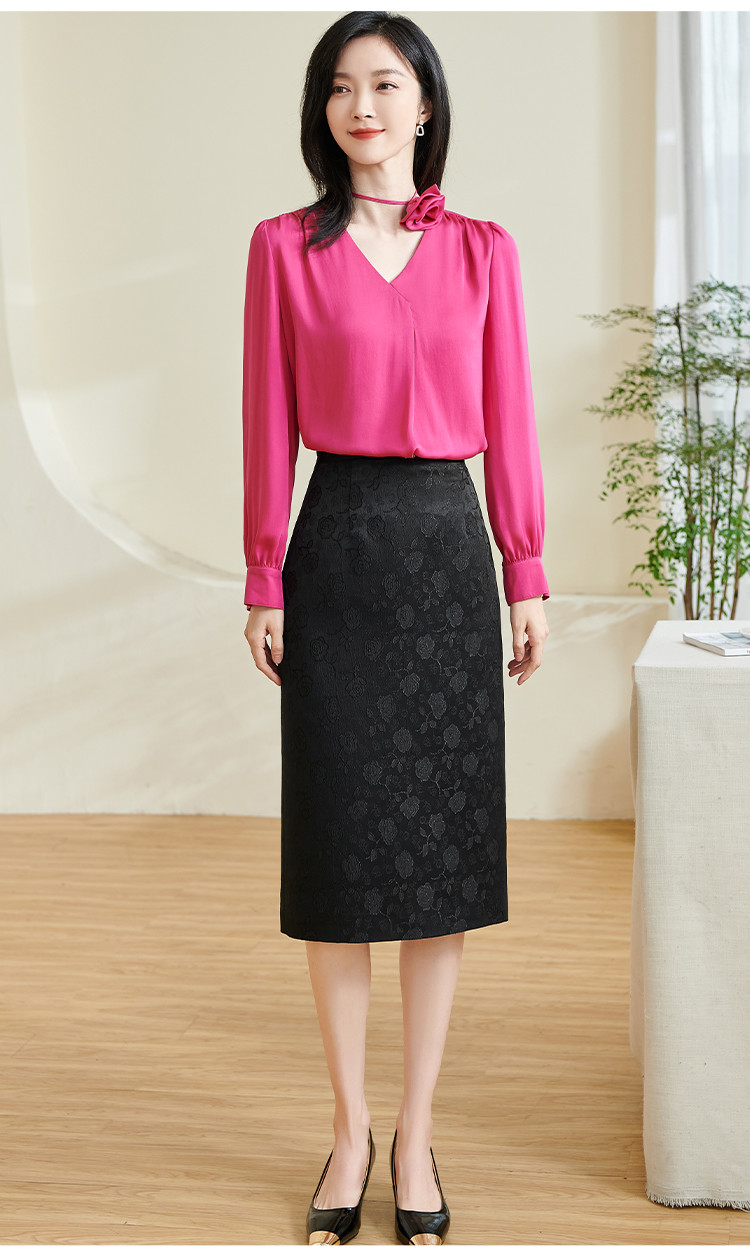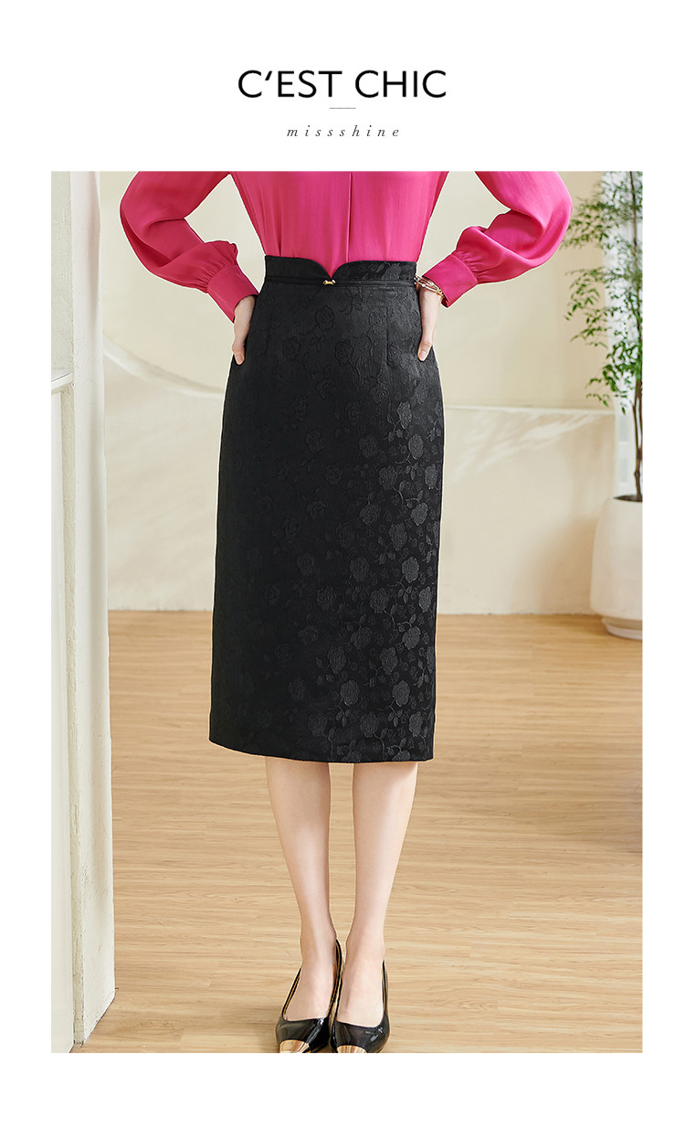 剩S/XXL 米思阳2025春季新款复古别致提花半身裙修身开叉肌理感直筒裙0468