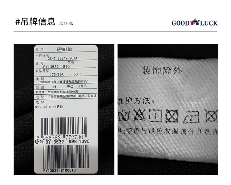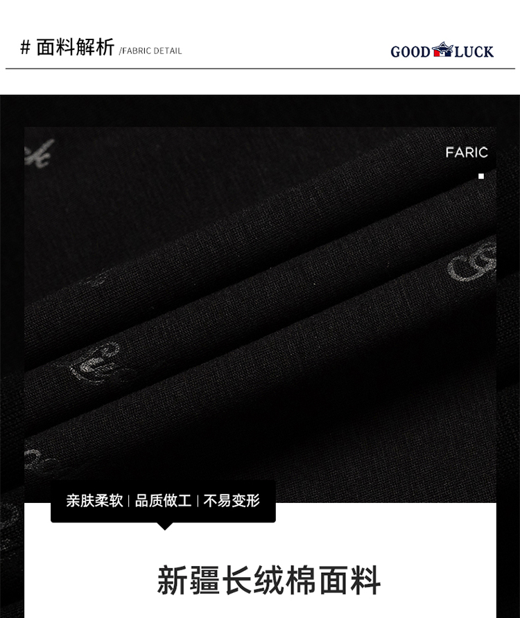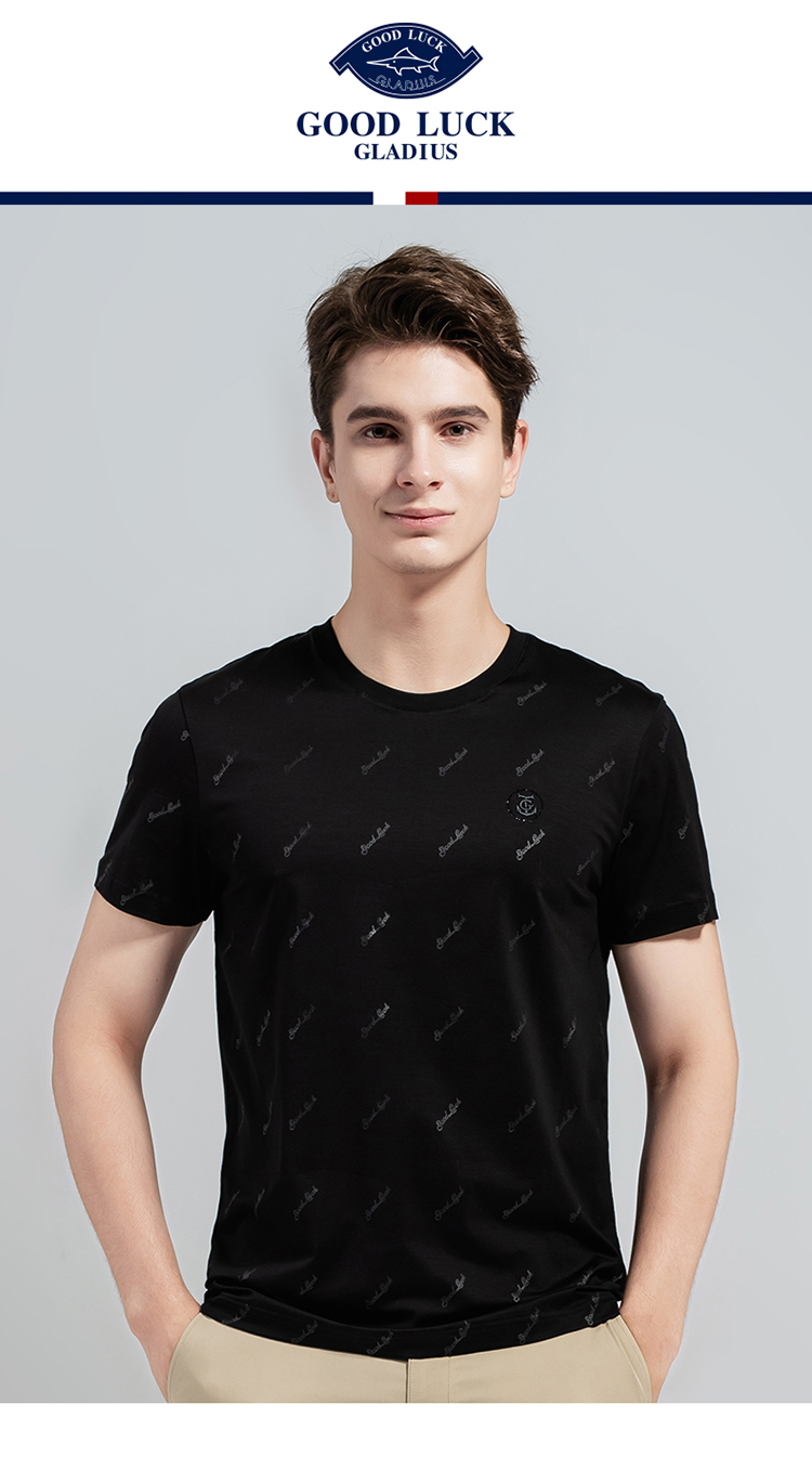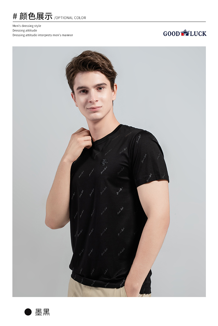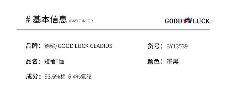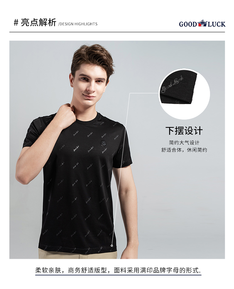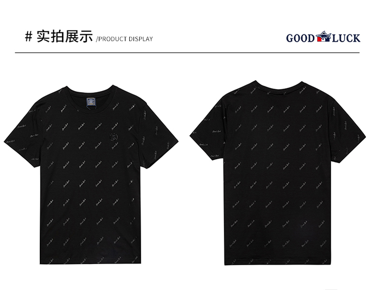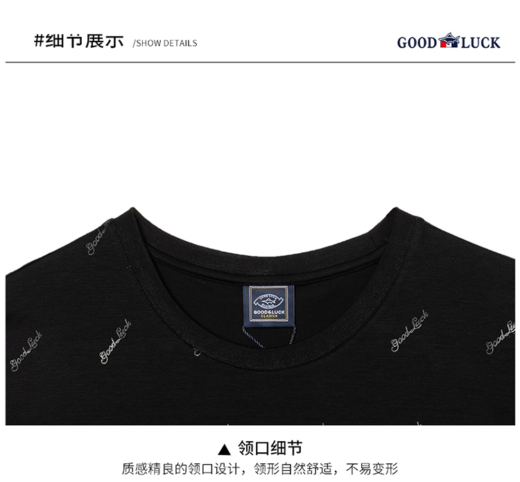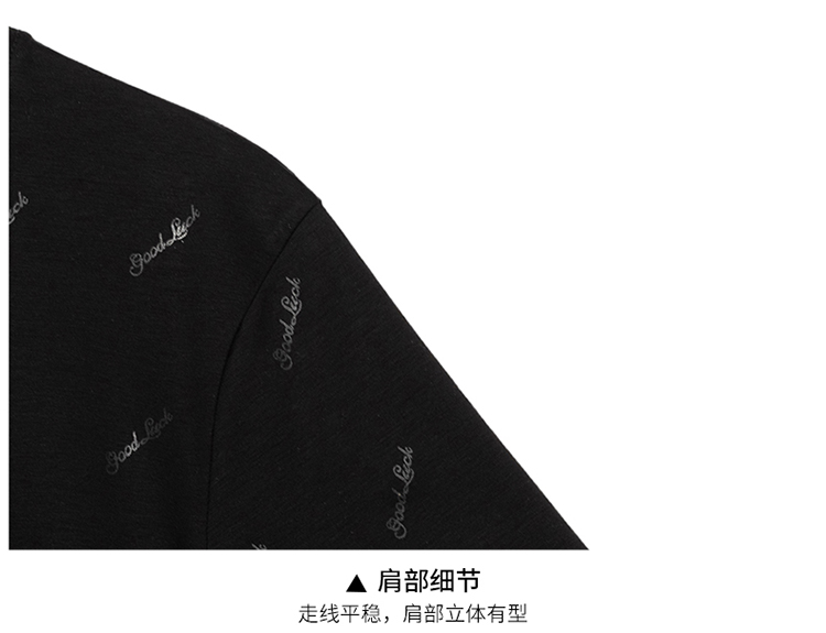 GOOD LUCK/德鲨微弹棉质字母印花圆领短袖T恤BY13539-810