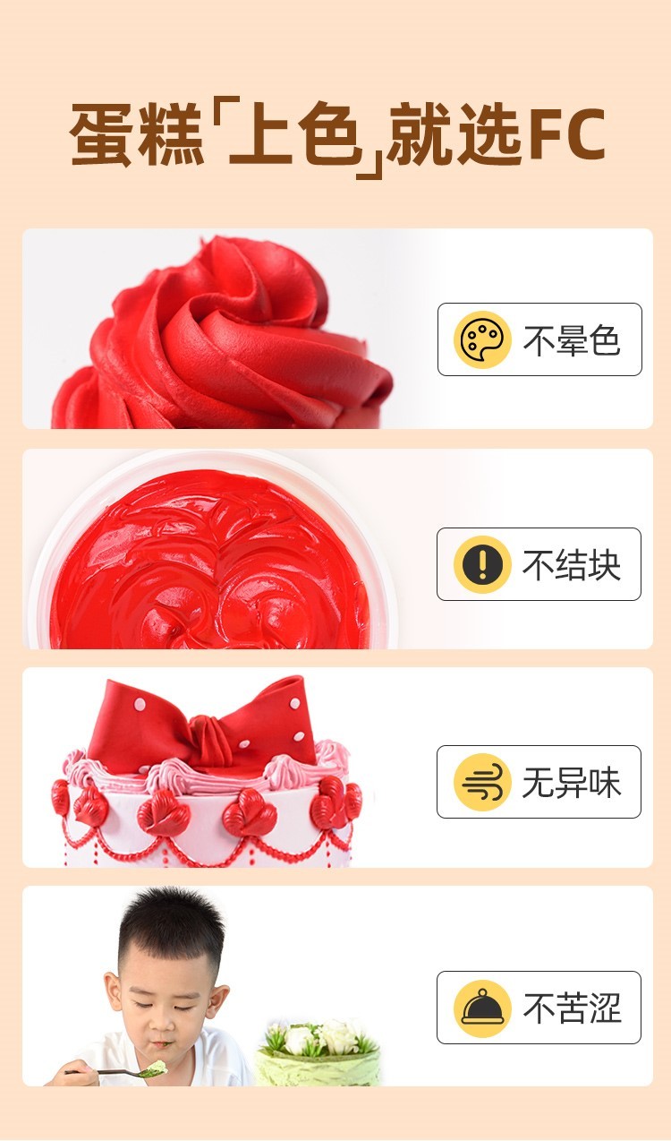 180g 法采 正红色/正黑色/白色/巧克力棕/果绿色/天空蓝/柠檬色 色素 着色剂 奶油果冻糖果食用色素
