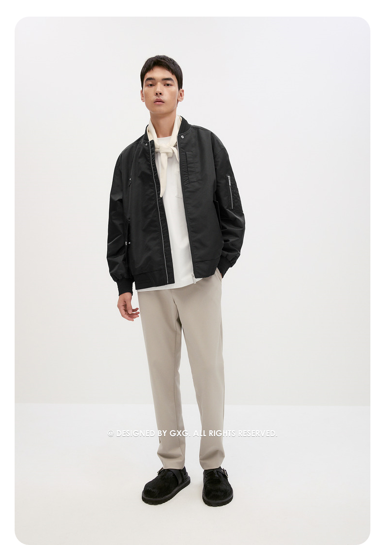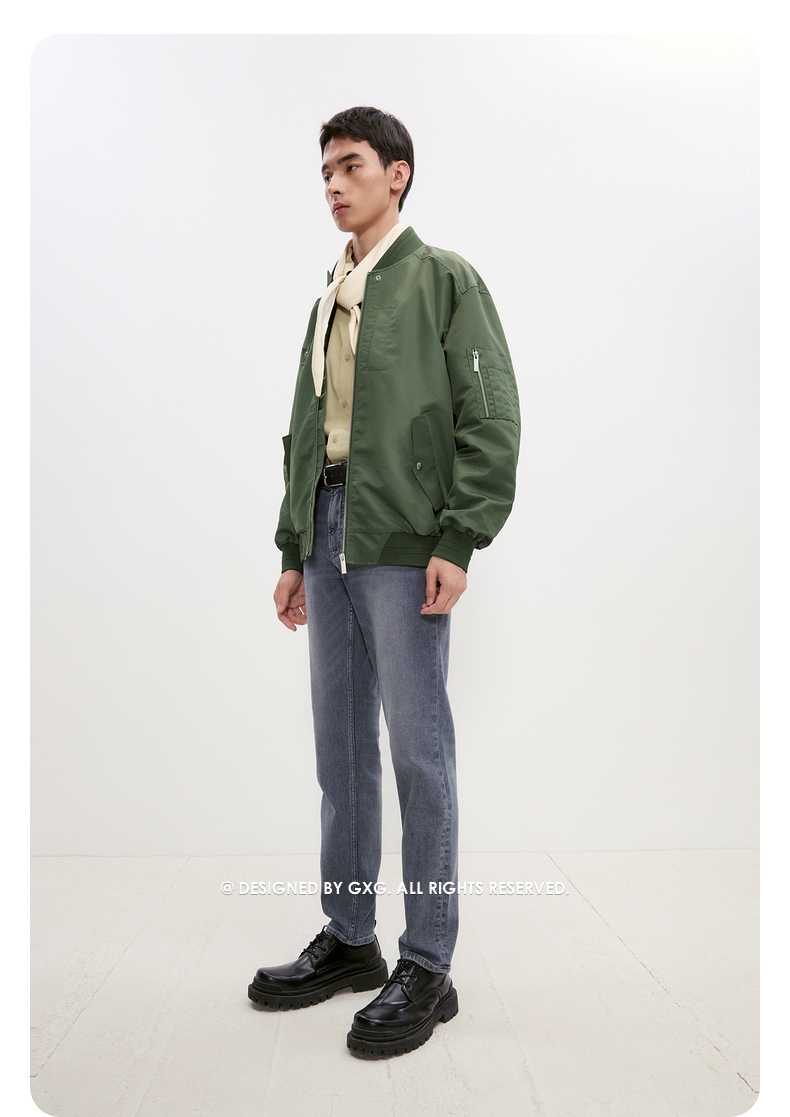 GXG男装 复古飞行员夹克外套男宽松潮流棒球服休闲外套24秋季热卖