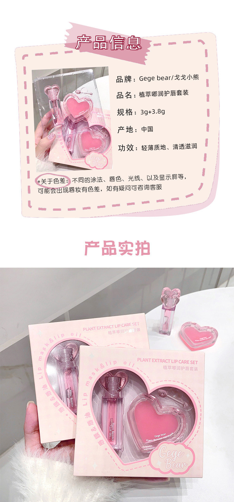 「呵护秋冬!唇釉+唇膜套装」戈戈小熊植萃嘟润护唇套装 水润不油腻滋润防起皮嘟嘟唇护唇油唇膜