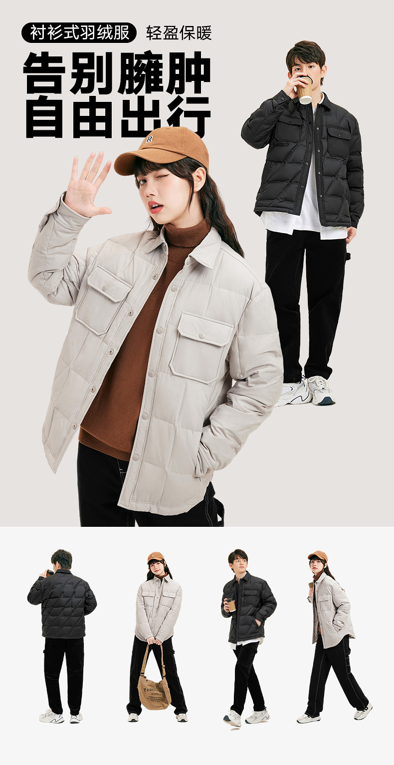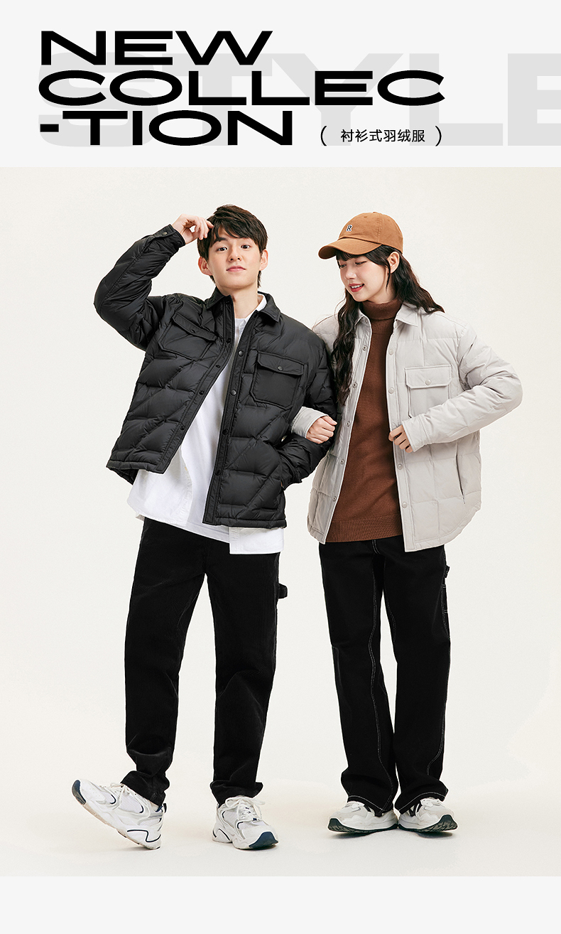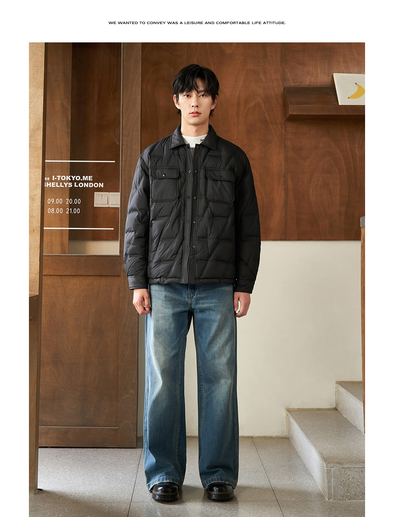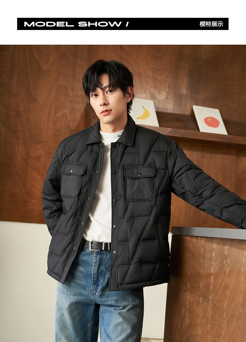 gxg.jeans男装冬季保暖翻领衬衫黑色情侣轻薄羽绒服J24D1110322H