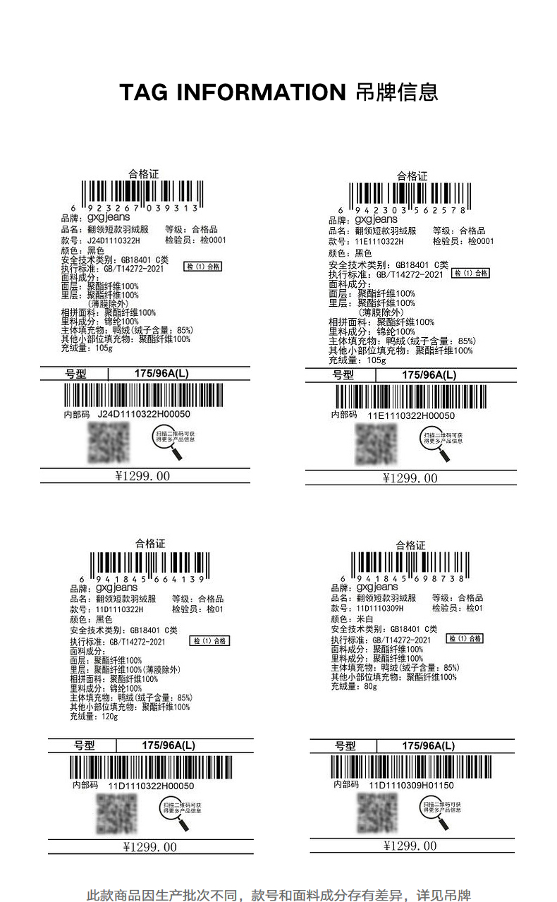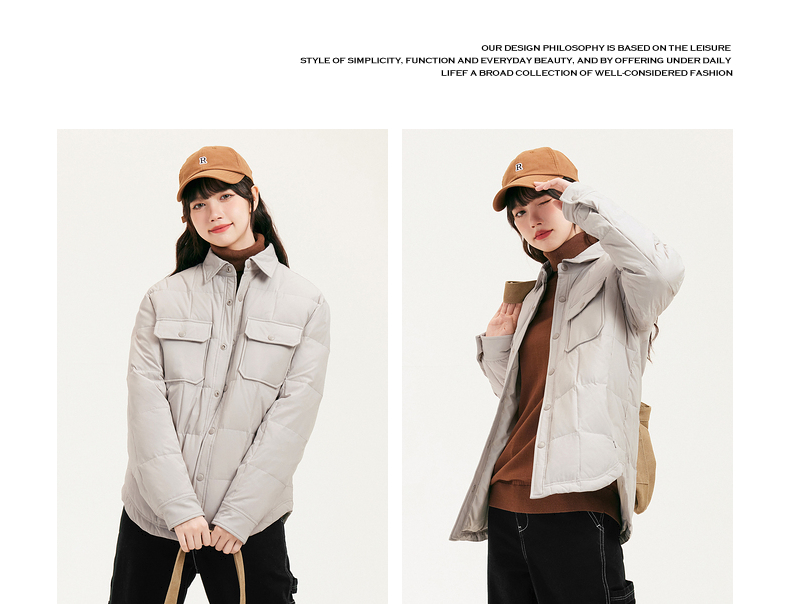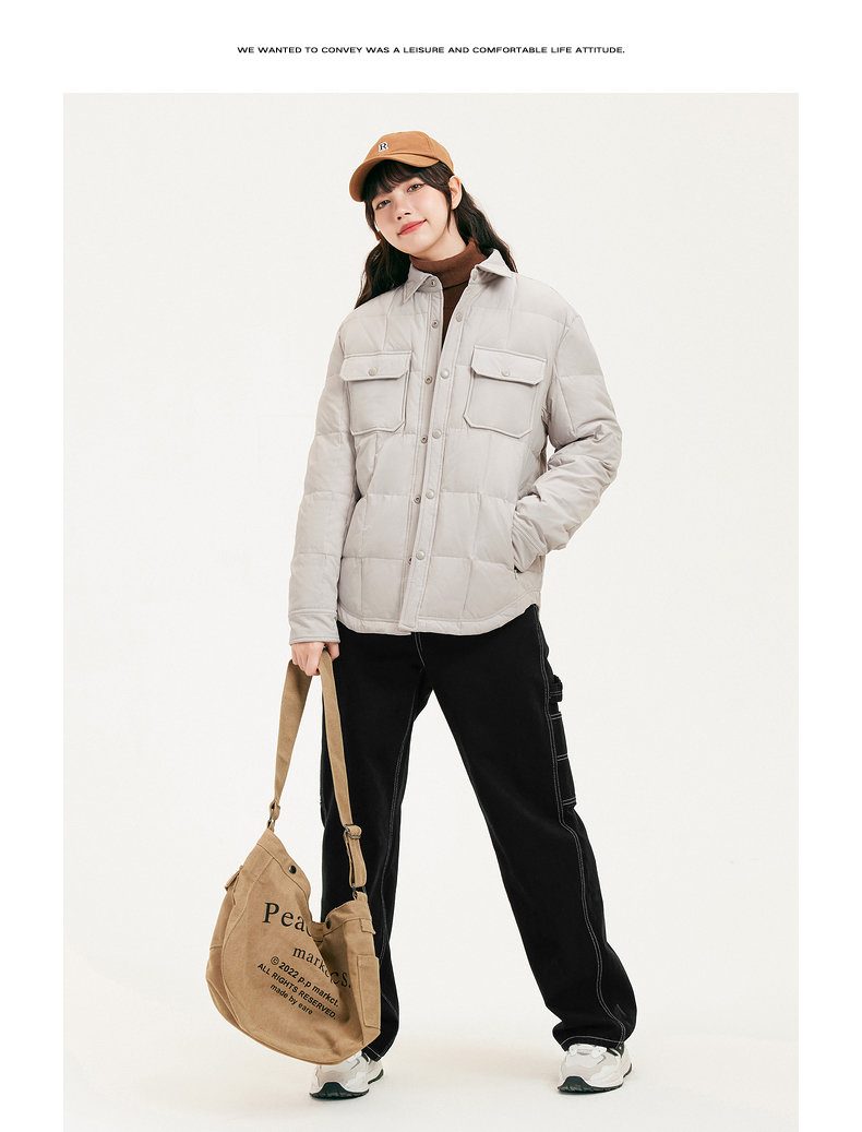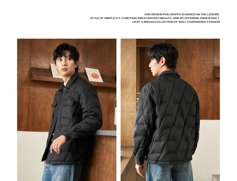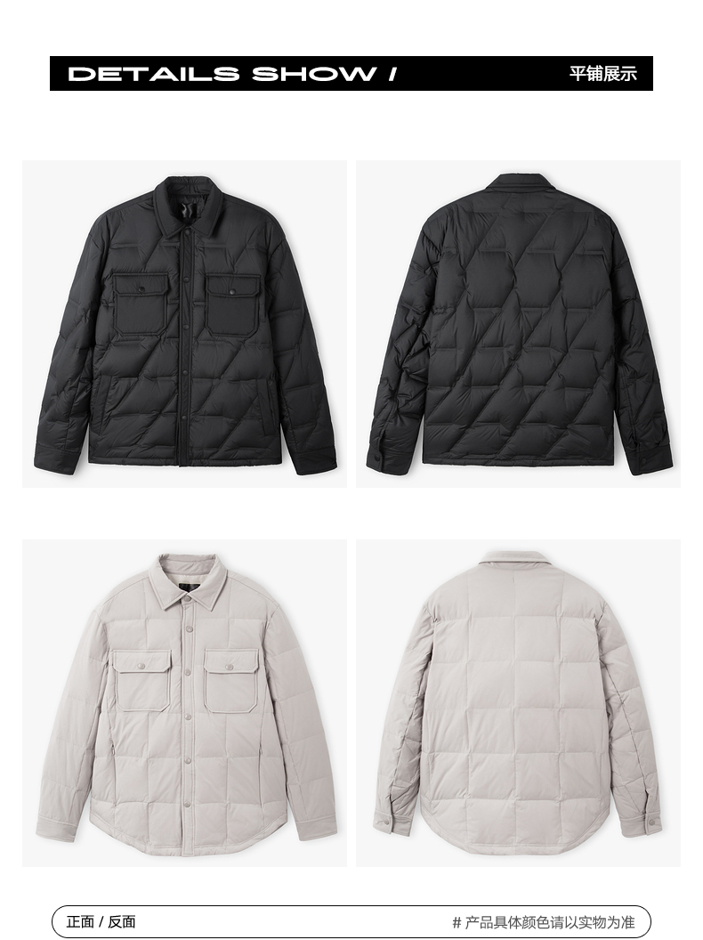 gxg.jeans男装冬季保暖翻领衬衫黑色情侣轻薄羽绒服J24D1110322H