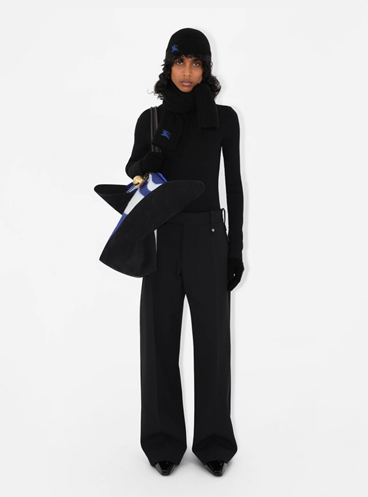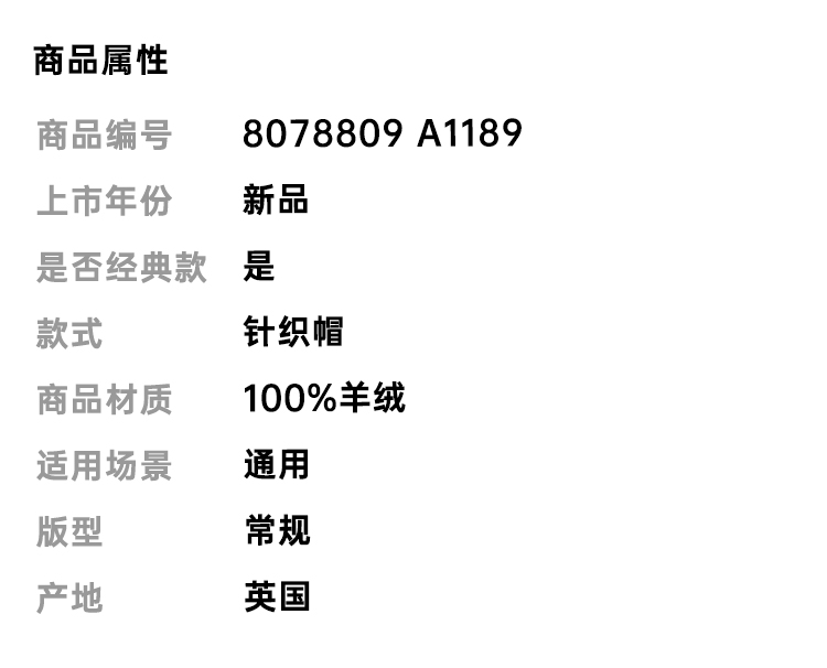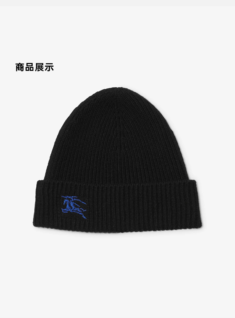 【一】BURBERRY 巴宝莉 男女通用马术骑士刺绣徽标罗纹针织羊绒帽 黑色 8078809 A1189