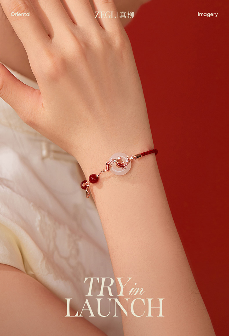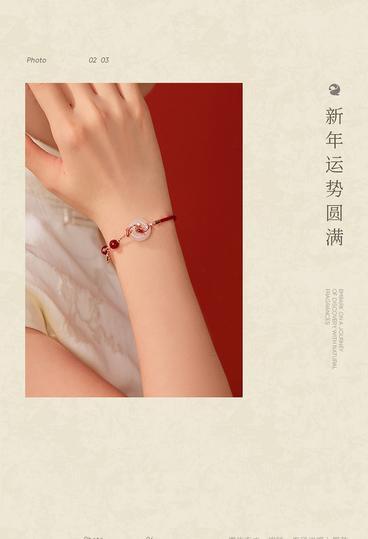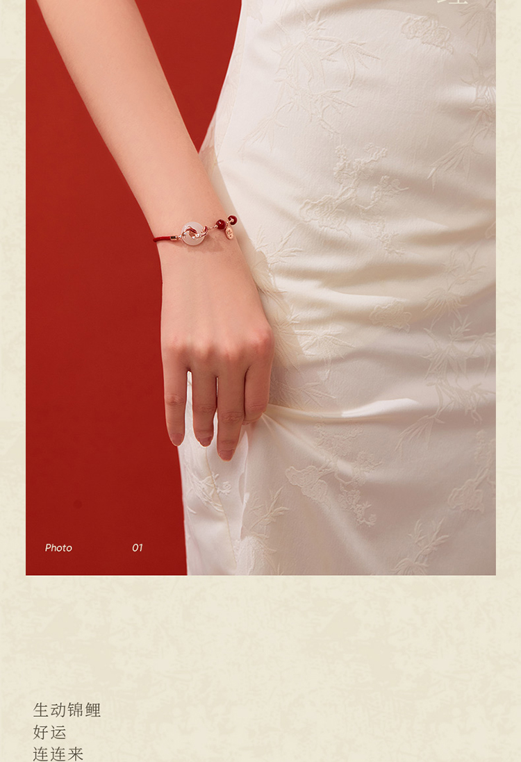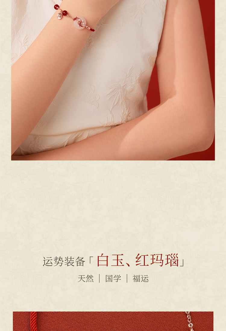 ZEGL真柳设计师白玉平安扣红绳925银手链女款精致红玛瑙手绳手饰