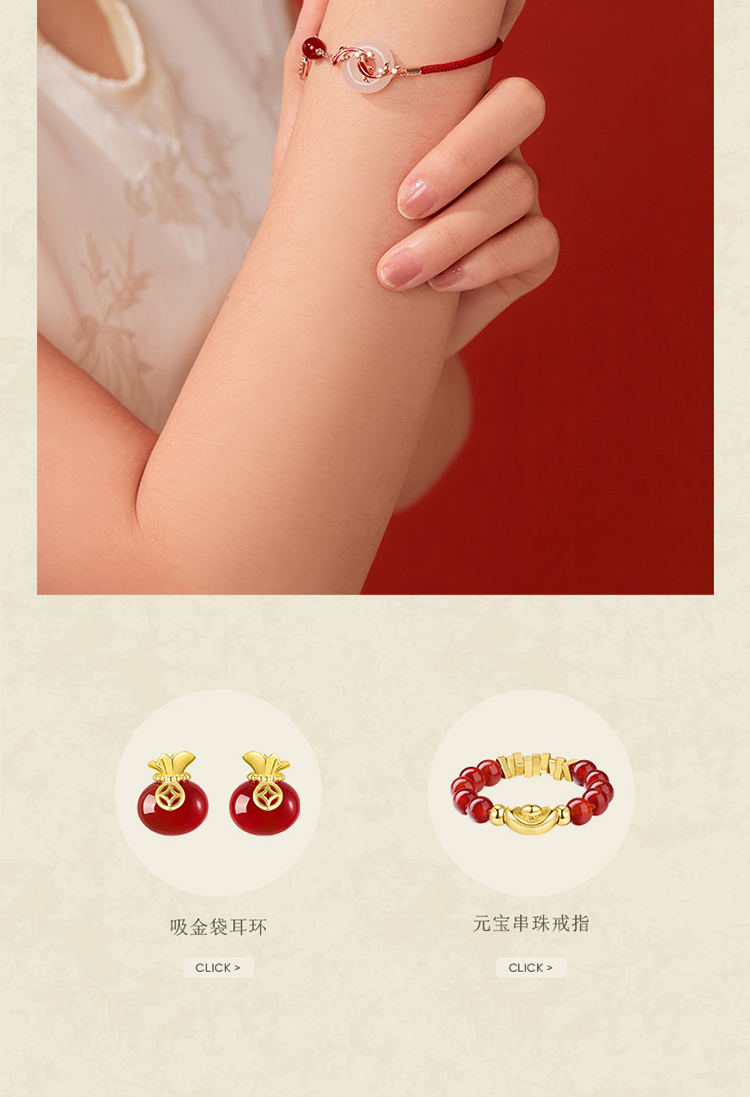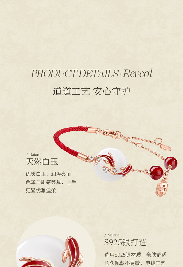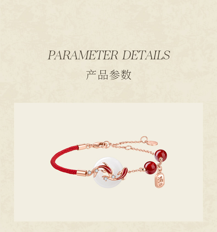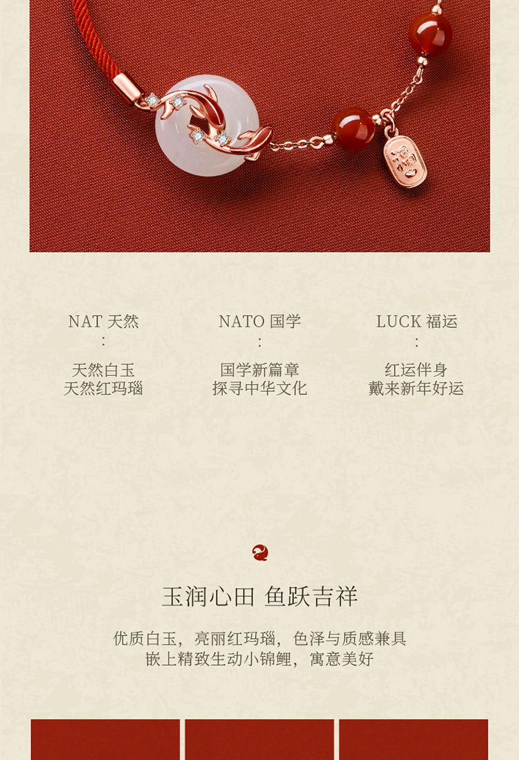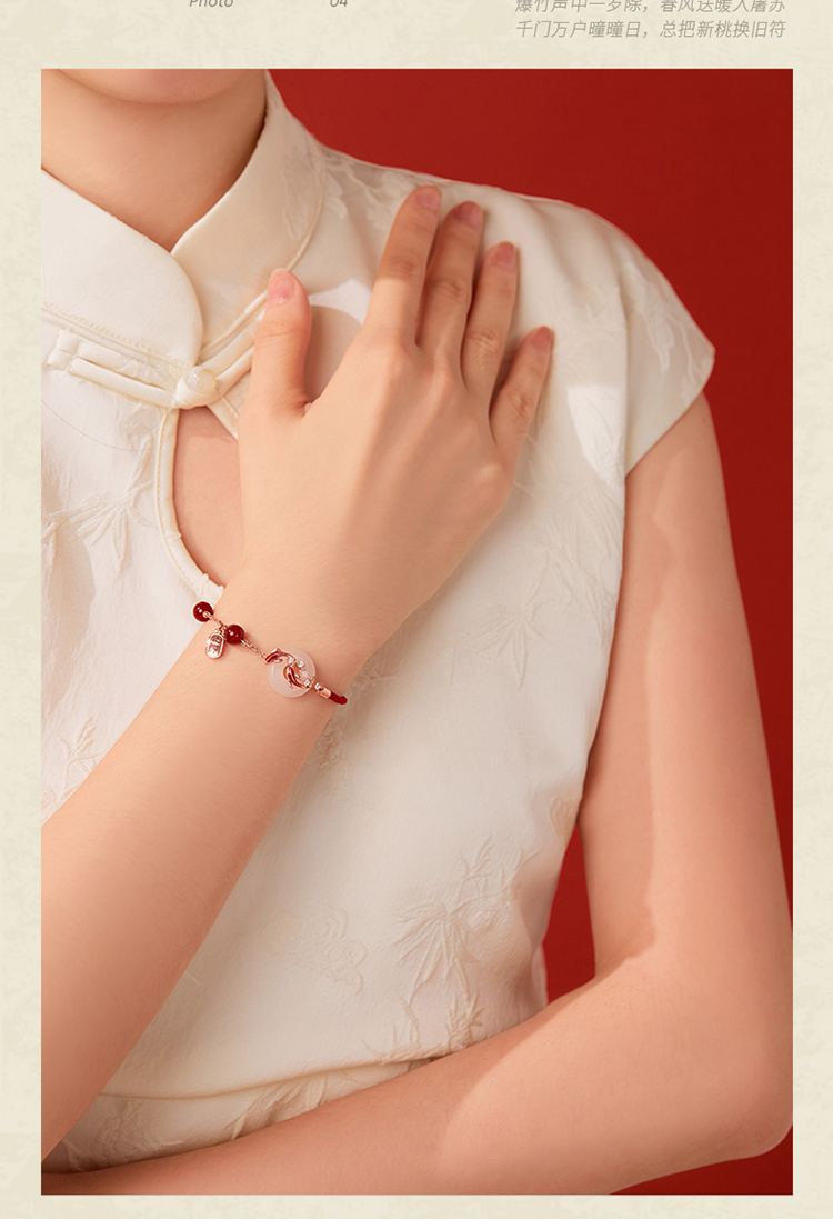 ZEGL真柳设计师白玉平安扣红绳925银手链女款精致红玛瑙手绳手饰