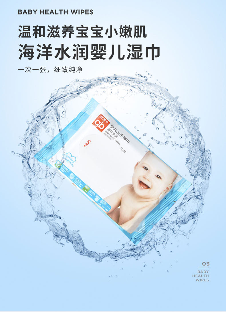好孩子海洋水润婴儿卫生湿巾10片装10包JPY带授权招加盟代理