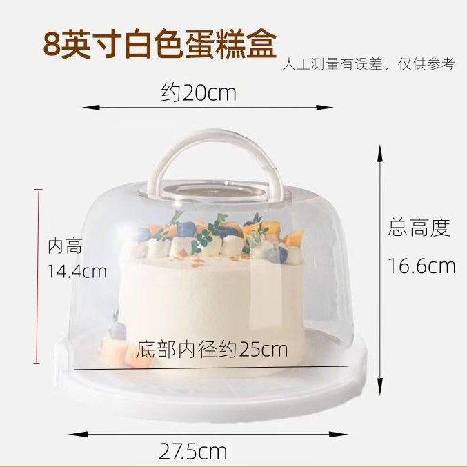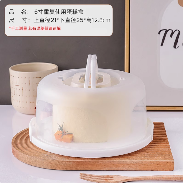 6寸/8寸/10寸 可重复使用蛋糕盒 白色/粉色手柄蛋糕盒子 便携手提蛋糕打包盒