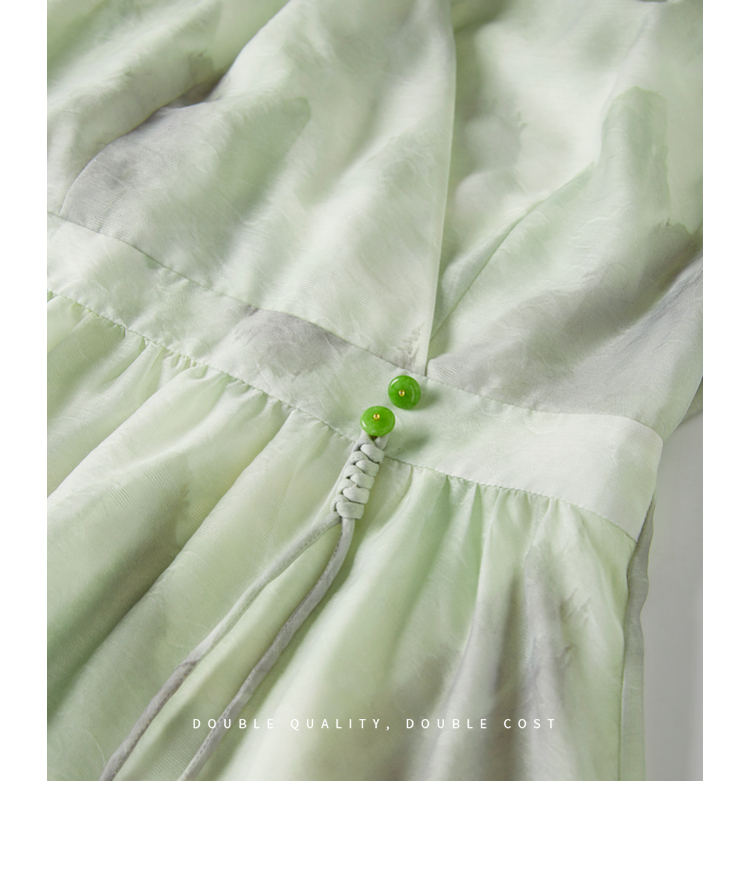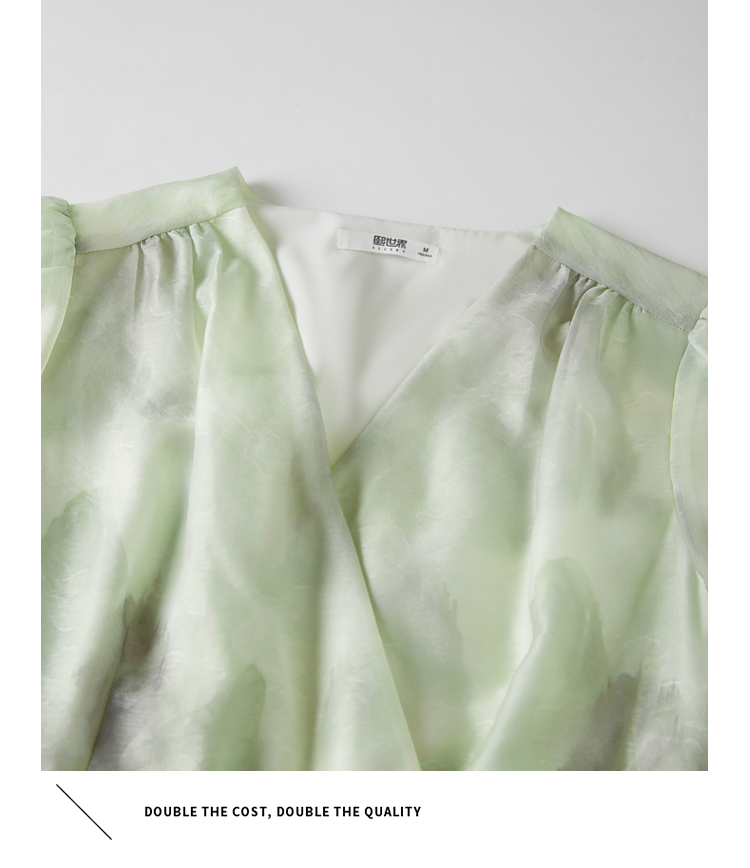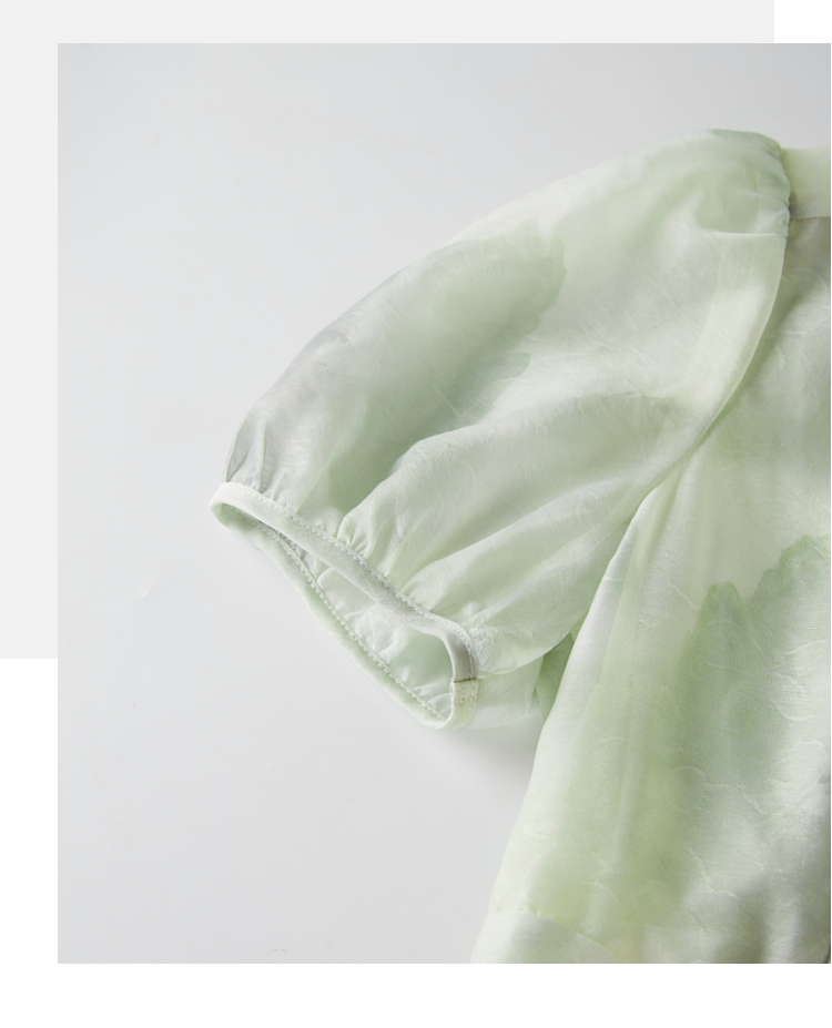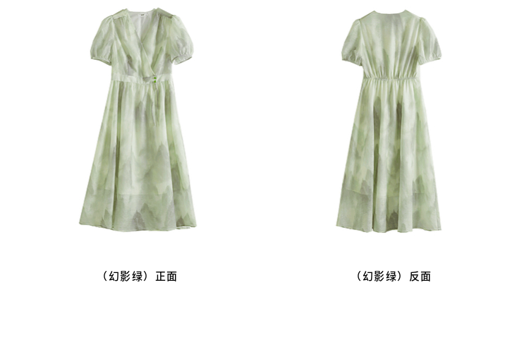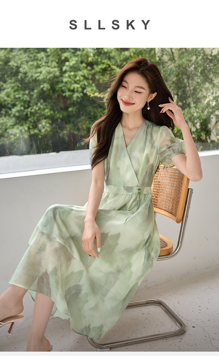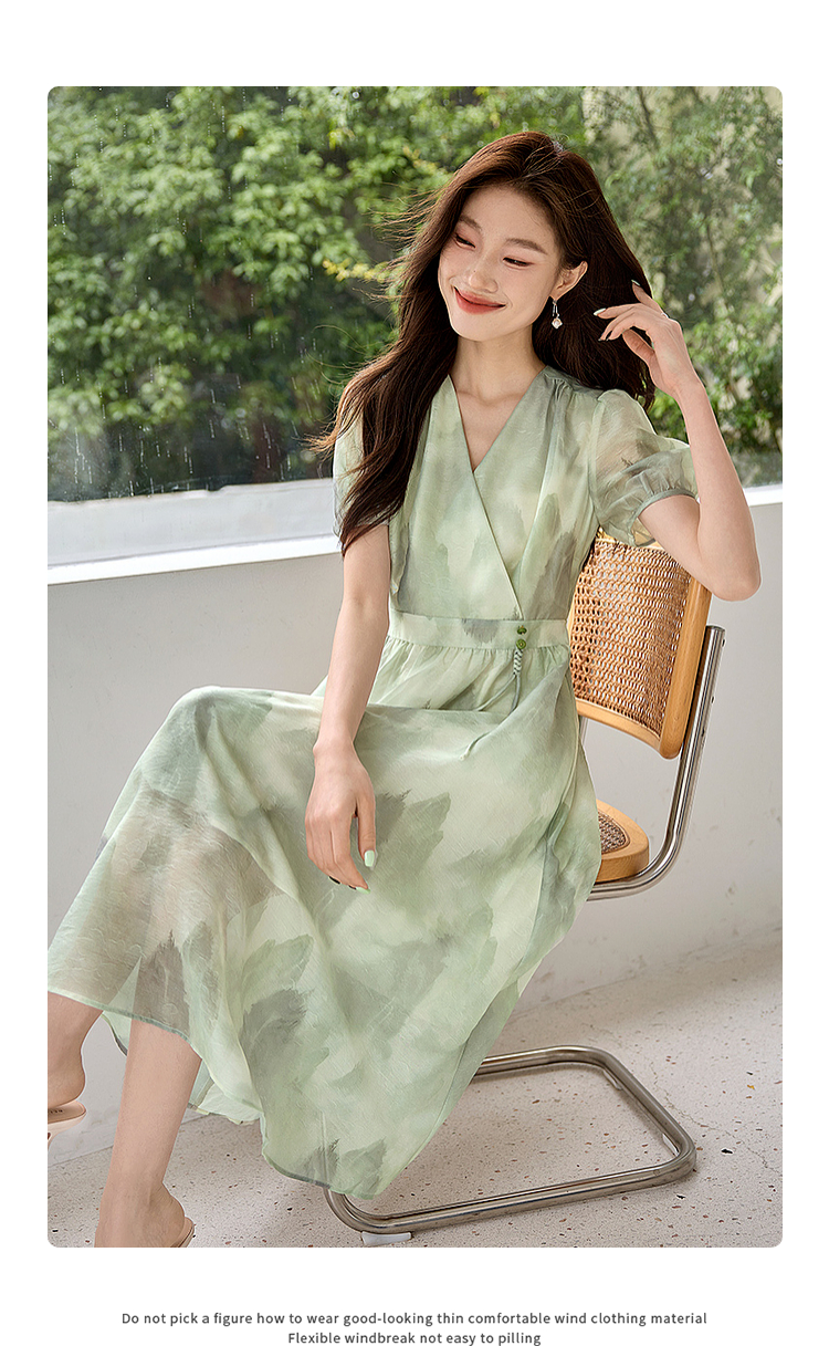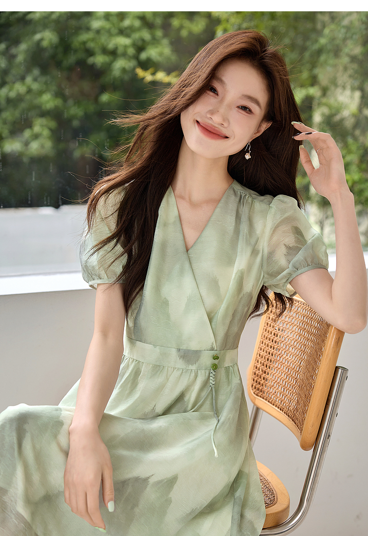 【专属特价】熙世界《远山青黛》水墨画V领连衣裙夏季国风复古印花雪纺裙子