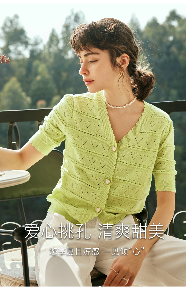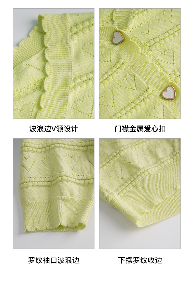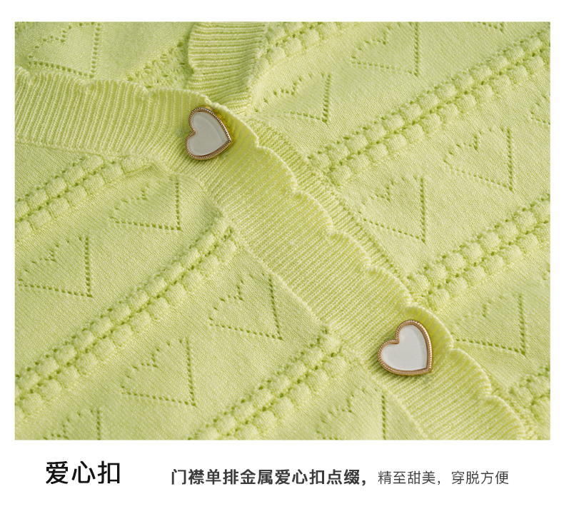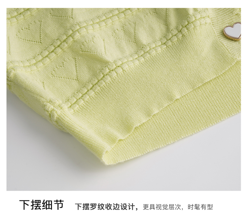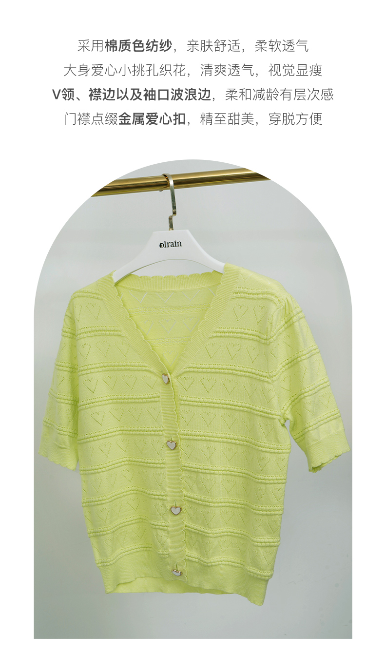 OLrain欧芮儿法式浅绿色针织开衫女夏季2023新款修身爱心提花上衣