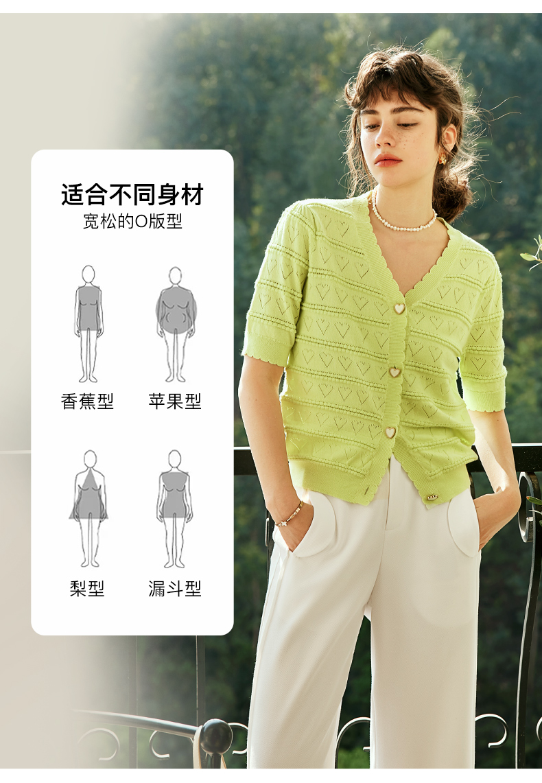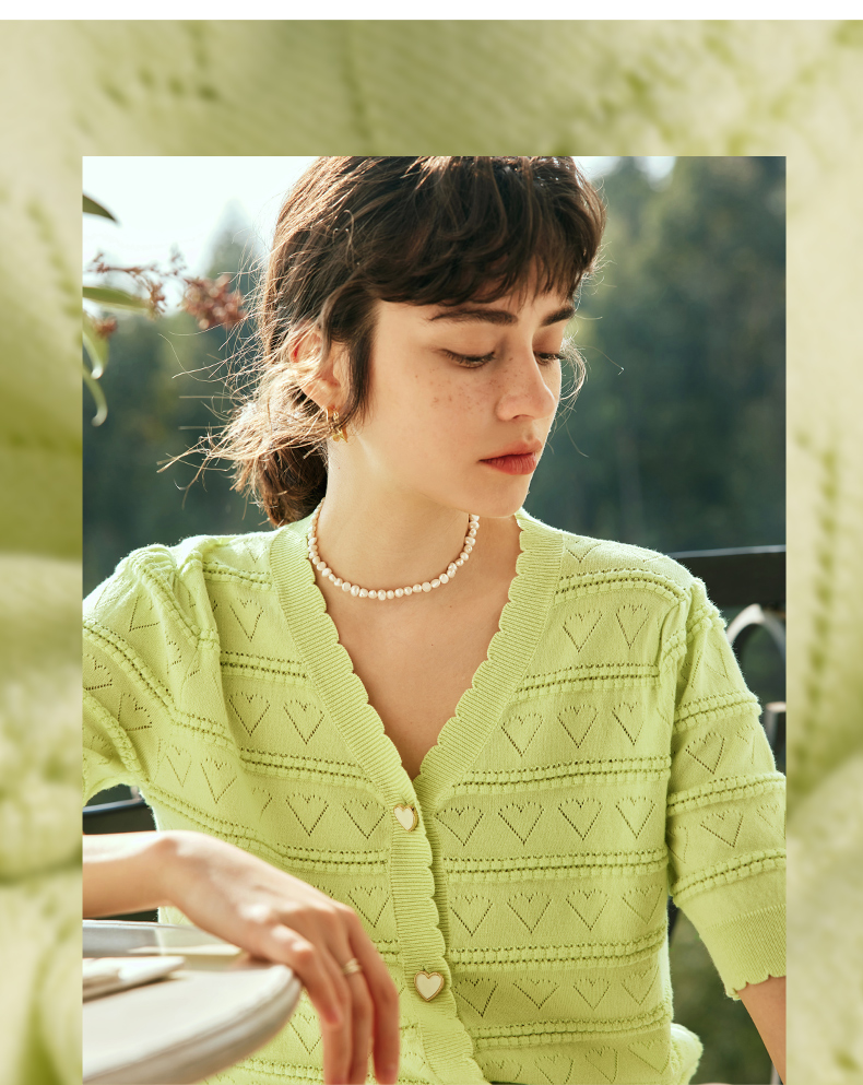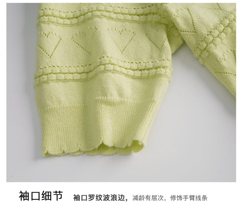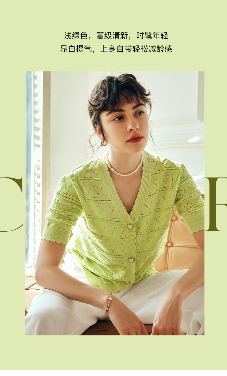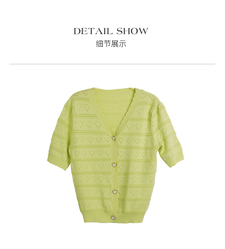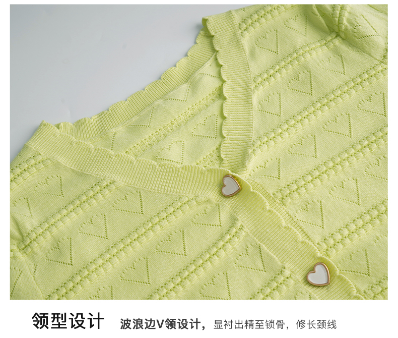 OLrain欧芮儿法式浅绿色针织开衫女夏季2023新款修身爱心提花上衣