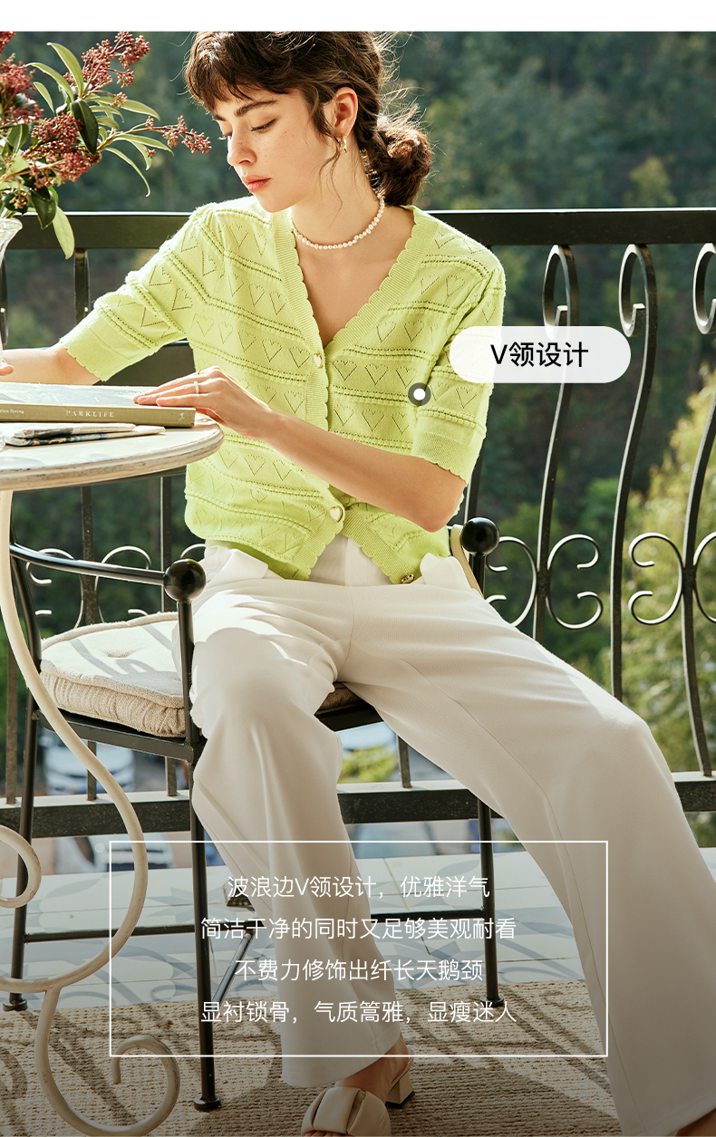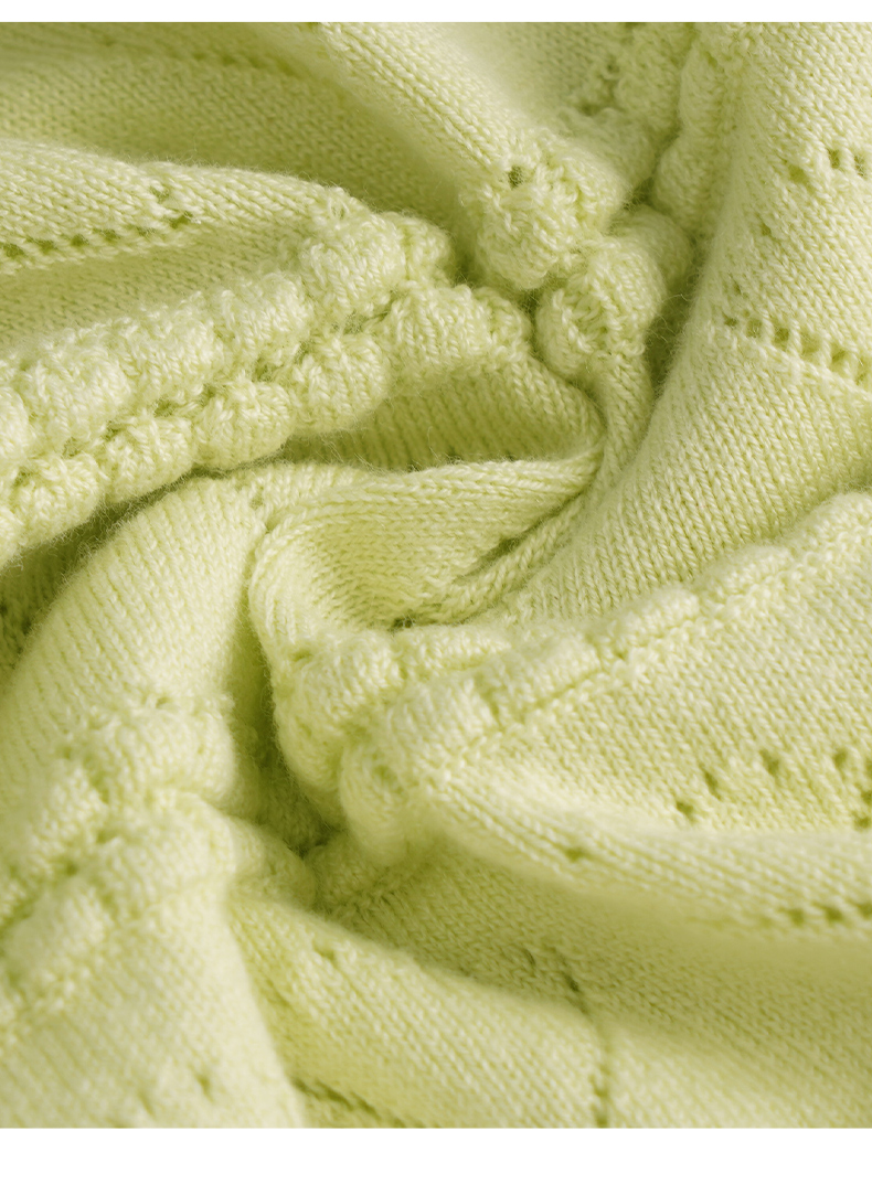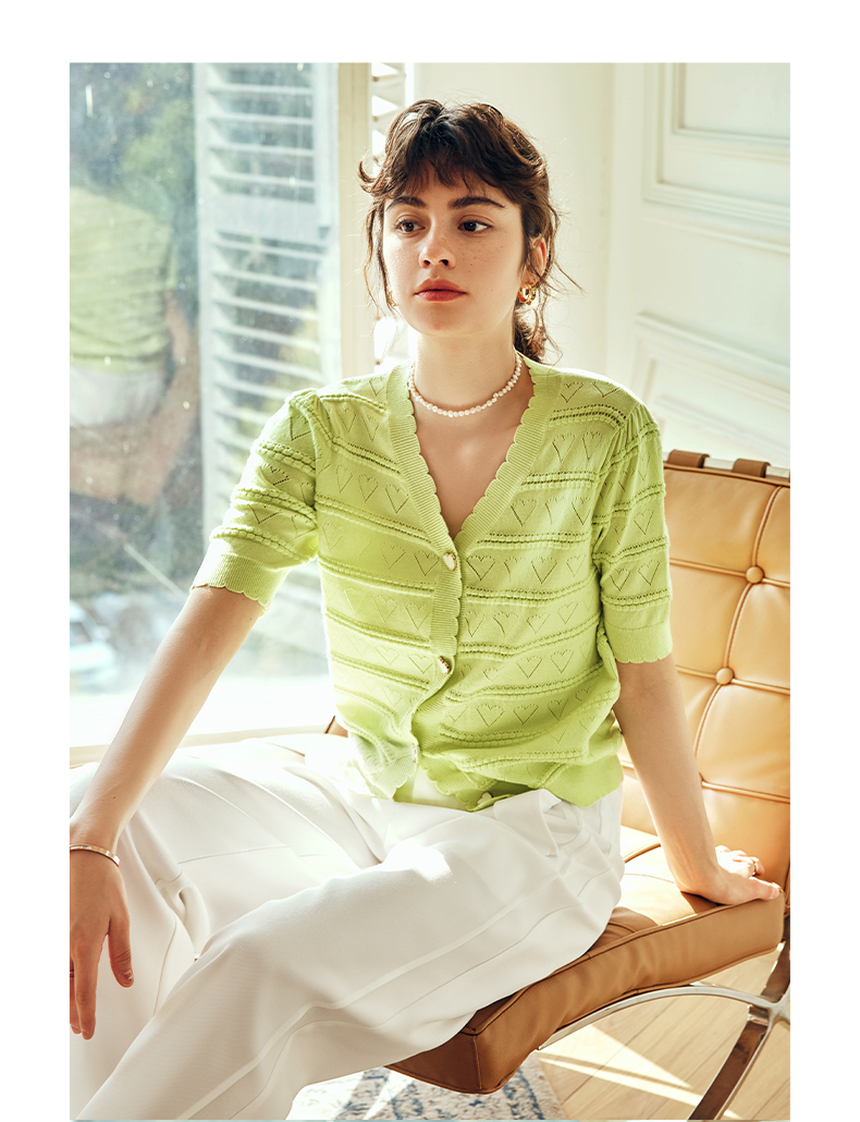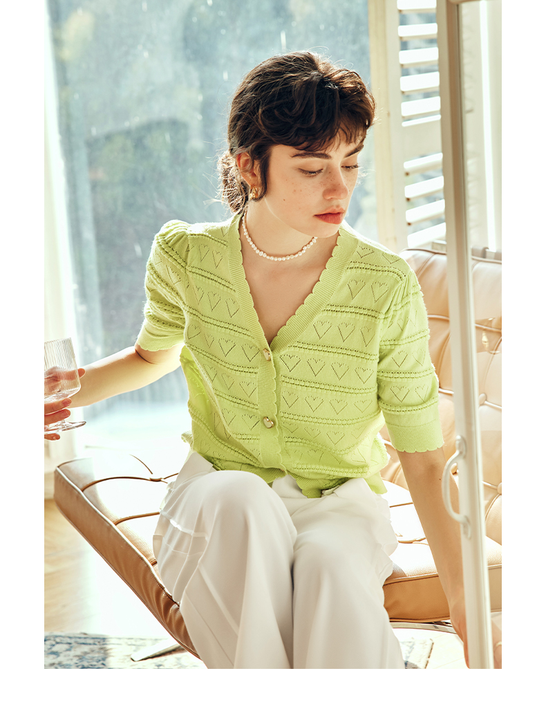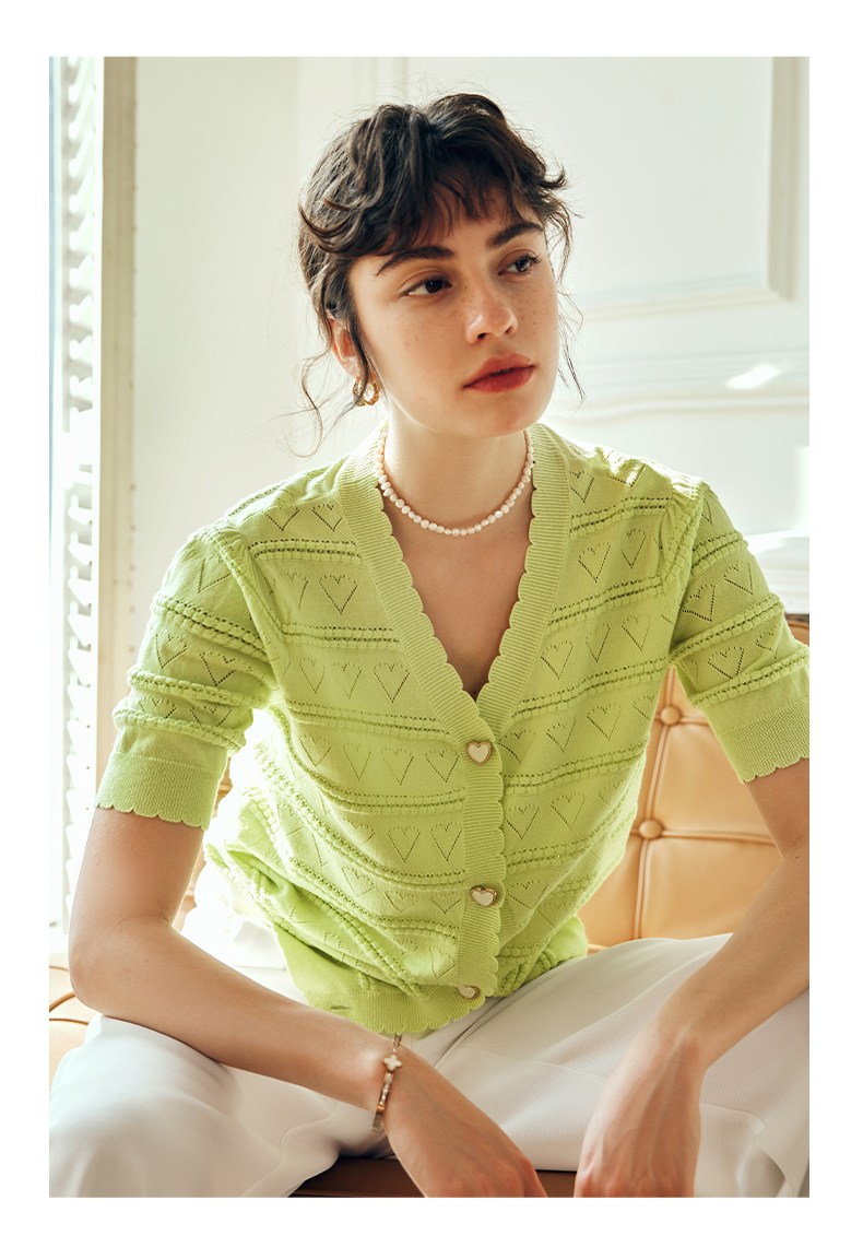 OLrain欧芮儿法式浅绿色针织开衫女夏季2023新款修身爱心提花上衣
