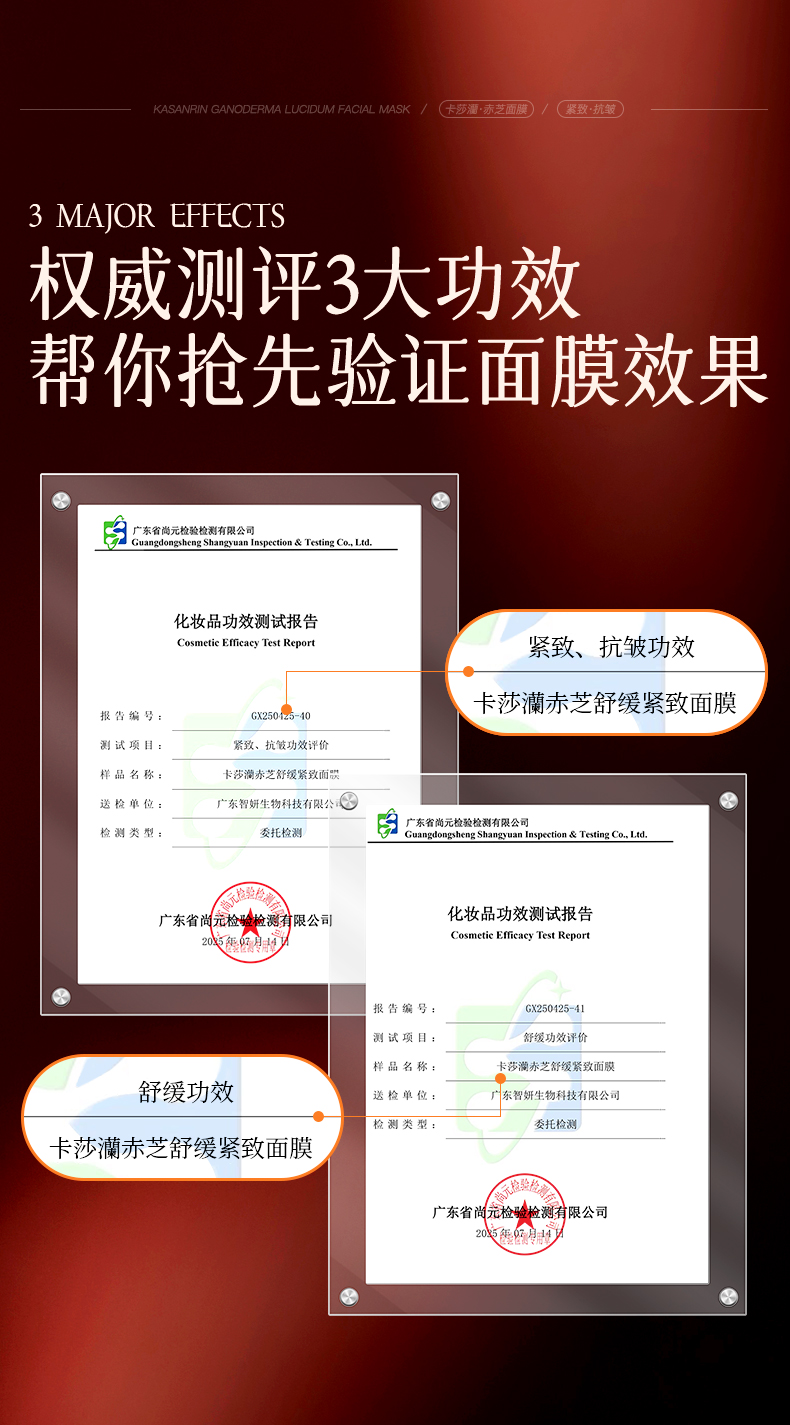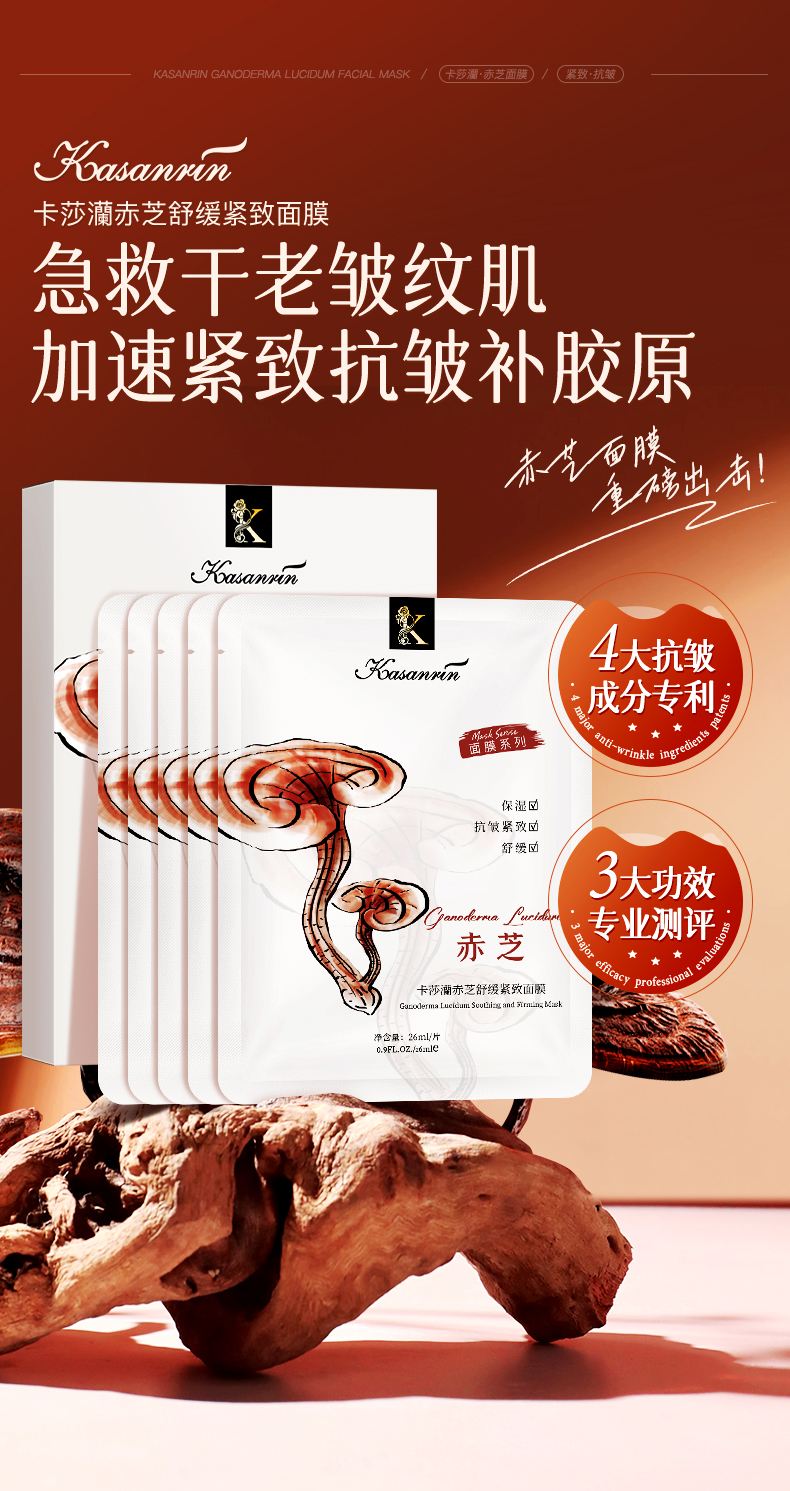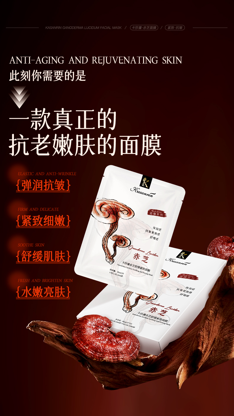 【数量拍5组到手199元/50片,拍1组发10片】卡莎灡赤芝舒缓紧致面膜补水嫩肤,淡化细纹,紧致肌肤,舒缓水润。