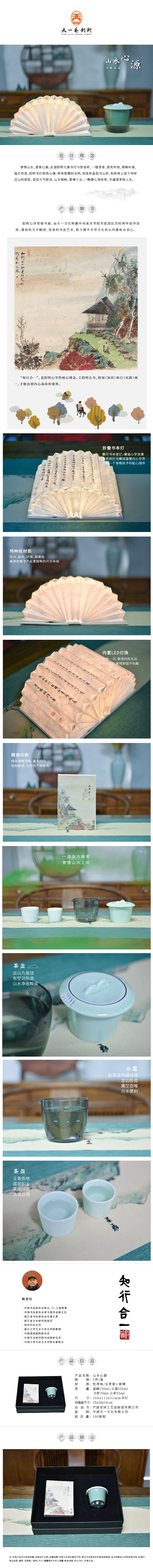 羽诗制造出品 山水心源套装阳明折叠书本灯青瓷茶具文创礼盒