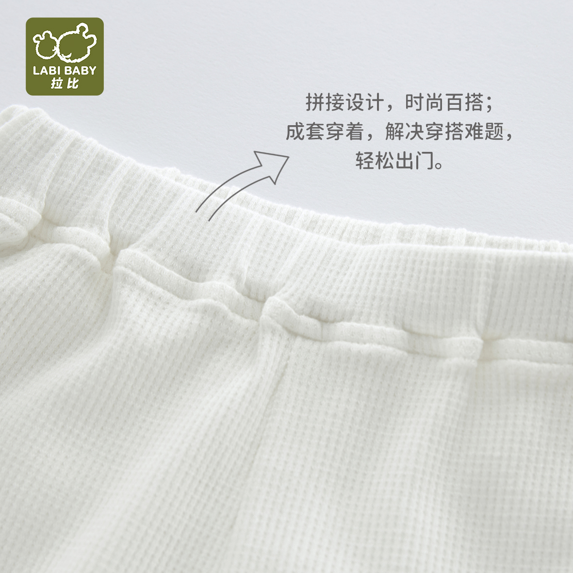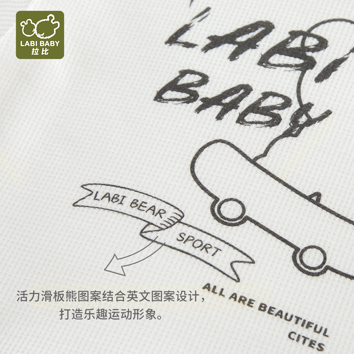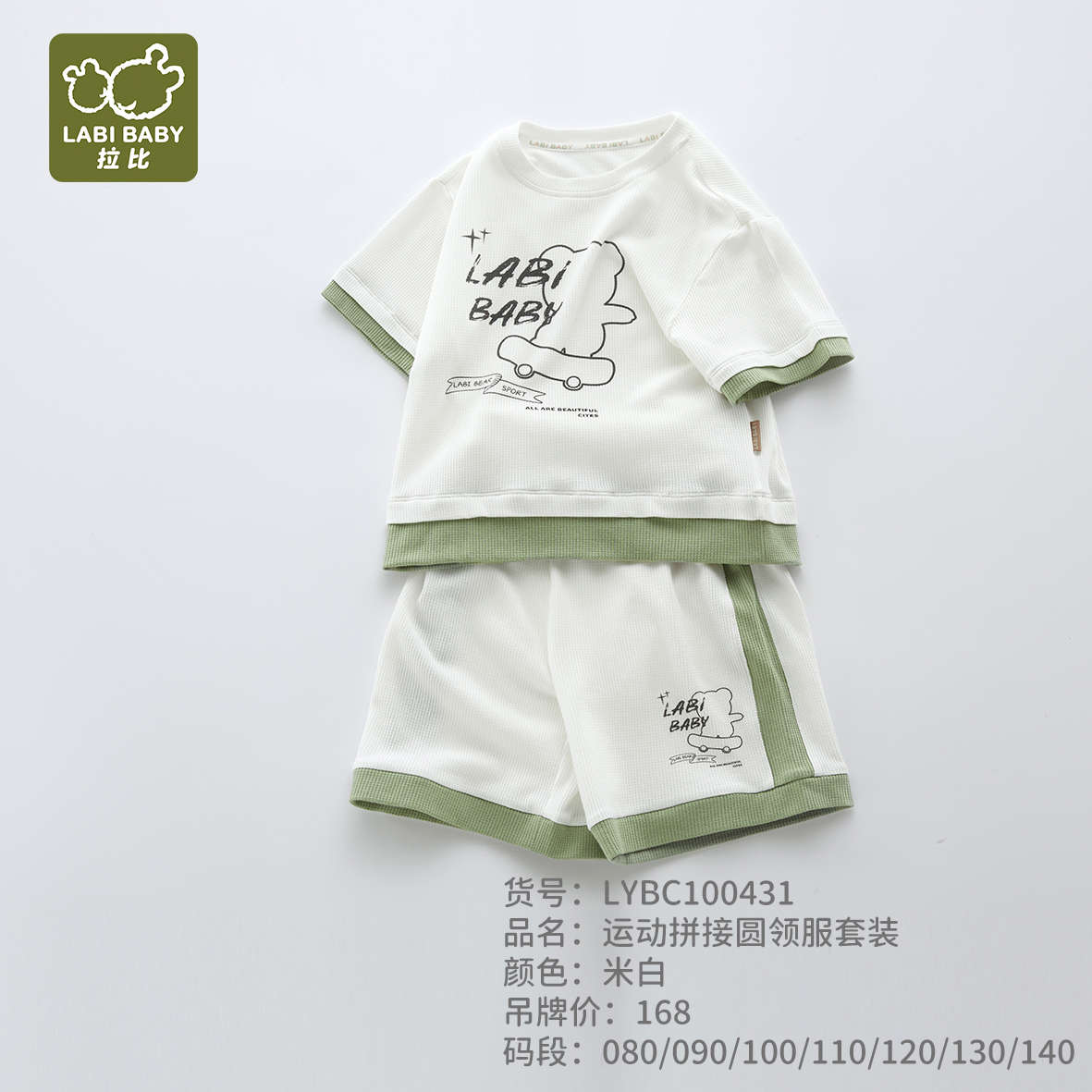 拉比-童衣类(夏)I5运动拼接圆 领服套装米白080