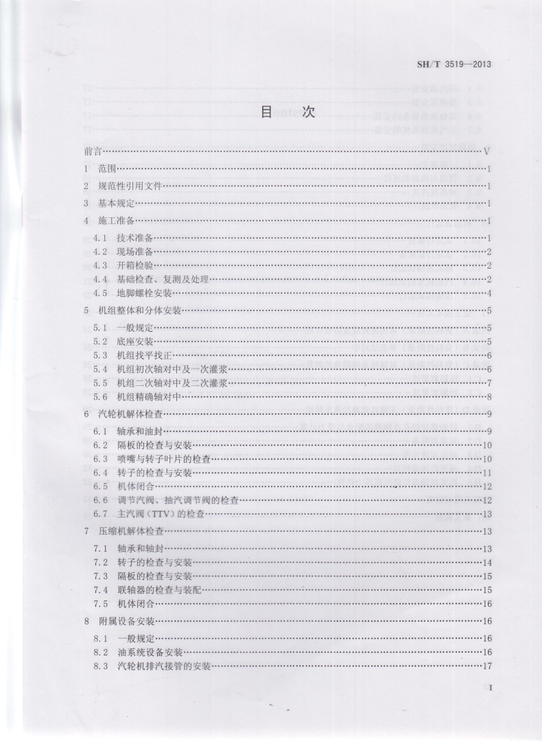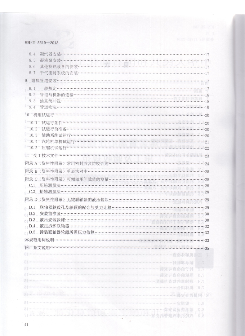 书名:SH/T 3519-2013 乙烯装置离心压缩机组施工及验收规范