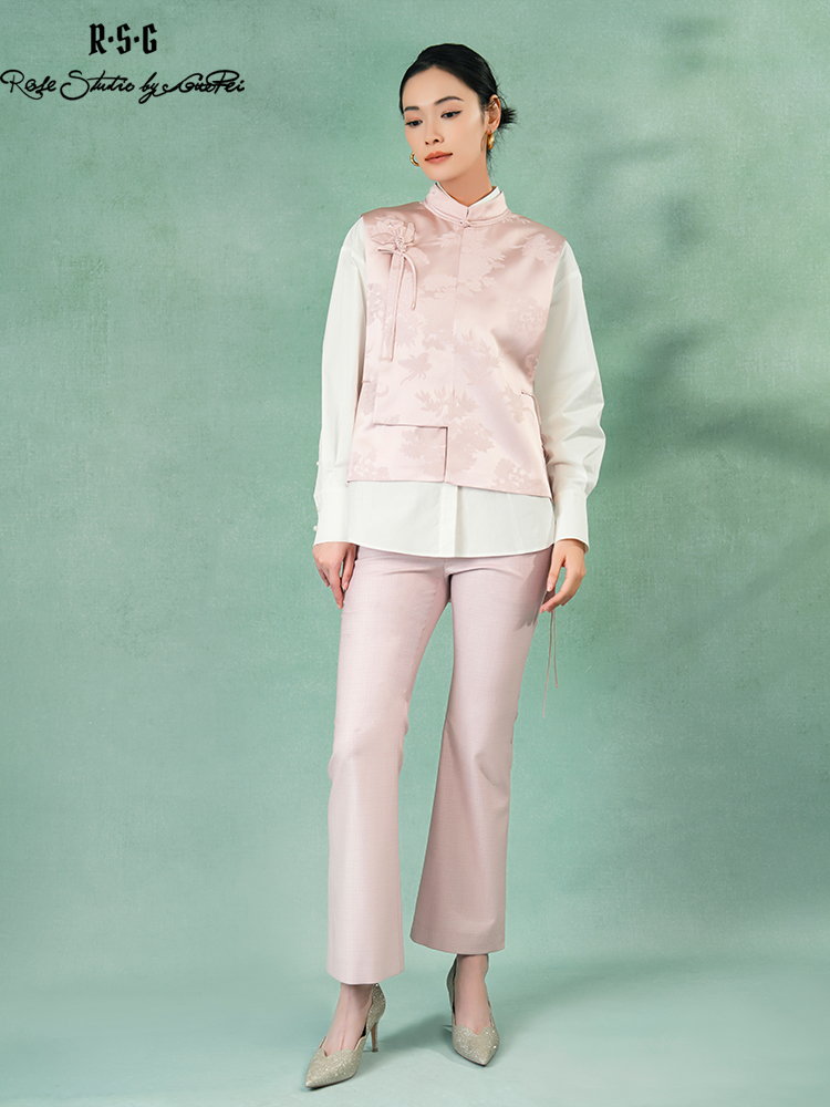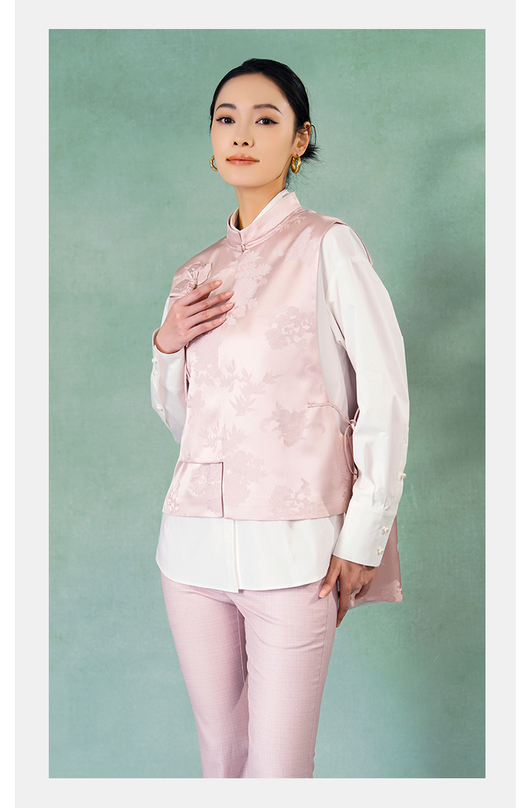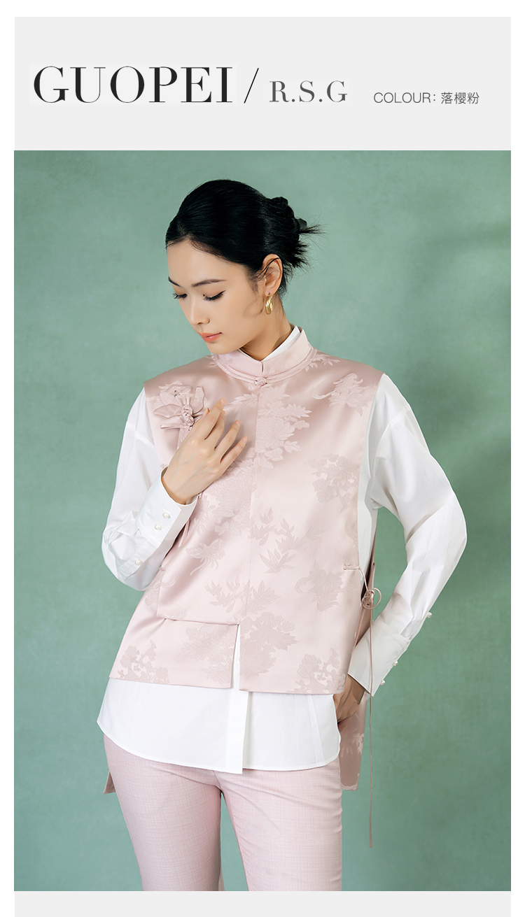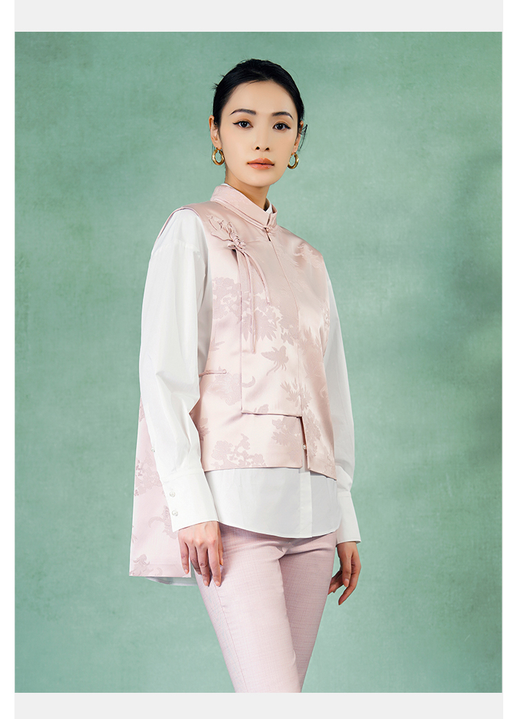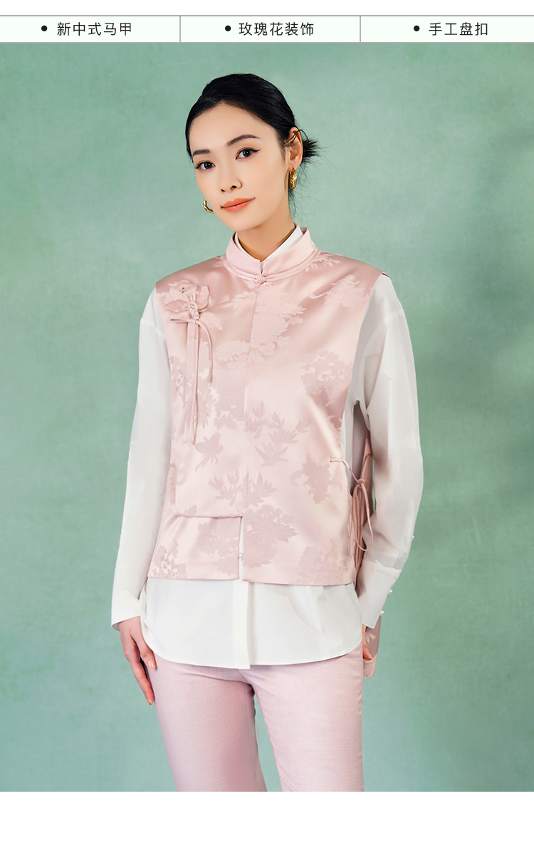 郭培成衣品牌精品系列新中式斜襟玫瑰花盘扣马甲