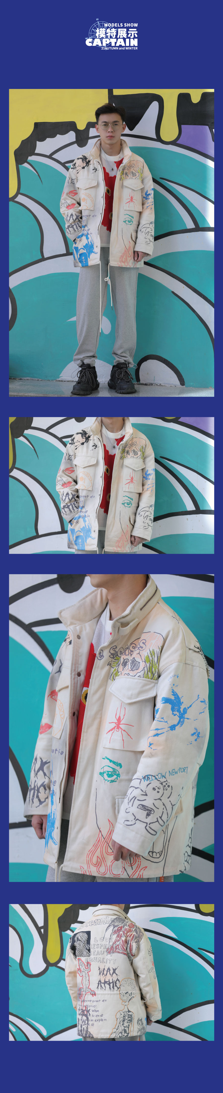 W142674208抽象趣味涂鸦挺阔羽绒服
