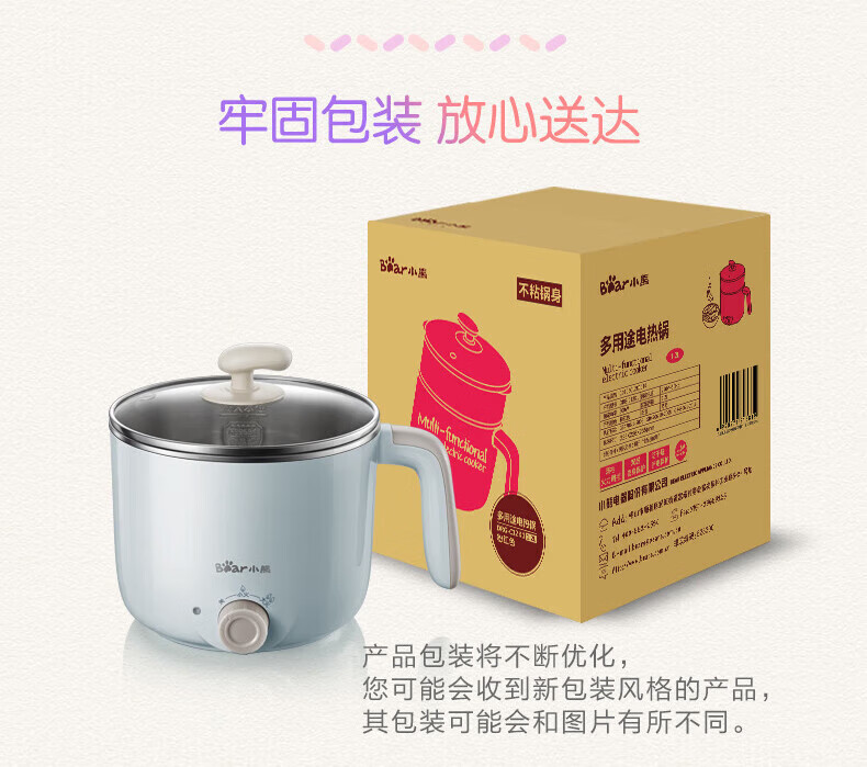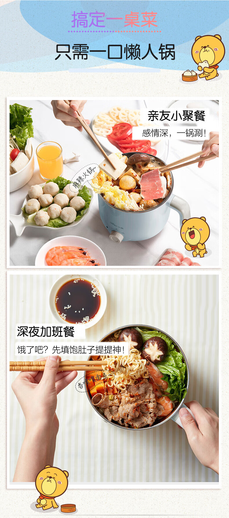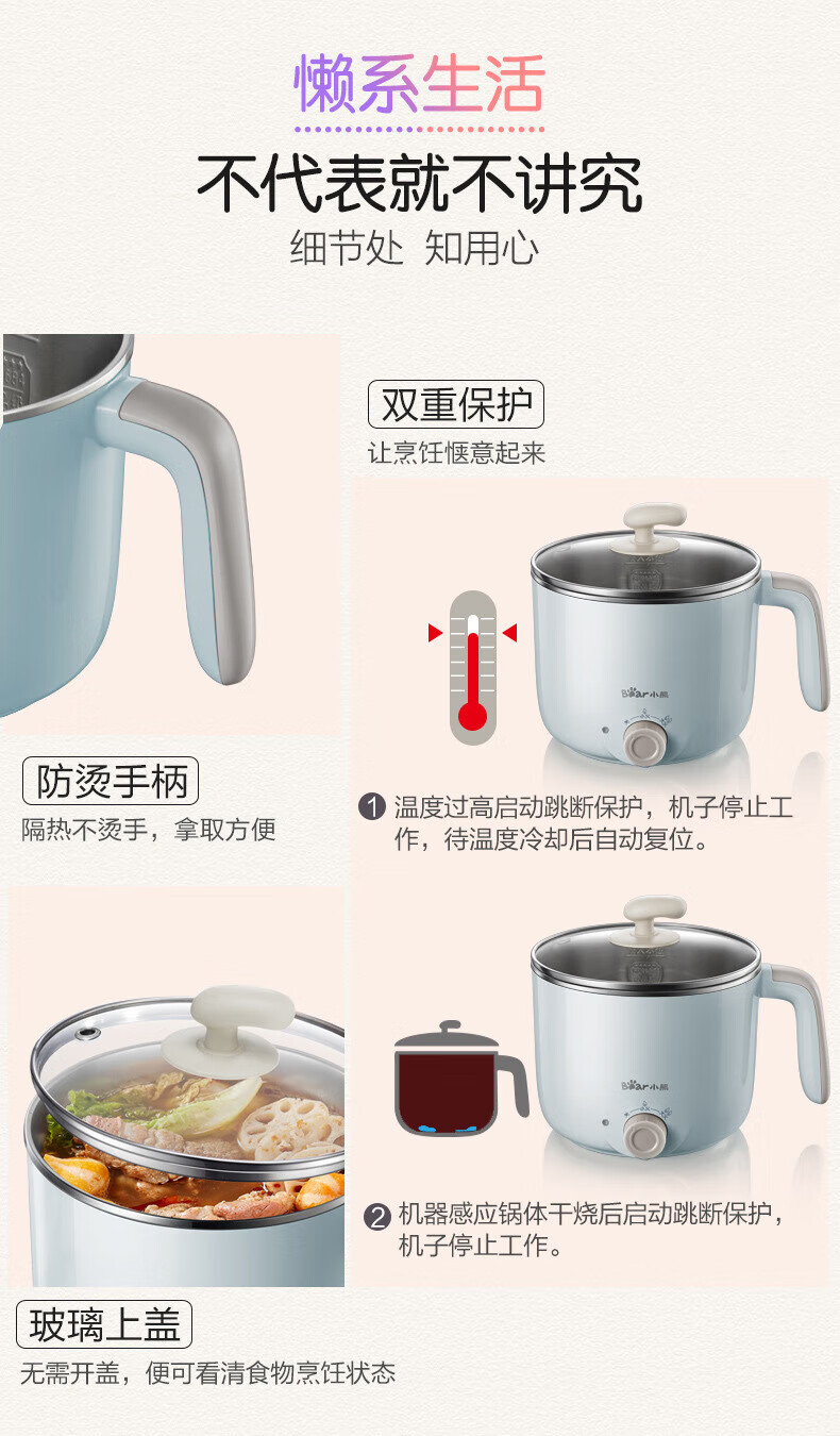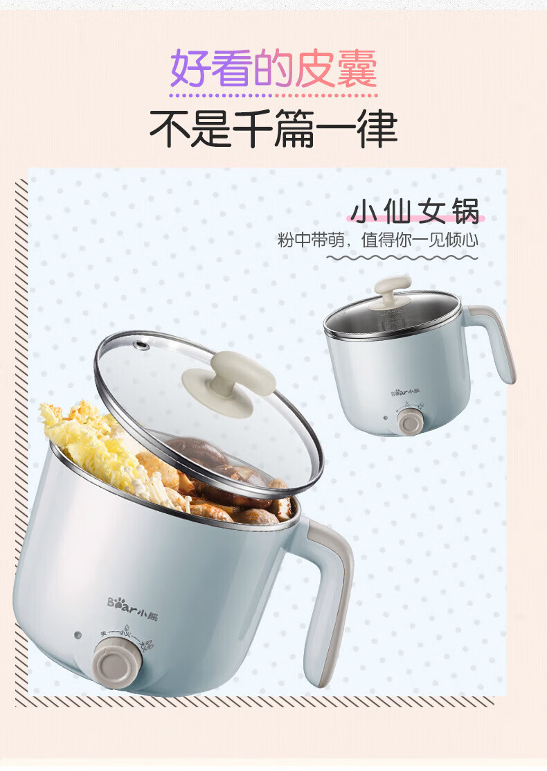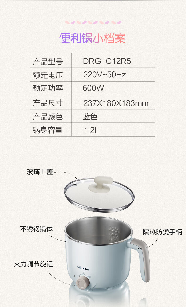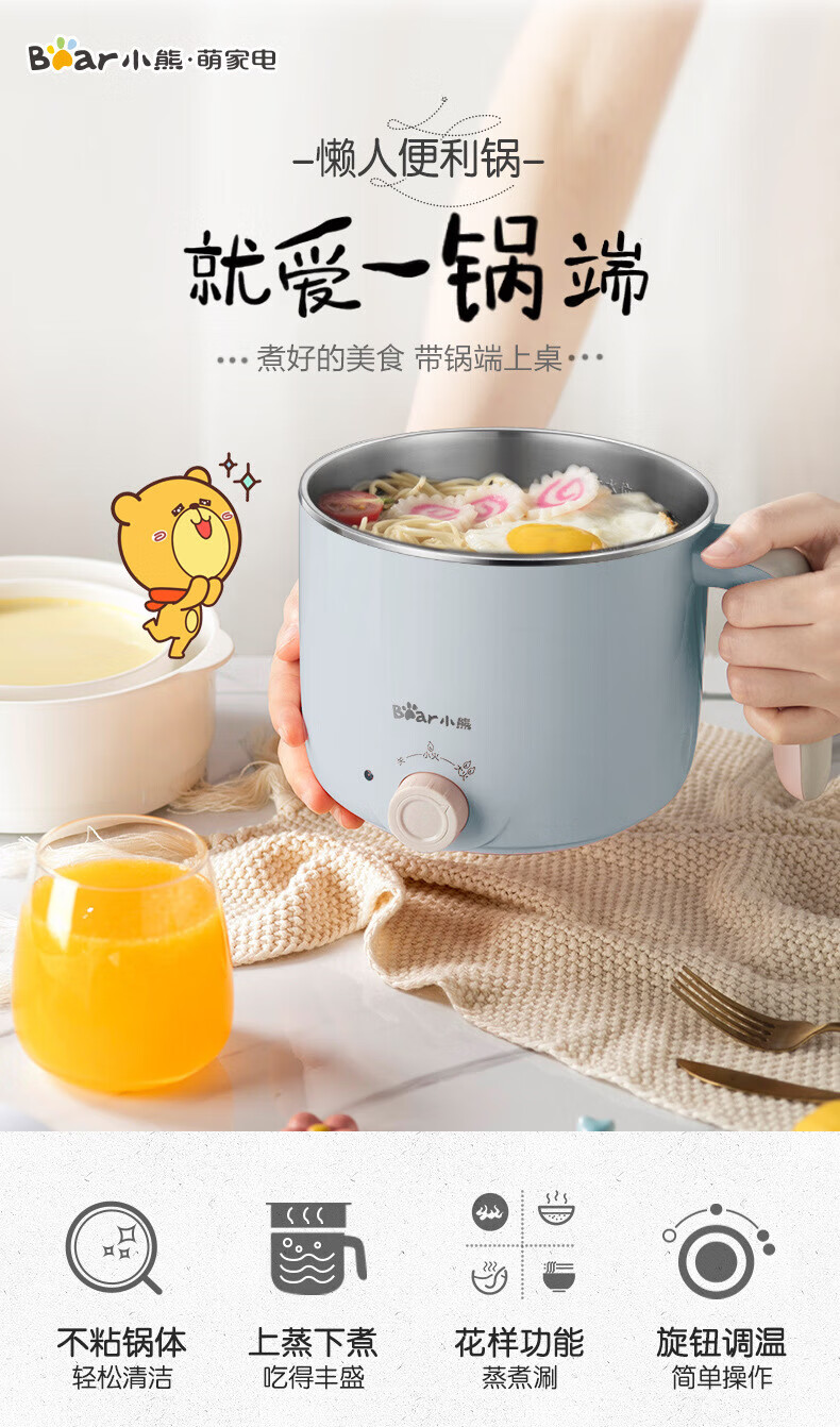 电煮锅小电锅电火锅多功能迷你电热锅宿舍锅 1.2L大容量不粘锅 蓝色电煮锅 DRG-C12R5不带蒸笼