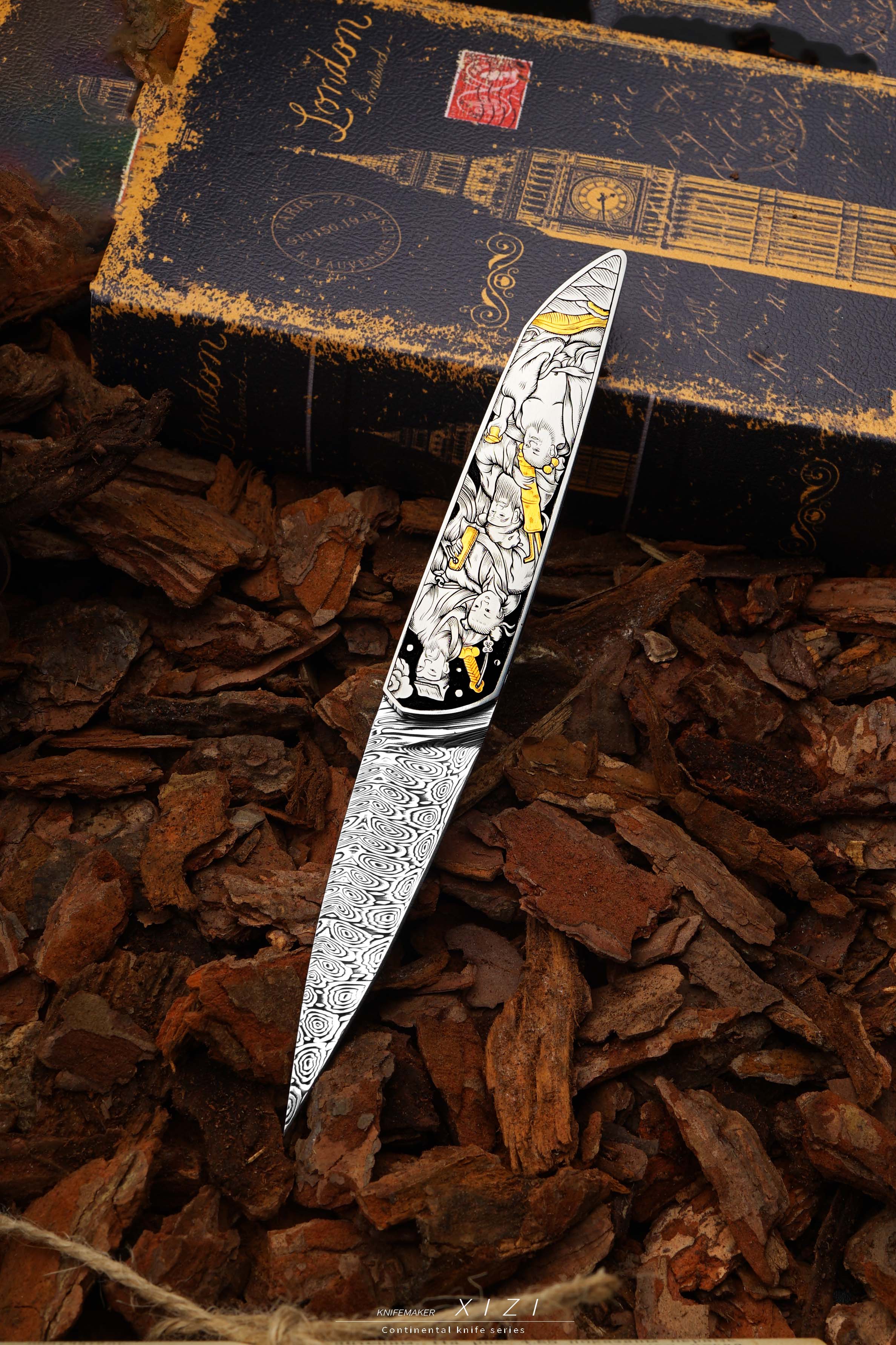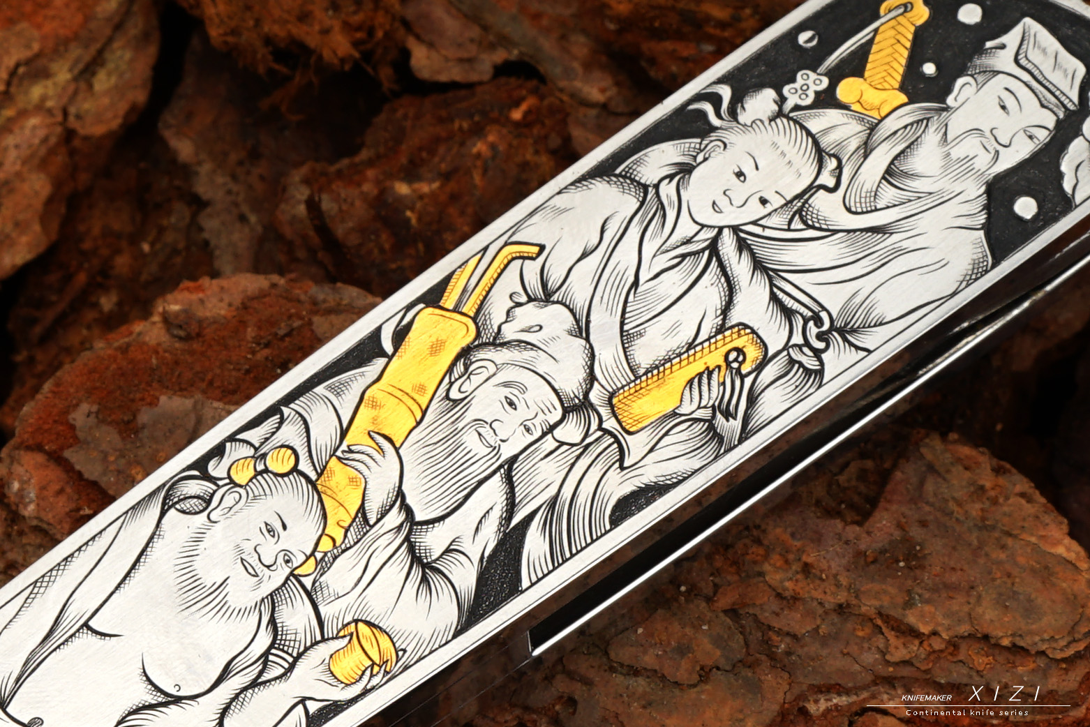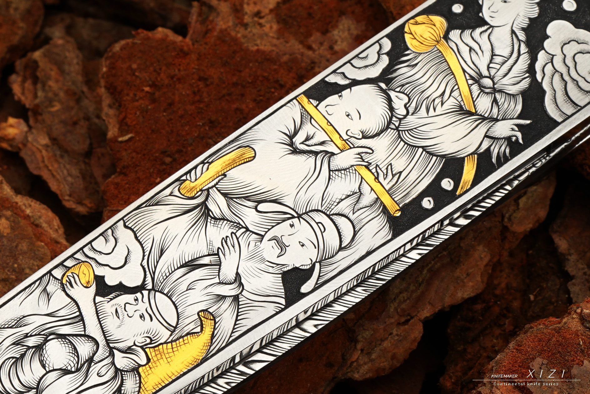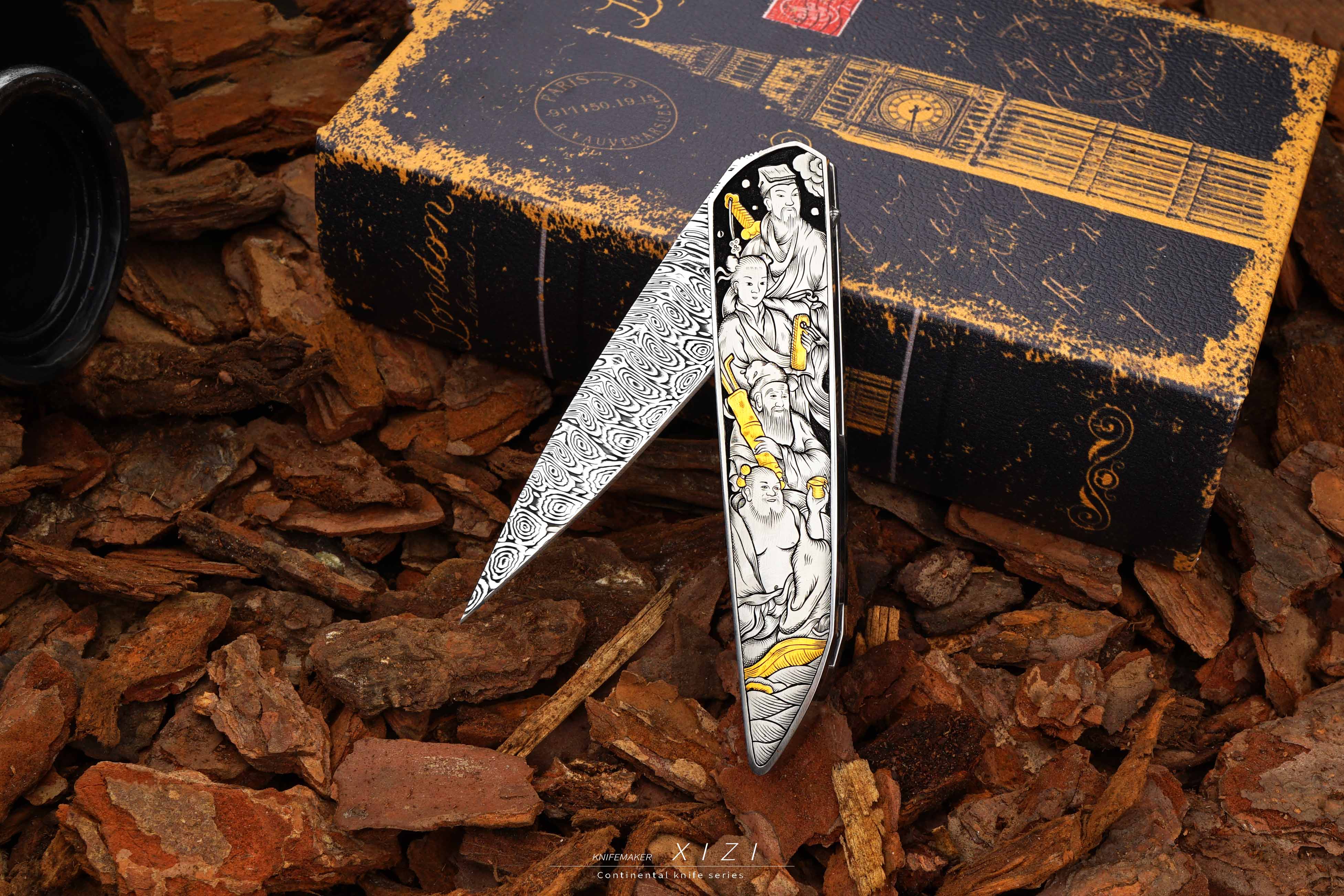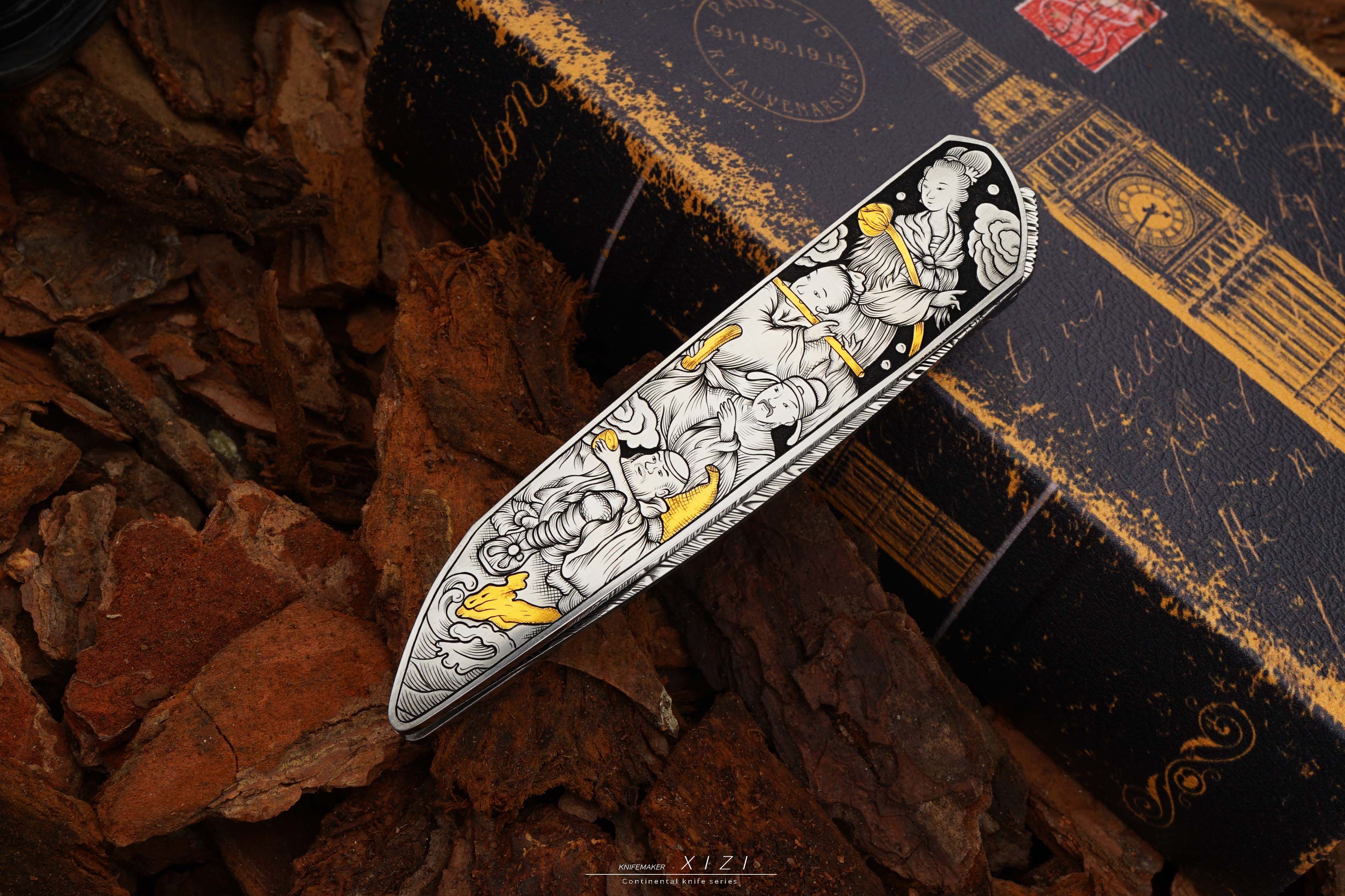 孤品特惠一下,八仙过海主题雕刻小折,欧洲进口的大马,手工在显微镜下雕刻,别出心裁的把每个人的兵器镶嵌成24k真金