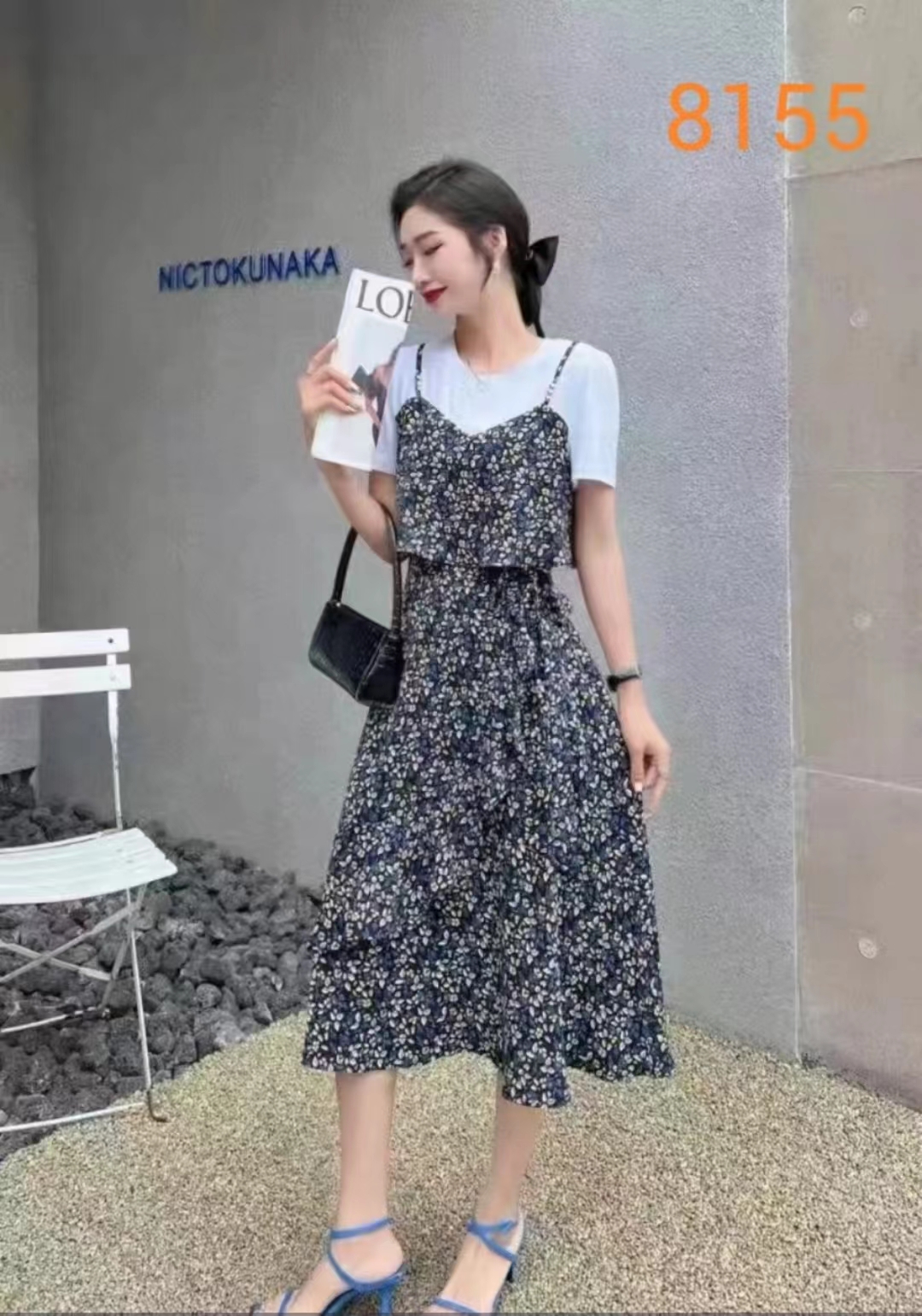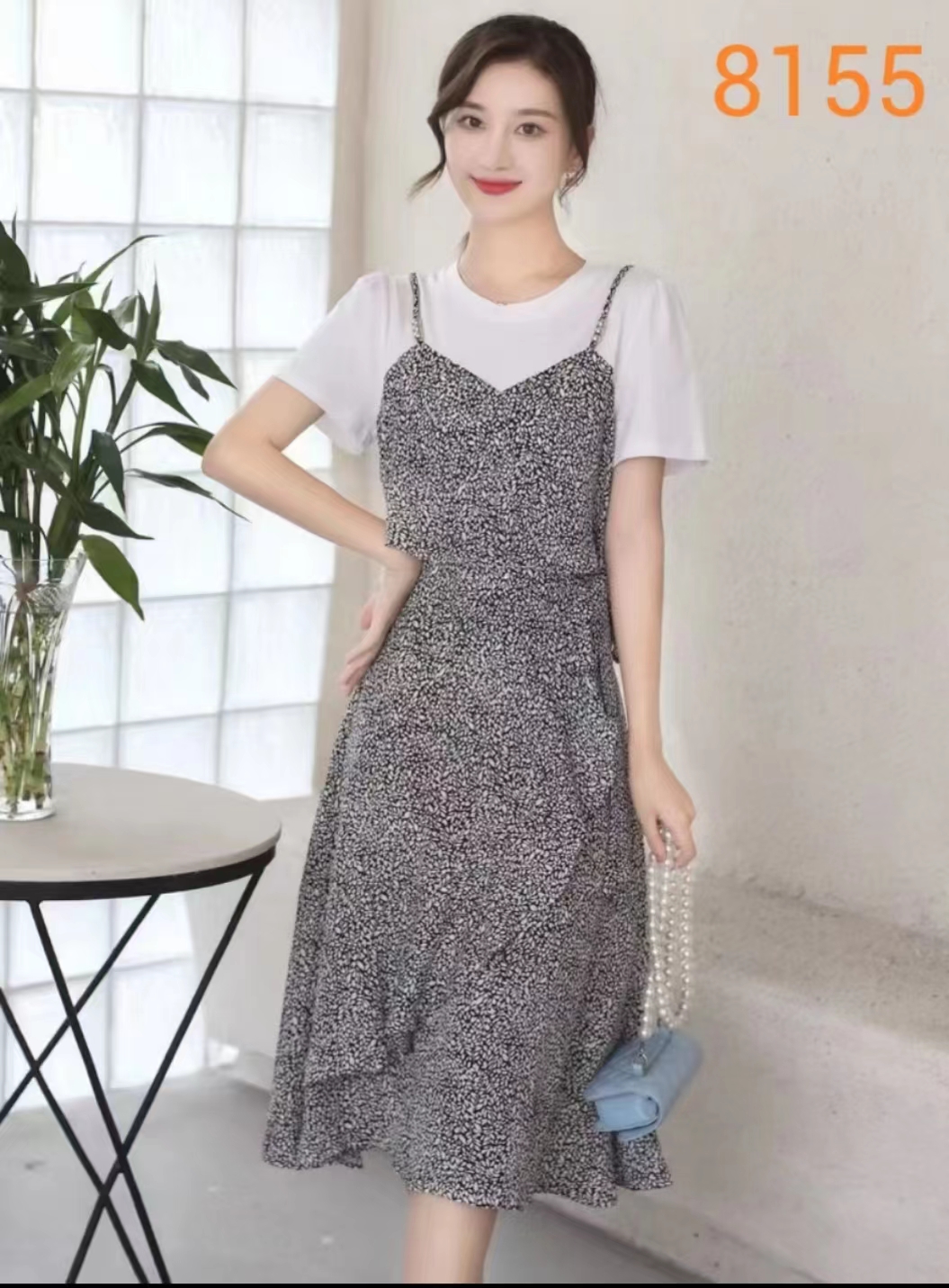 特点:分体连衣裙,时尚显瘦,雪纺面料,穿着舒适,个性飘逸