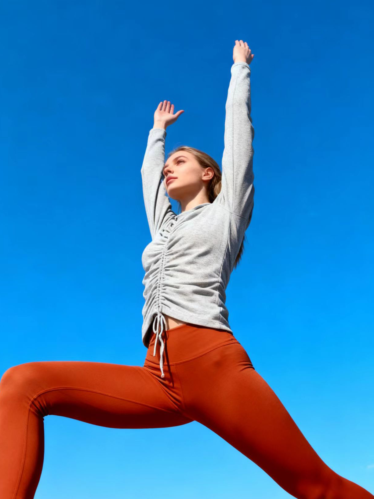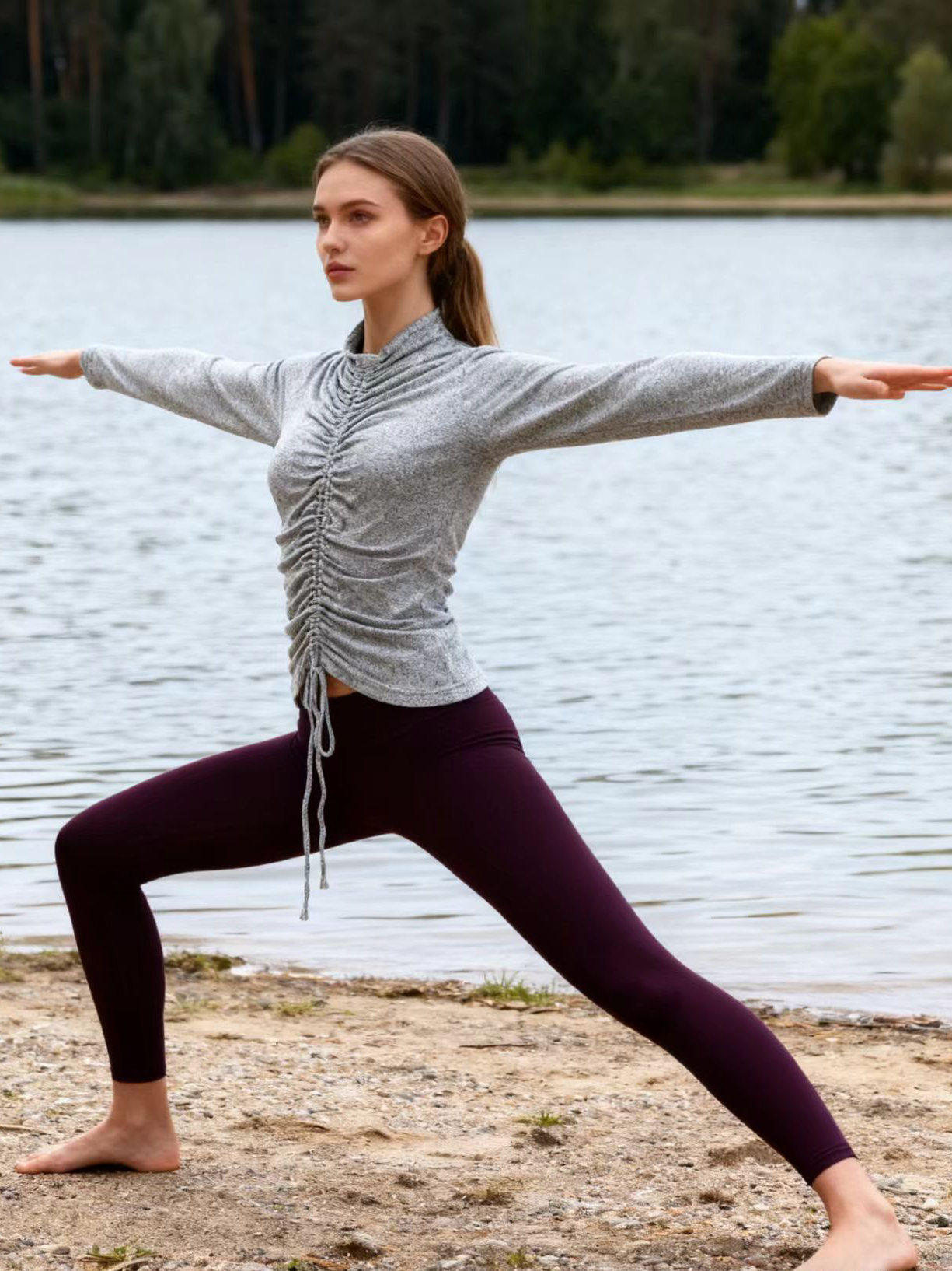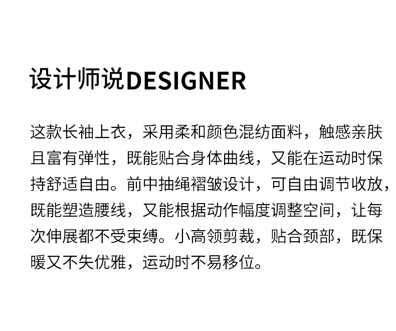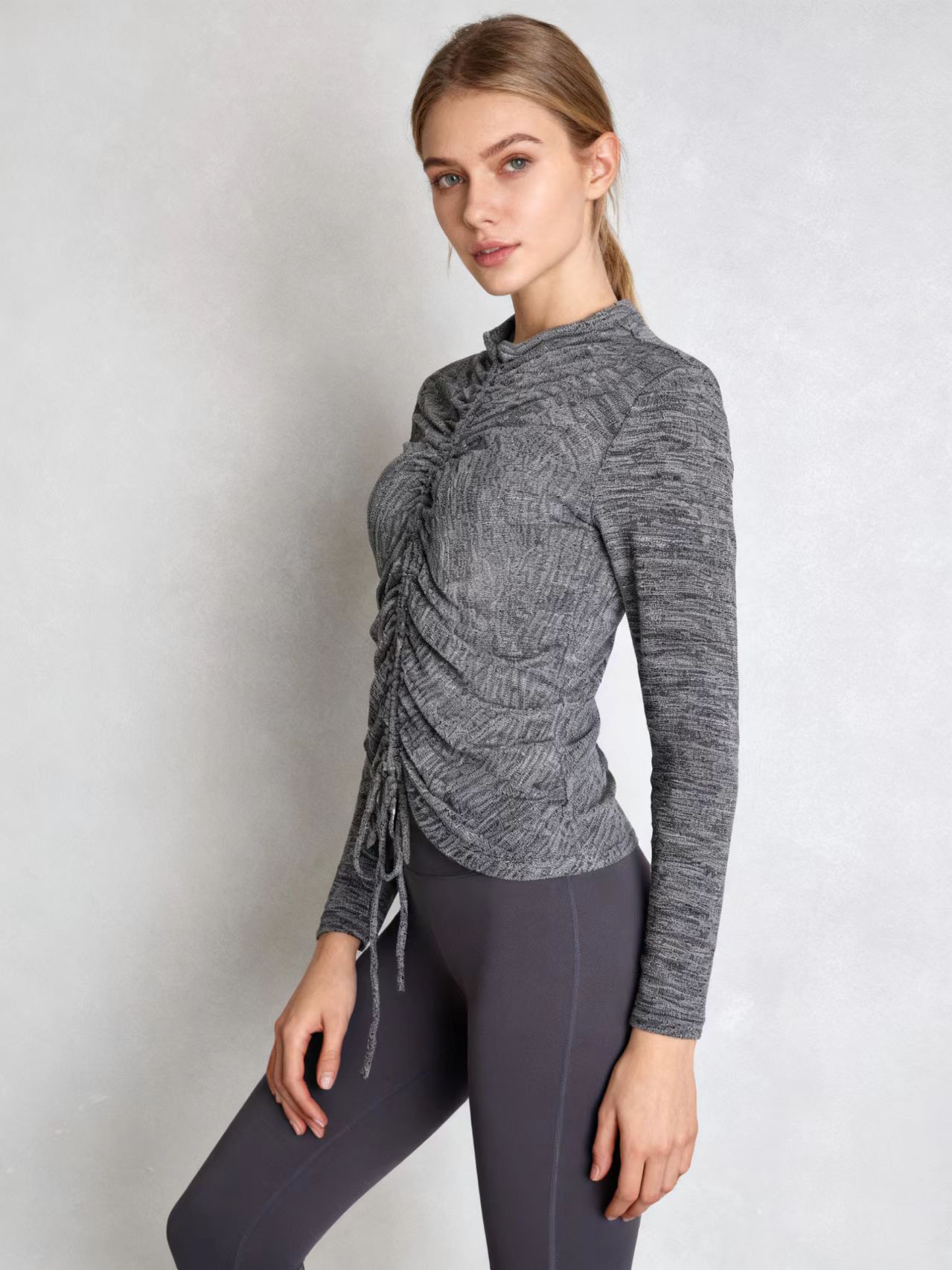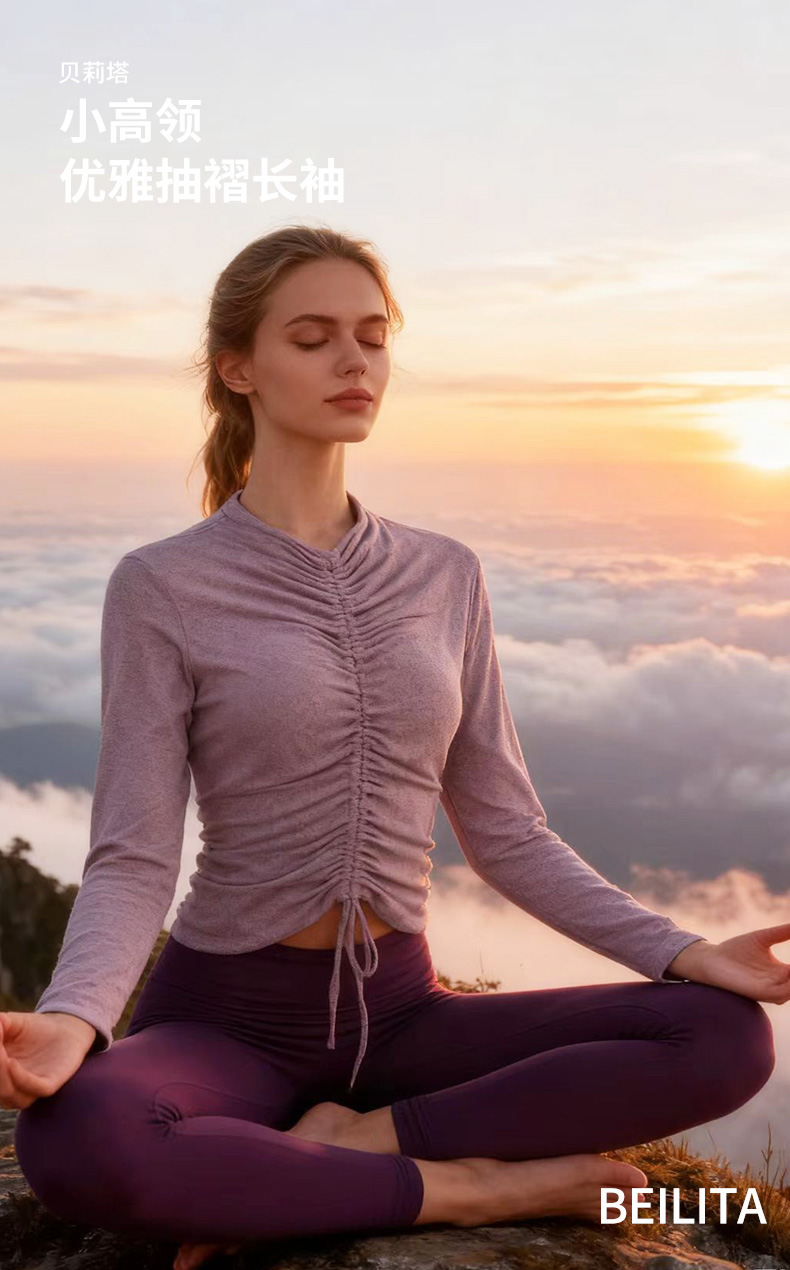 贝莉塔女士长袖小高领抽绳褶皱瑜伽服上衣BLT5220 双色纱面料