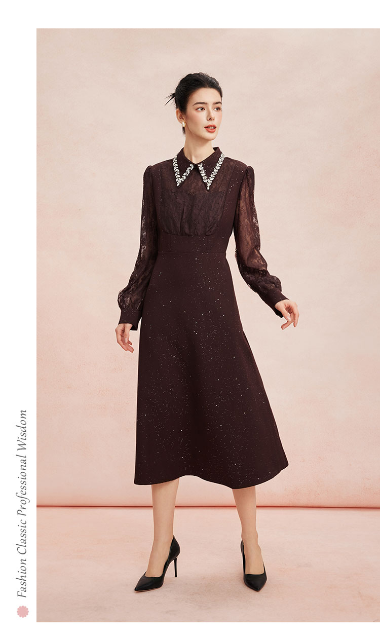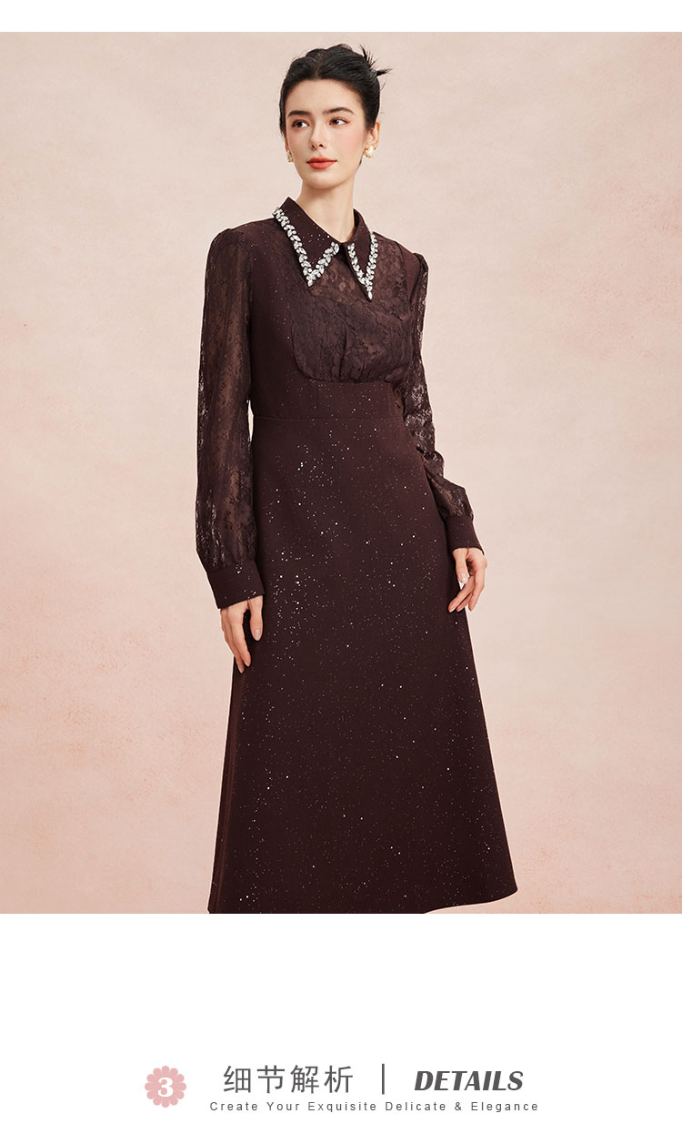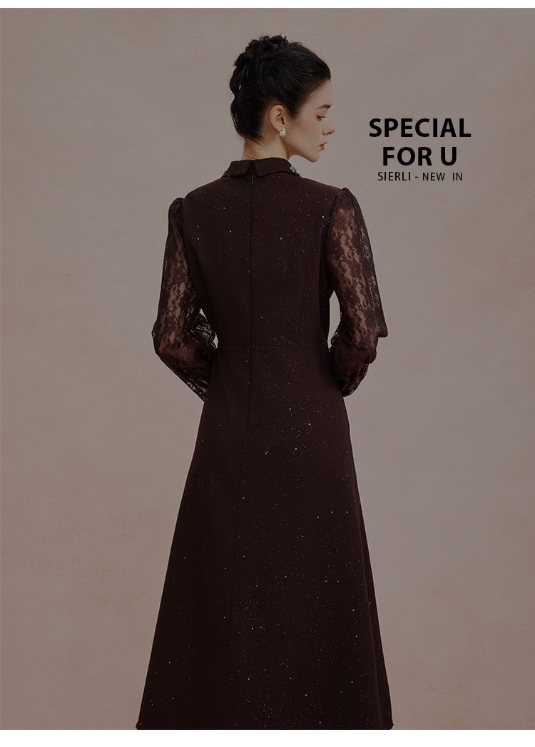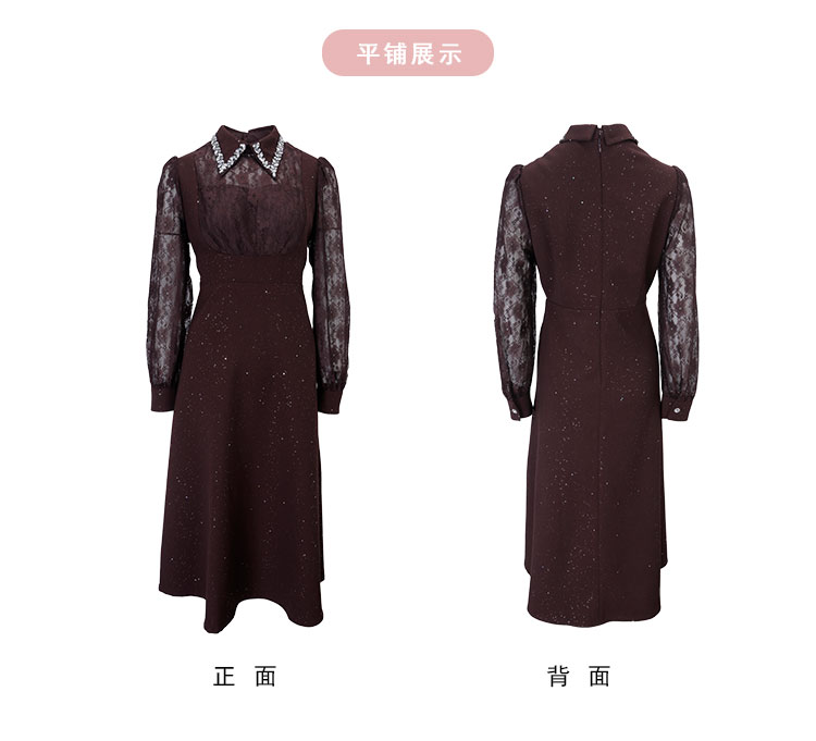 RE813斯尔丽26新款法式复古蕾丝拼接修身装饰性领子高级小礼服连衣裙