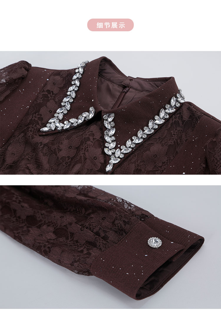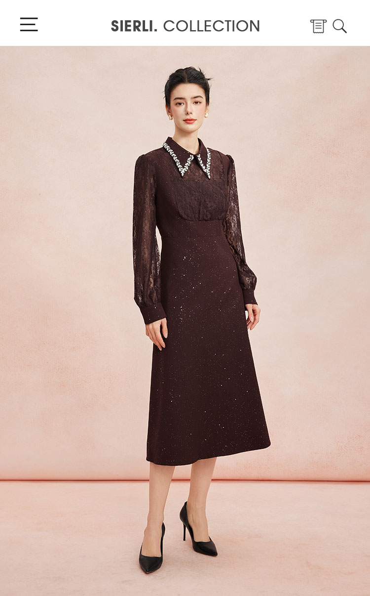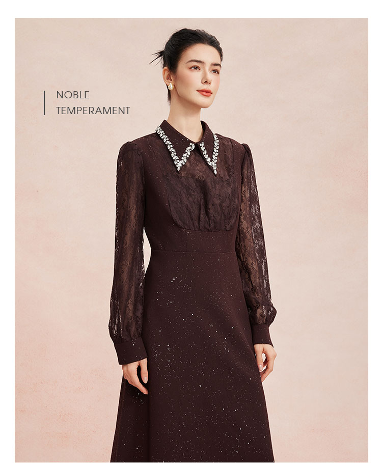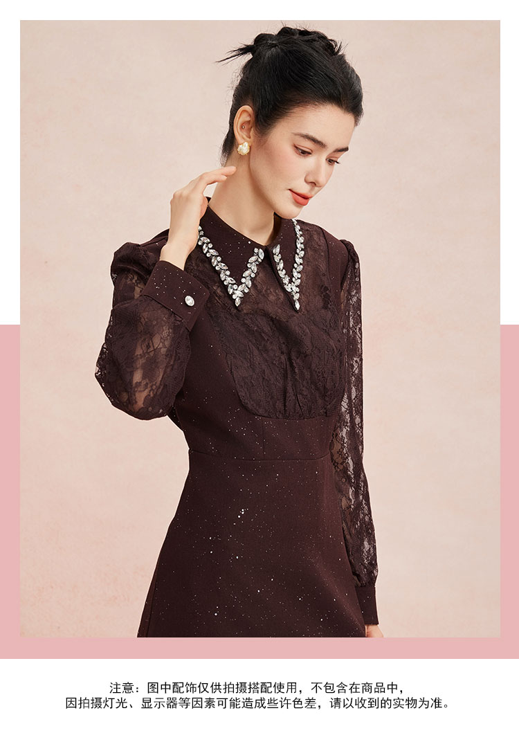 RE813斯尔丽26新款法式复古蕾丝拼接修身装饰性领子高级小礼服连衣裙