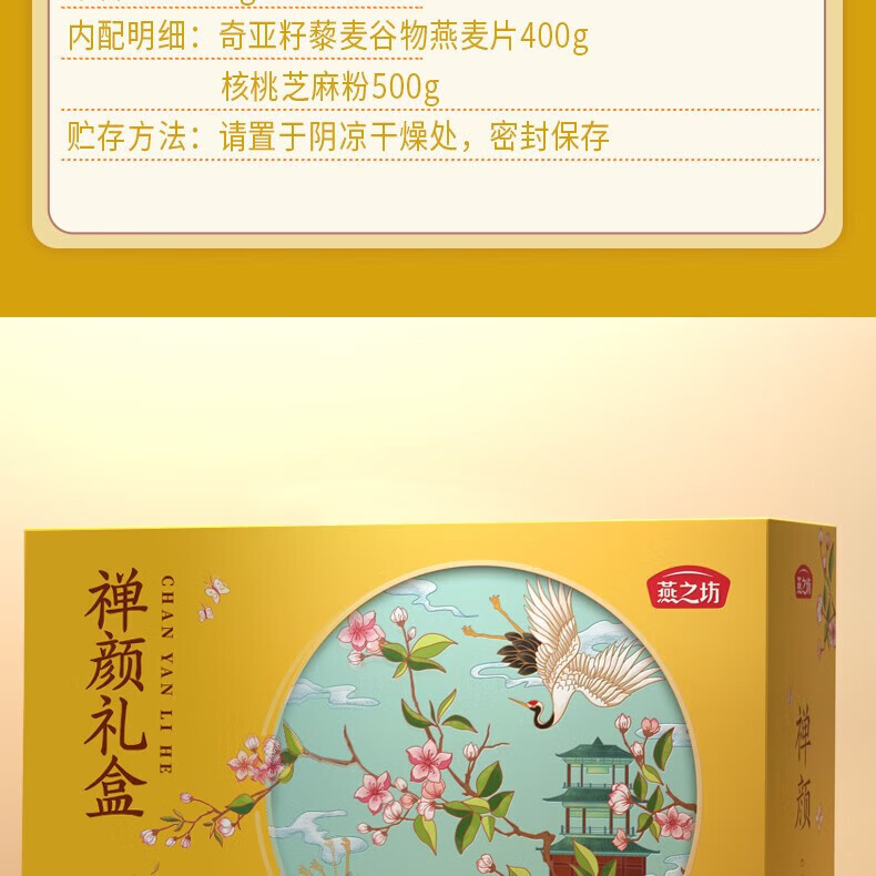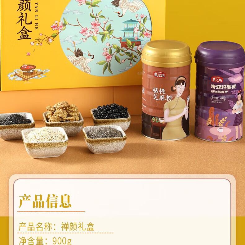 燕之坊 五谷燕麦 禅颜礼盒0.9kg 核桃芝麻粉奇亚籽麦片饱腹代餐送礼佳选