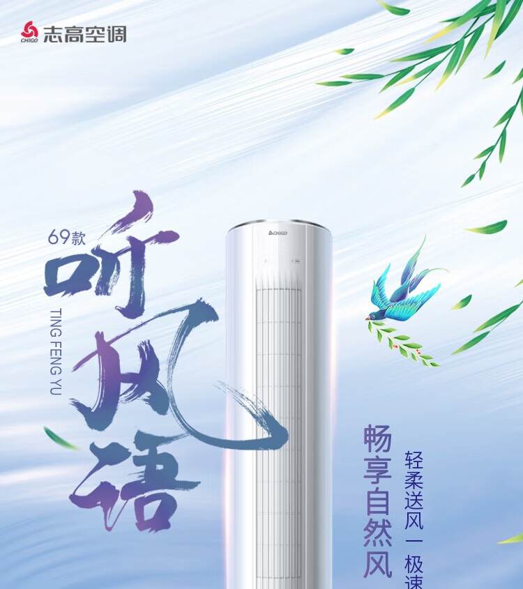 志高(CHIGO)KFR-51LW/KFR-72LW WCBP69+A3G 空调柜机新三级变频智能自清洁冷暖空调圆柱节能省电家用客厅